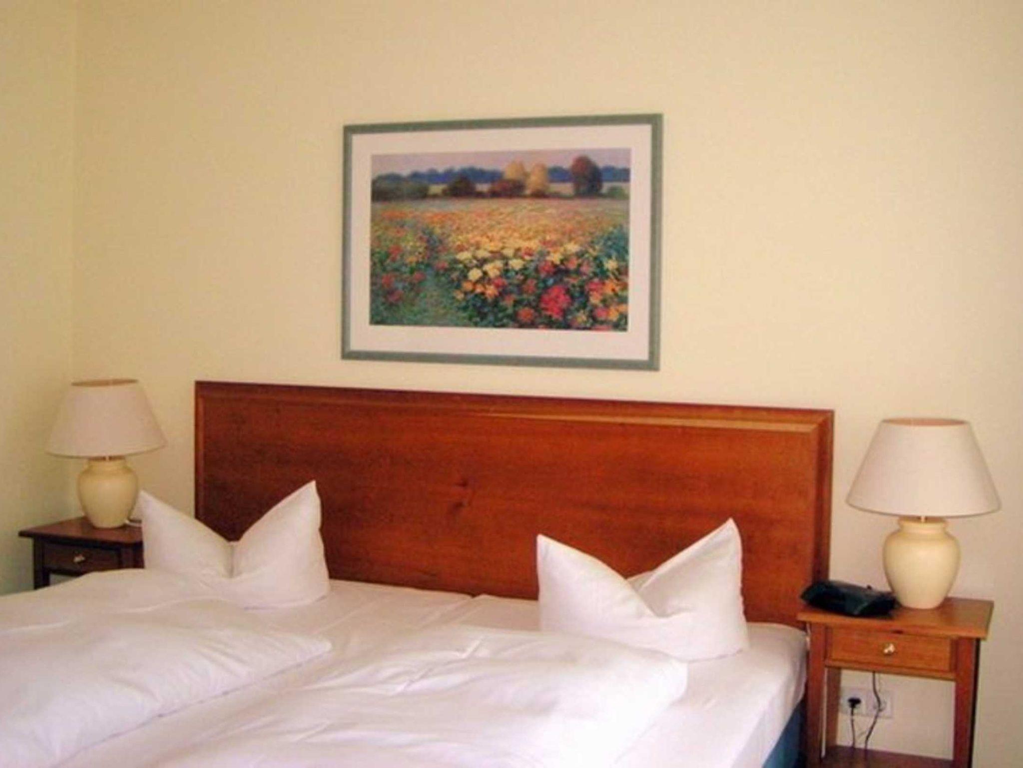 Freundliche, helle Zweizimmer Ferienwohnung (47qm) für 2 - 4 Personen mit Balkon, direkt an der Promenade in gepflegtem Park mit altem Baumbestand gelegen. Die Wohnung hat neben dem Wohn- und Essbereich eine offene Küche mit Mikrowelle, Herd und Backofen. Das Schlafzimmer verfügt über ein Doppelbett, die Doppelschlafcouch im Wohnbereich ist für die 3. und 4.. Person geeignet, weitere Ausstattung: Flachbild Sat-TV, kleine Bibliothek, Duschbad, Münzwaschmaschine und Trockner, Sauna kostenfrei im Haus, ein kostenloses WLAN-Netzwerk steht Ihnen zur Verfügung, Parkplatz am Haus inkl., Haustiere auf Anfrage