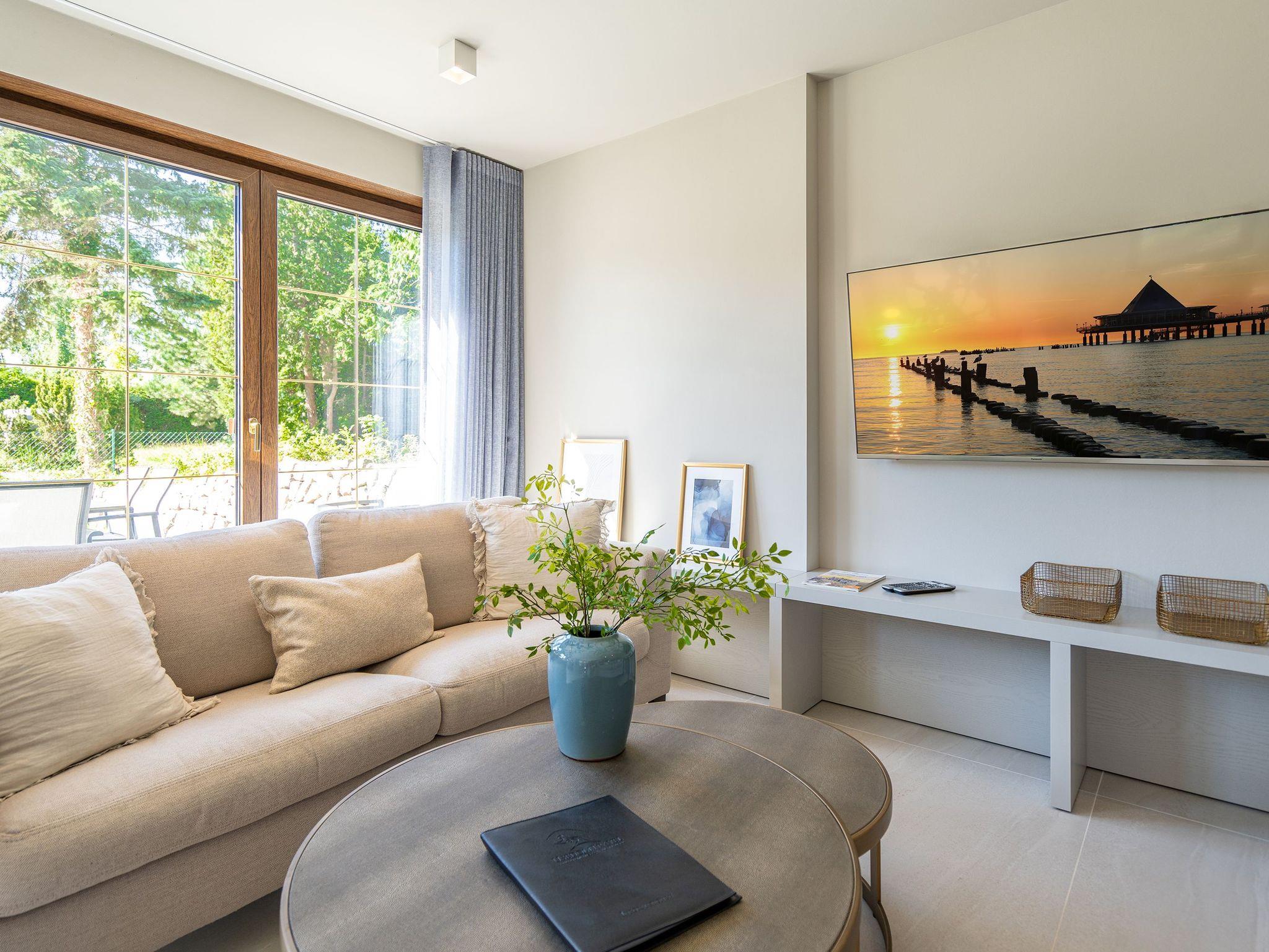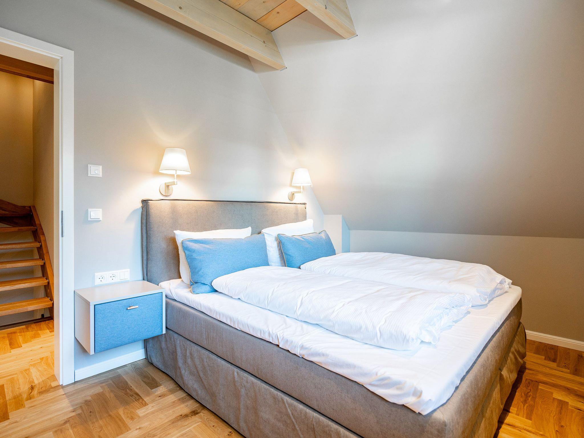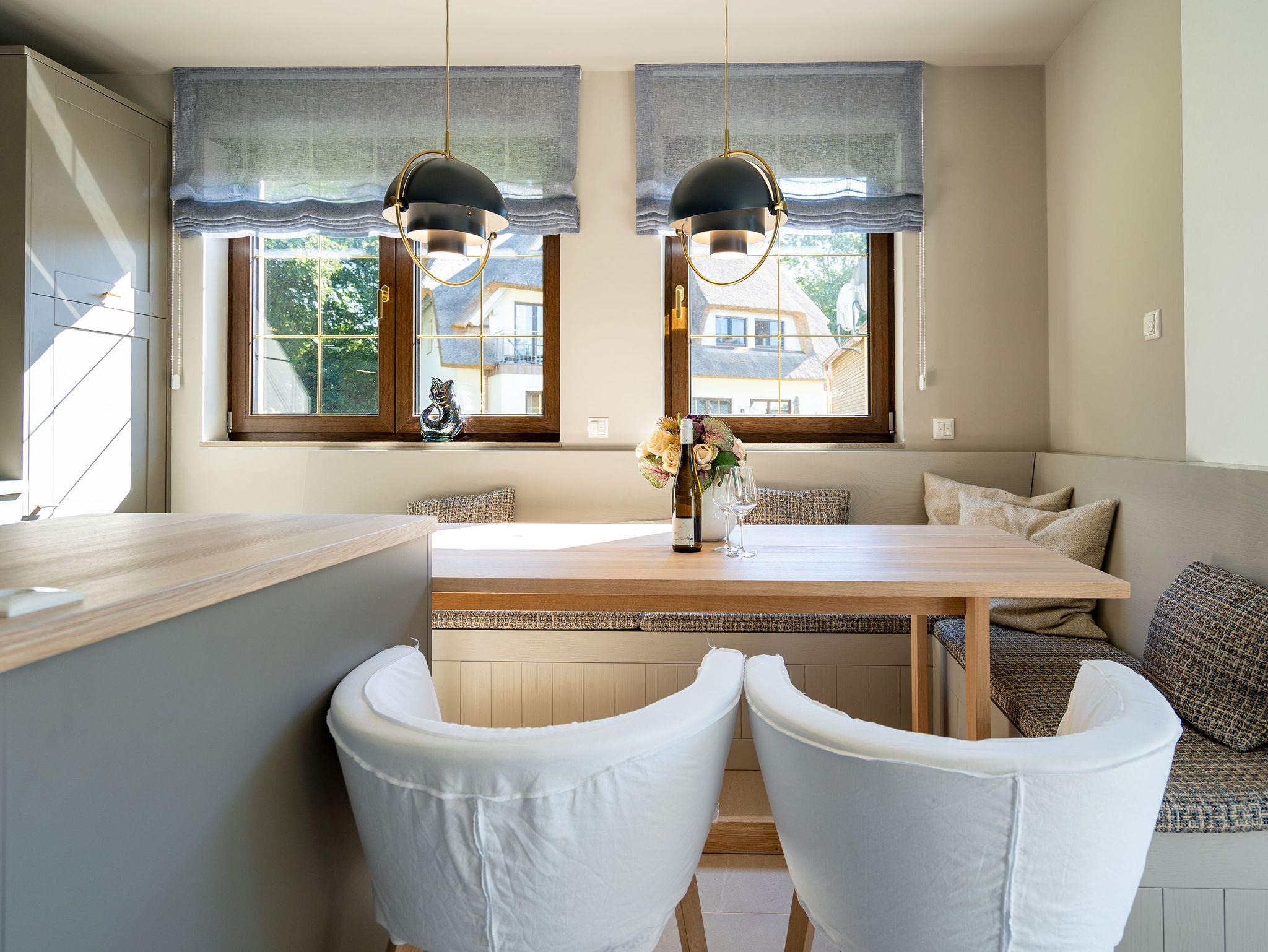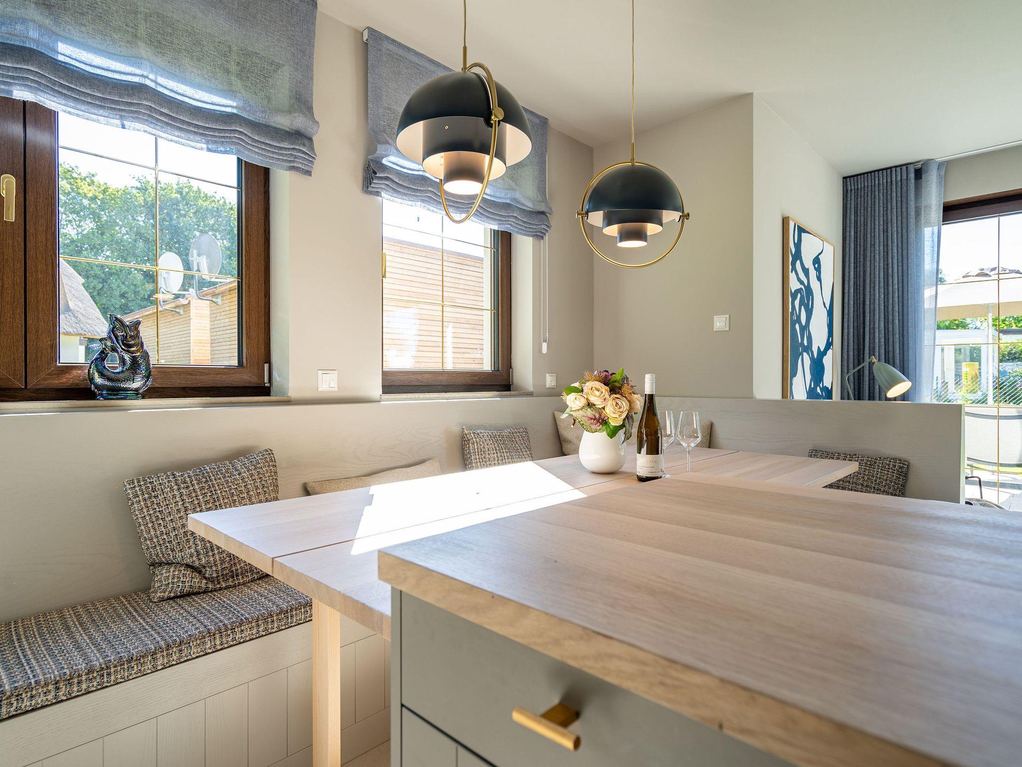Willkommen im Ferienhaus Reet [&] Meer N°2 im Seebad Heringsdorf. Diese großzügige Doppelhaushälfte erstreckt sich über drei Etagen und bietet Platz für bis zu 8 Personen. Im Erdgeschoss erwartet Sie eine offene Wohnküche mit einem gemütlichen Essplatz und einer einladenden Sitzgruppe. Hier können Sie gemeinsam Mahlzeiten zubereiten und genießen. Ein Flat-TV und ein Kaminofen sorgen für zusätzlichen Komfort und eine behagliche Atmosphäre. Von hier aus gelangen Sie auf die Terrasse, die mit Gartenmöbeln ausgestattet ist und Ihnen eine schöne Möglichkeit bietet, die frische Luft im Freien zu genießen. Das Erdgeschoss verfügt außerdem über ein Badezimmer mit Dusche, WC und einer Finnischen Sauna, in der Sie wunderbar entspannen können. Ein Waschtrockner steht Ihnen ebenfalls zur Verfügung. Im ersten Obergeschoss finden Sie drei Schlafzimmer, jeweils mit einem komfortablen Boxspringdoppelbett (1,80m x 2,00m), einem Einbaukleiderschrank und in zwei der drei Zimmer ein Flat-TV. Hier können Sie sich zurückziehen und erholsame Nächte verbringen. Zusätzlich gibt es ein Badezimmer mit Dusche, Waschtisch und WC. Zwei Schlafzimmer bieten Ihnen zudem Zugang zum Balkon mit Sonnenliegen, von dem aus Sie den Blick auf die Umgebung genießen können. Im Dachgeschoss befindet sich ein weiteres Schlafzimmer (aktuell noch ohne Verdunklungsmöglichkeit) mit einem Boxspringdoppelbett, Flat-TV und einer Kommode. Hier finden Sie auch ein kleines Badezimmer mit Waschtisch und WC. Das Dachgeschoss bietet somit zusätzlichen Platz für Ihre Gäste. Für Ihre Fahrzeuge steht ein Carport mit zwei Stellplätzen (mit E-Ladestation - kostenpflichtig) zur Verfügung, damit Sie bequem an- und abreisen können. Kostenfreies WLAN ist selbstverständlich ebenfalls vorhanden, sodass Sie mit Ihren Lieben in Verbindung bleiben können. Das Ferienhaus Reet [&] Meer N°2 in der Triftstraße 10f verspricht Ihnen einen unvergesslichen Aufenthalt in Heringsdorf. Genießen Sie die Annehmlichkeiten des Hauses, erkunden Sie die malerische Umgebung und erleben Sie erholsame Tage an der Ostsee.