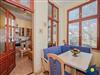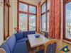 Der Essplatz befindet sich in der angrenzenden, hellen Loggia. An dem großen Tisch speisen Sie mit Blick in den Ort oder nutzen den Platz für gemeinsame Spieleabende.