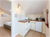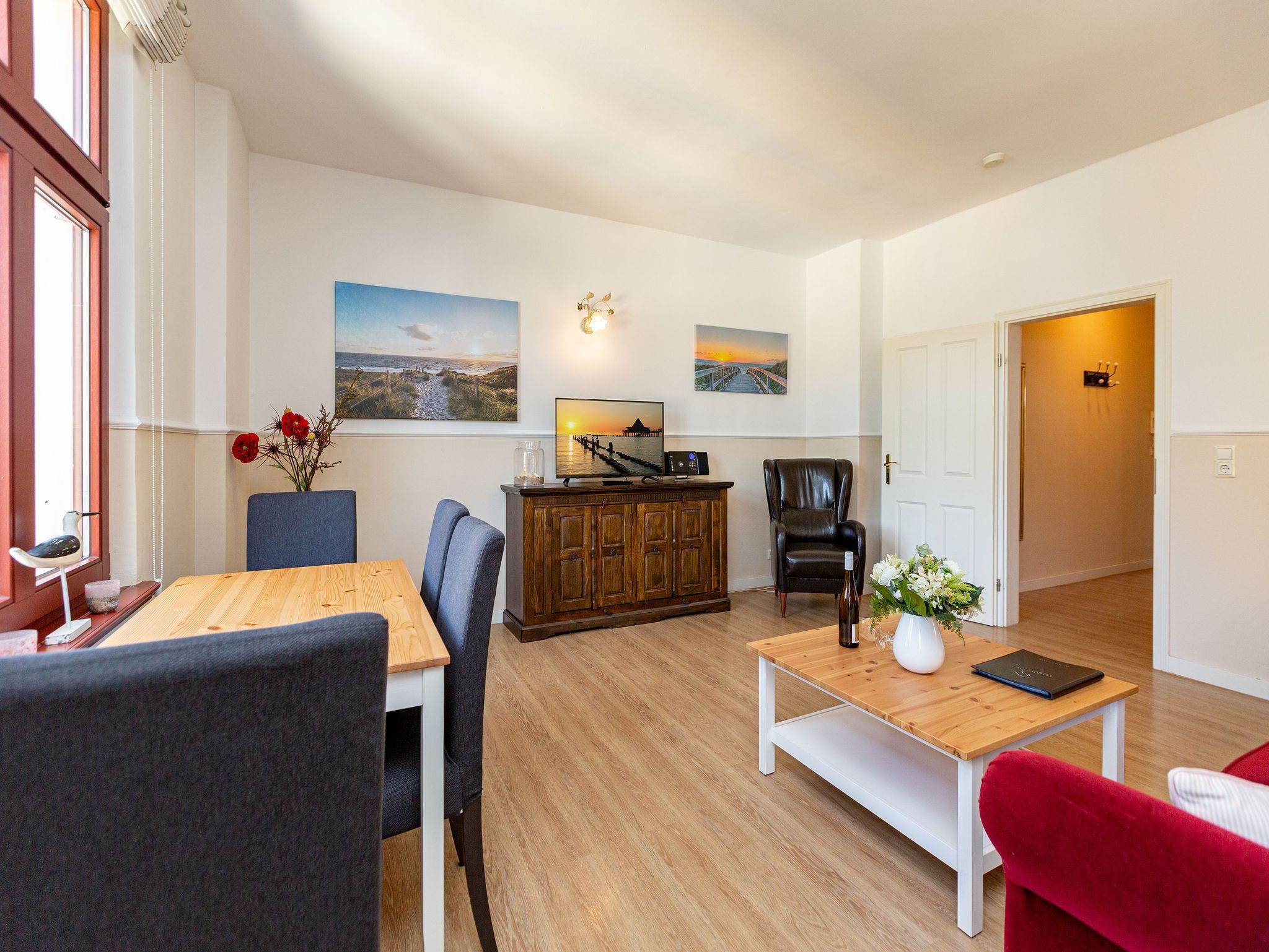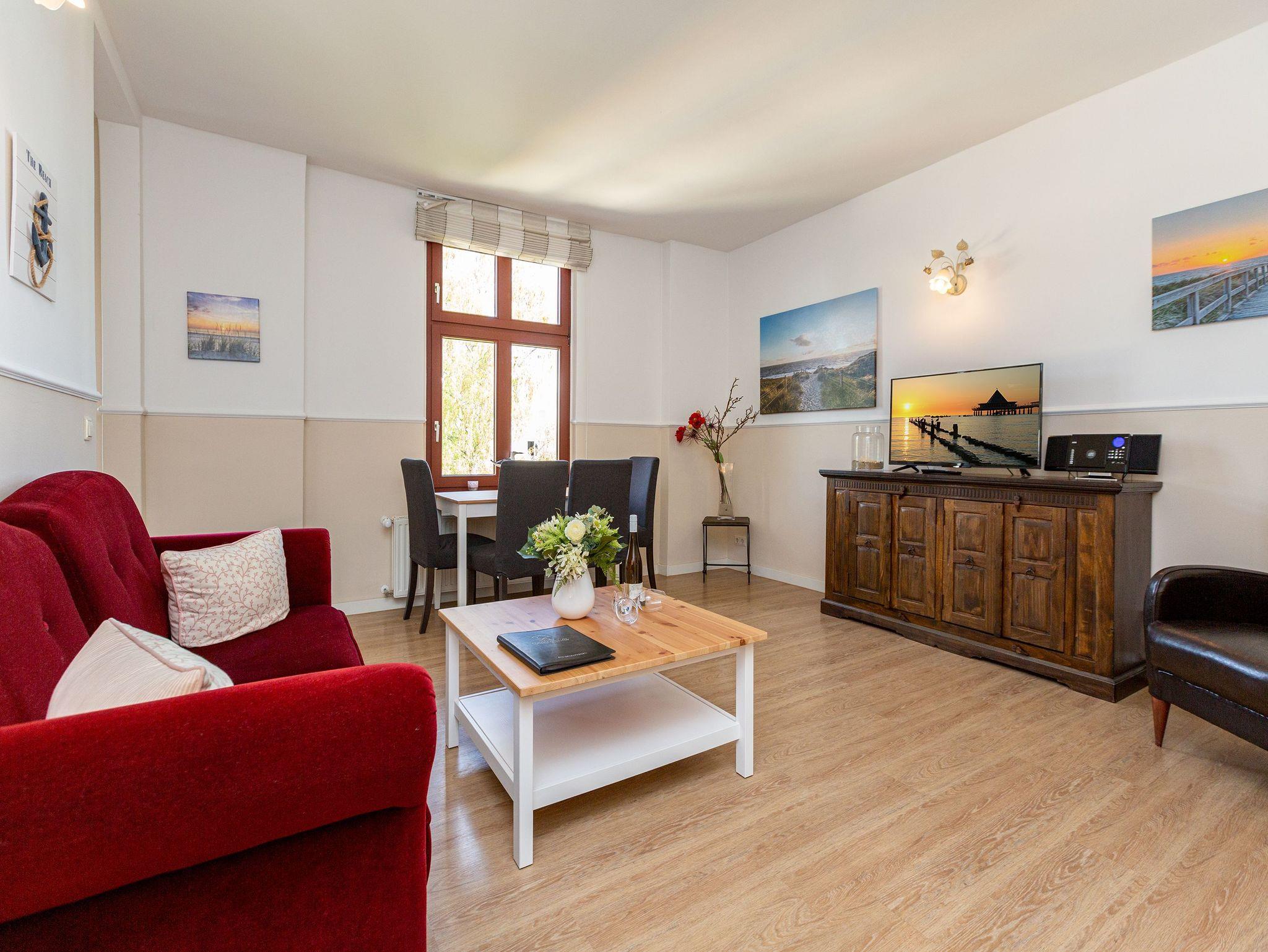Das Appartement 08 ist eine gemütliche 2-Raum-Ferienwohnung im Dachgeschoss, die sich perfekt für 2 Personen und ein Kleinkind bis 3 Jahre eignet. Über 40 qm erstreckt sich die Ferienwohnung und bietet im Wohnbereich eine bequeme Sitzgruppe, einen Fernseher sowie einen Essplatz mit angrenzender Küchenzeile. Verzichten Sie auch im Urlaub nicht auf erholsamen Schlaf und machen Sie es sich im komfortablen Doppelbett gemütlich. Im Duschbad finden Sie neben einen Waschtisch auch das WC. Für unsere kleinen Gäste stellen wir gerne ein Kinderreisebett zur Verfügung, das jedoch keine zusätzliche Matratze oder Bettzeug beinhaltet. Auf Wunsch können wir Ihnen auch einen Kinderhochstuhl gegen einen Aufpreis zur Verfügung stellen. Damit Sie sich bei Ihrer Ankunft sofort wohlfühlen können, sind die Betten bereits bezogen und Handtücher liegen als Erstausstattung bereit. Ein eigener PKW-Stellplatz direkt am Haus rundet dieses Appartement ab.