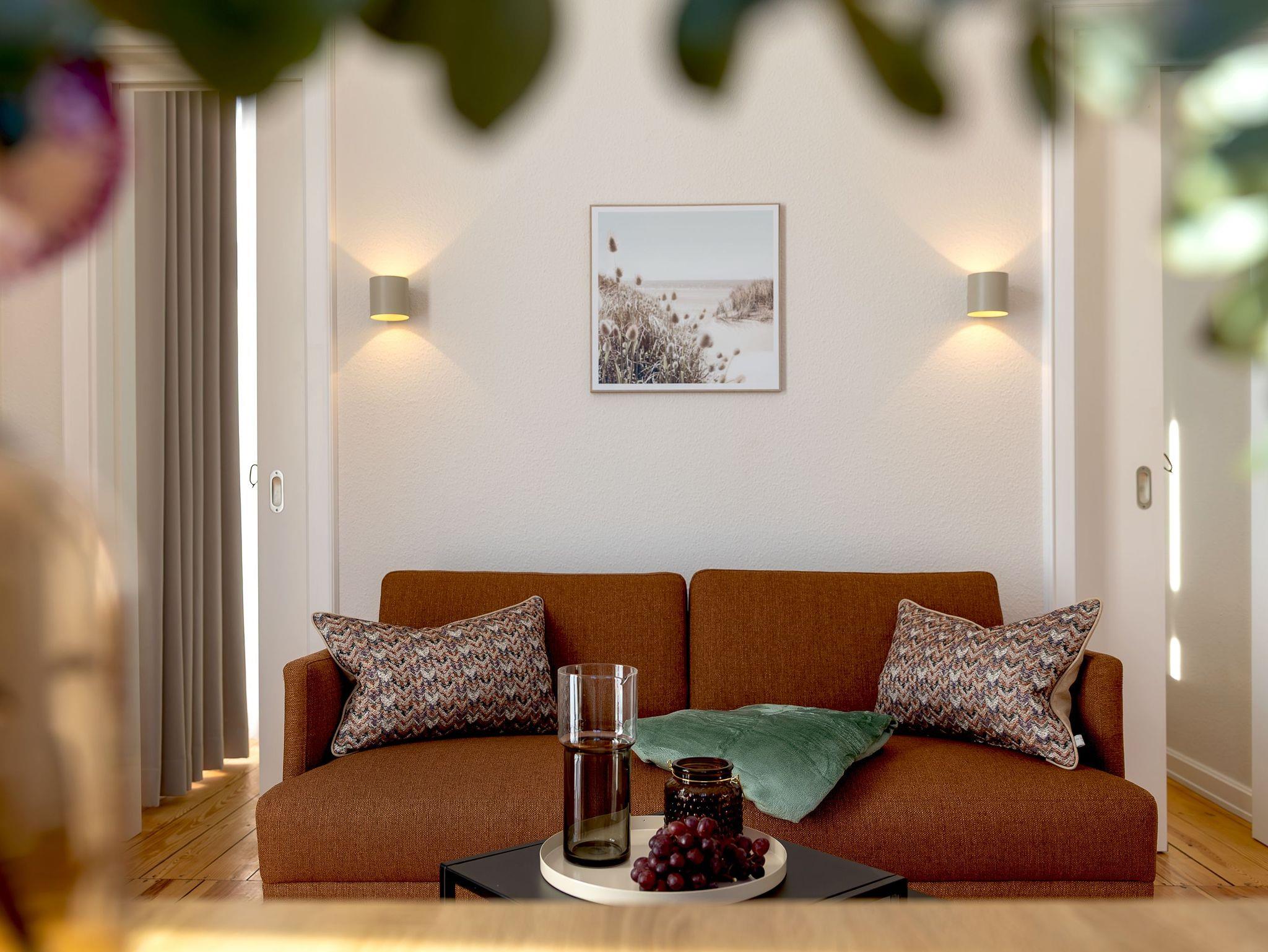 Nach einem gemeinsamen Dinner am Esstisch für zwei, können Sie den Abend auf dem neuen, gemütlichen Sofa ausklingen lassen, bevor Sie im separaten Schlafzimmer im komfortablen Boxspringbett (180 x 200 cm) eine erholsame Nacht verbringen. Ein Kleiderschrank bietet Ihnen genügend Stauraum für Ihre Garderobe.