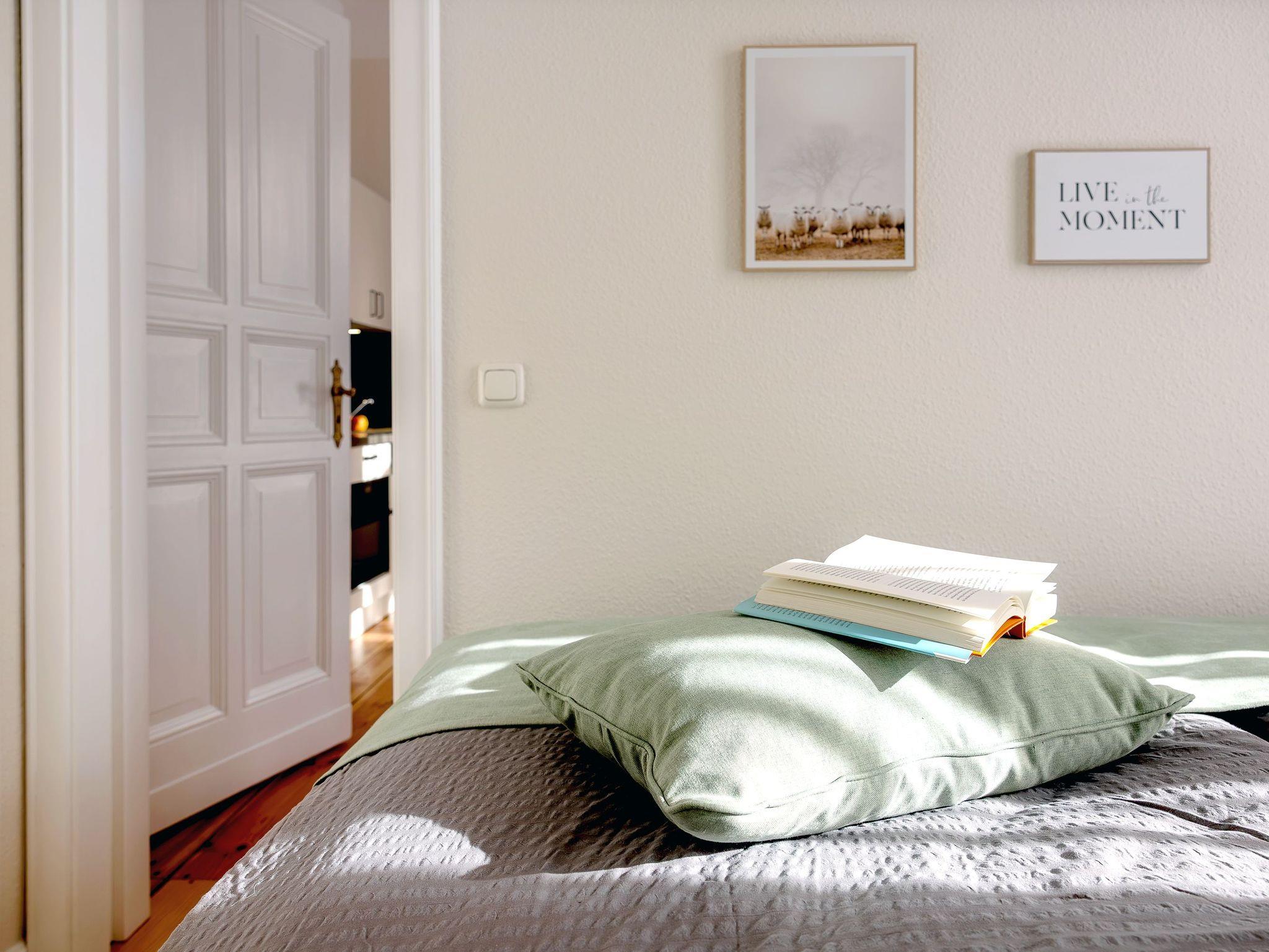 Unser Appartement 8 im 1. Obergeschoss wurde Winter 2024 - 25 renoviert und erstrahlt nun in neuem Glanz erstrahlen. Mit ca. 38 qm bietet das Appartement alles, was es für einen erholsamen Aufenthalt mit bis zu 2 Personen benötigt. Die neue, moderne Single-Küchenzeile ist vollausgestattet mit einem Cerankochfeld, Kühlschrank mit Gefrierfach, Backofen mit integrierter Mikrowelle, Spülmaschine sowie Kaffeemaschine, Wasserkocher und Toaster.