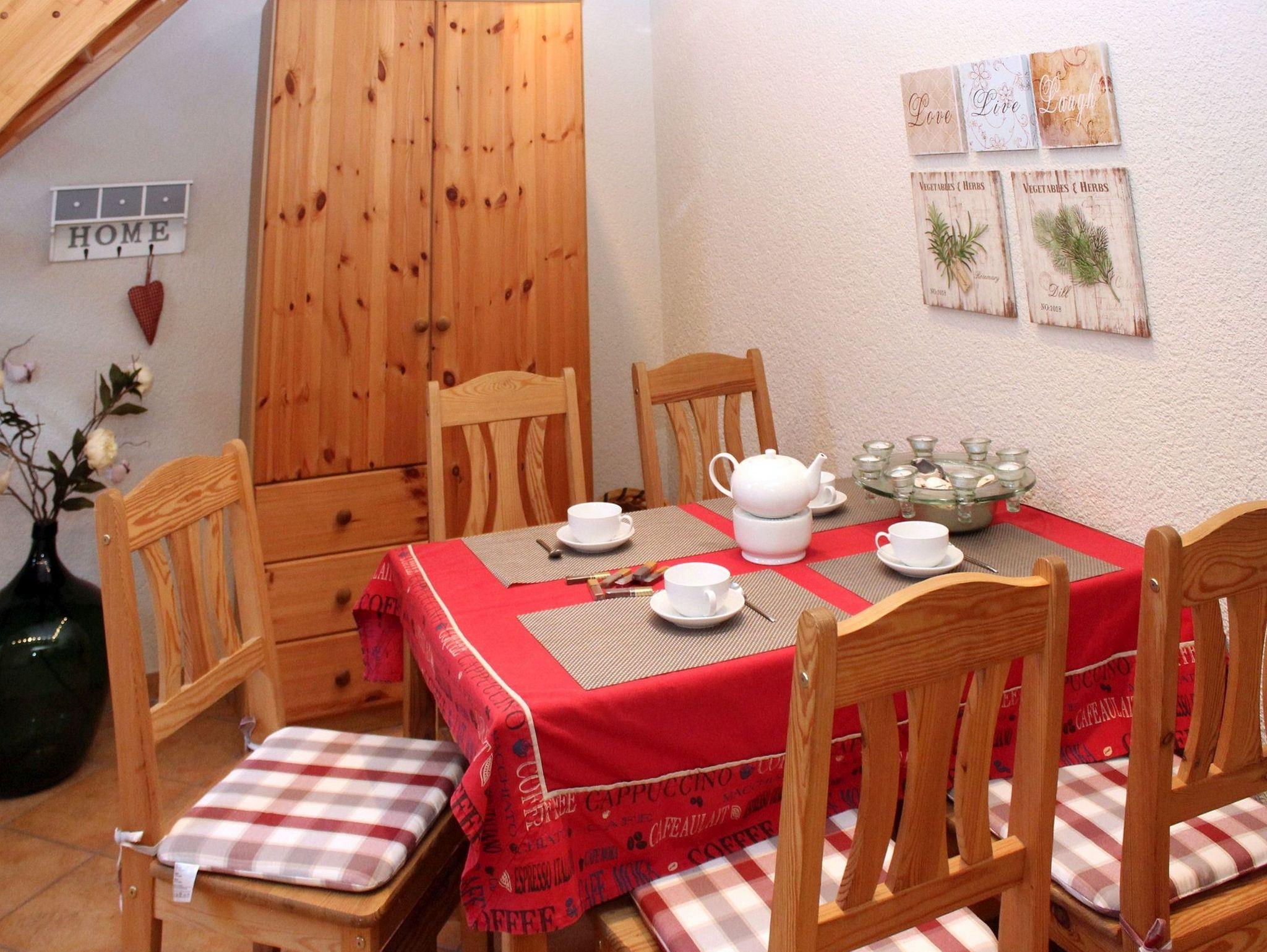 Im Erdgeschoss befinden sich die Küche mit Essbereich und dem Badezimmer, welches mit Dusche, WC und einem Haartrockner ausgestatte ist. Im oberen Bereich sind das Wohnzimmer mit den zwei angrenzden Schlafzimmern.