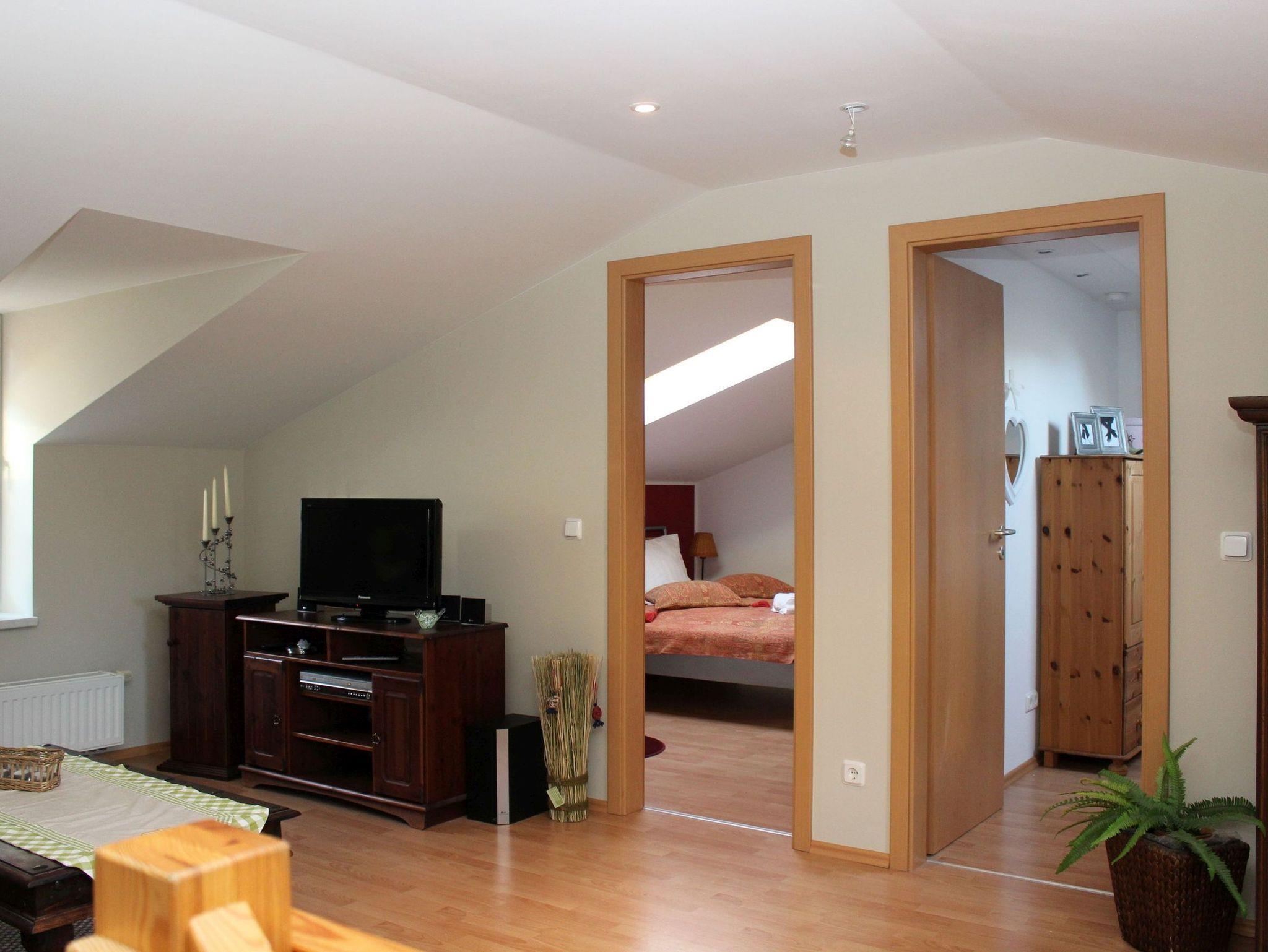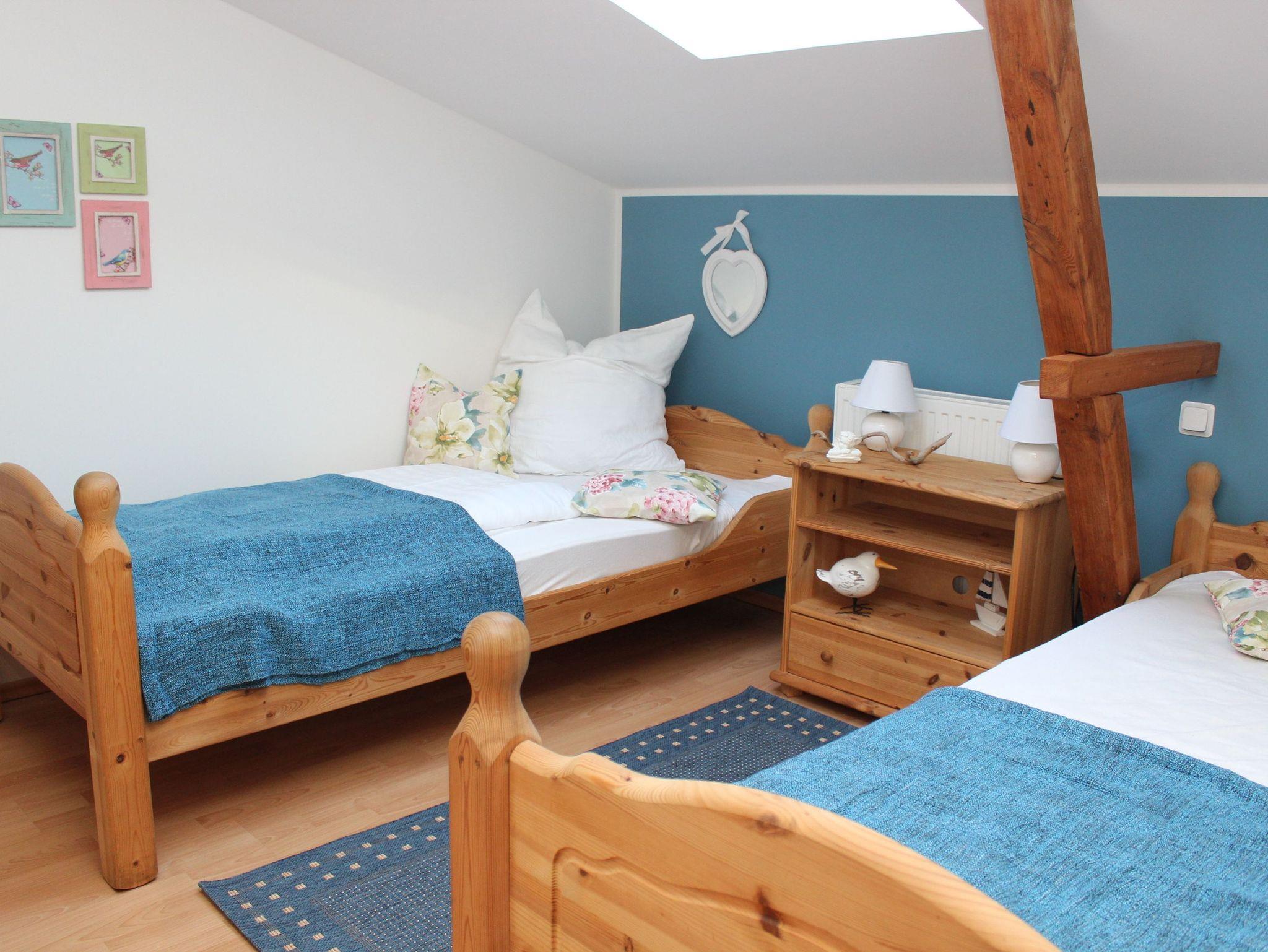 Die behaglich eingerichtete Ferienwohnung verfügt über 2 Schlafzimmer mit einem Doppelbett bzw. mit 2 Einzelbetten. Zusätzlich kann ein Klappbett, mit einer ordentlichen Matratze versehen, im Schlafzimmer eingeordnet werden, ohne dass es hier zu eng wird.
