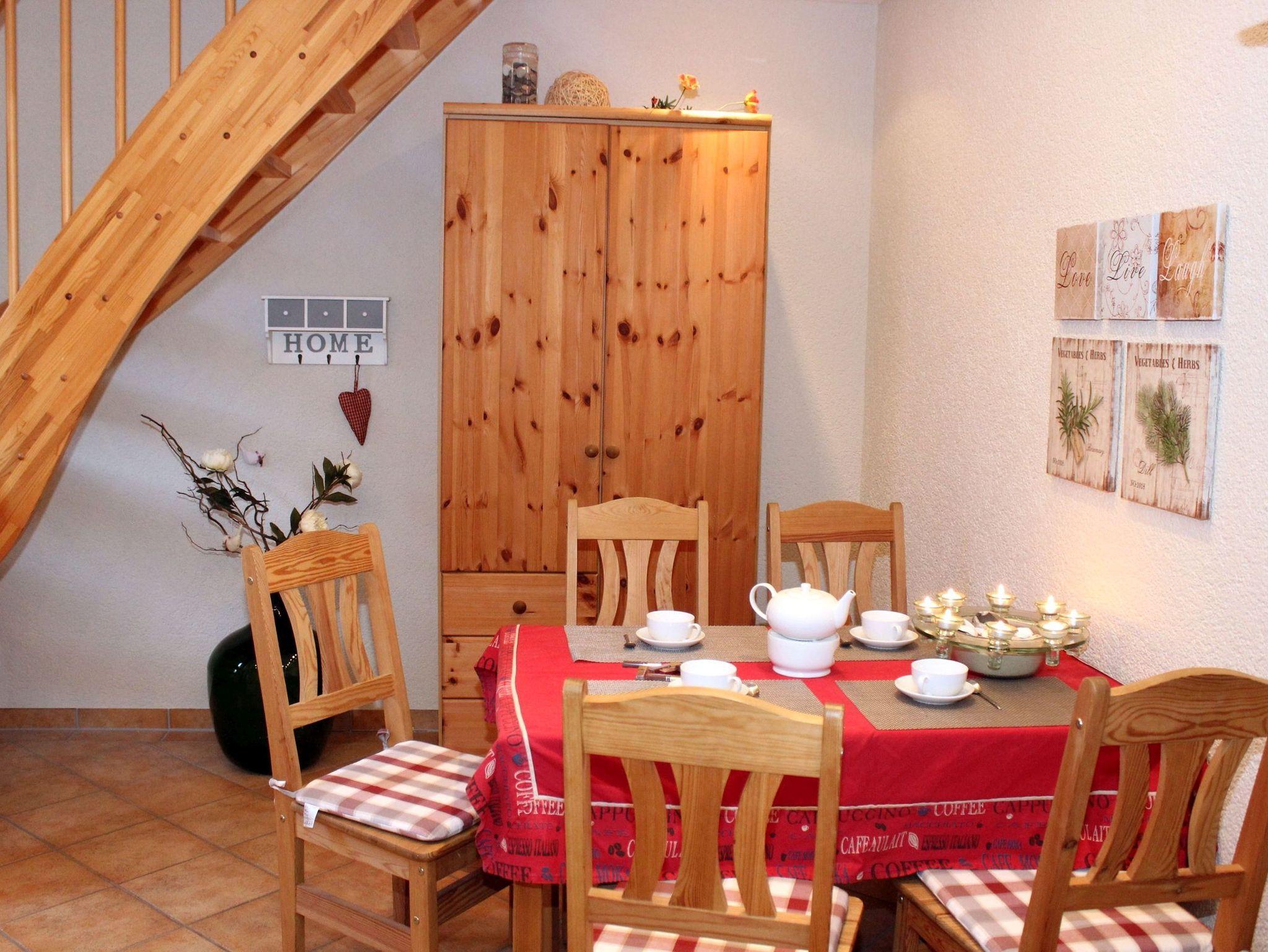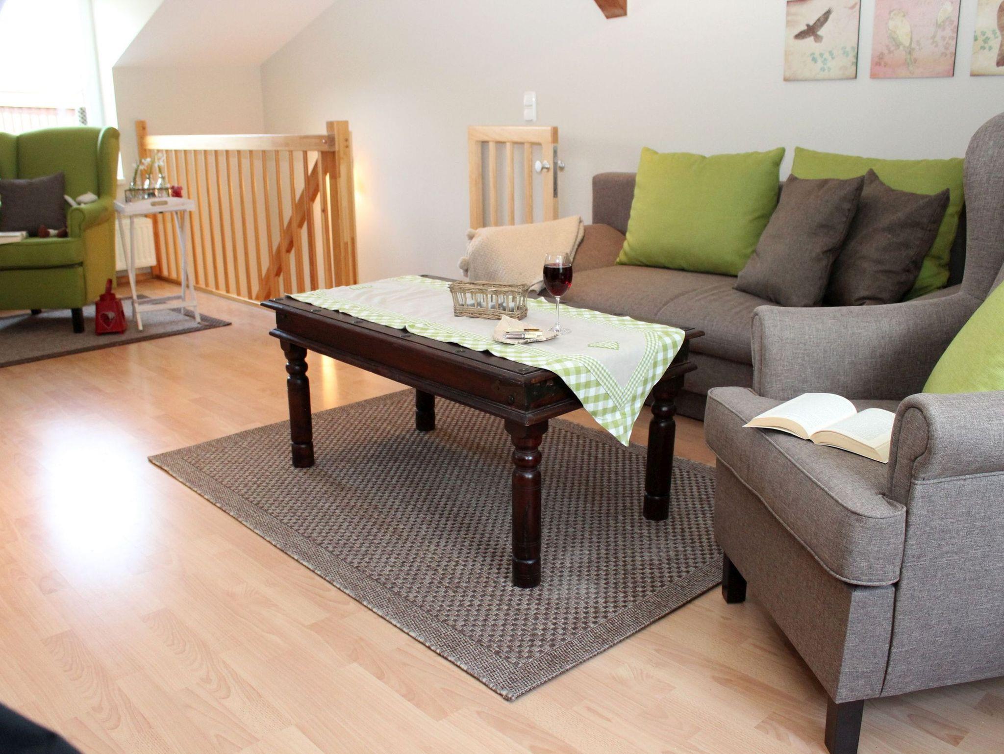 Die Ferienwohnung erschließt sich über 2 Etagen, welche durch eine offene Holtreppe miteinander verbunden sind und mit einer Kinderschutztür ausgestattet ist.