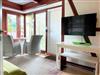 Das moderne und geschmackvoll eingerichtete 20-Quadratmeter-Fachwerkhäuschen befindet sich im Garten des Gastgebers und bietet einen gemütlichen Rückzugsort. Es verfügt über einen kombinierten Wohn- und Schlafraum mit einem bequemen Doppelbett, einem Flachbild-TV und Radio - perfekt für entspannte Stunden. Zur weiteren Ausstattung gehören eine kleine Küchenzeile mit zwei Herdplatten, Kühlschrank, Spüle, Kaffeemaschine und vieles mehr, sodass Sie sich wie zuhause fühlen können. Das Badezimmer ist mit Dusche und WC ausgestattet. Große Terrassentüren und Fenster lassen viel Licht in den Raum und bieten einen schönen Blick ins Grüne. An kühleren Tagen sorgt die Elektroheizung für angenehme Wärme. Draußen lädt eine Terrasse mit Sitzmöbeln dazu ein, den Tag entspannt ausklingen zu lassen - sei es bei einem morgendlichen Kaffee oder einem Glas Wein am Abend.