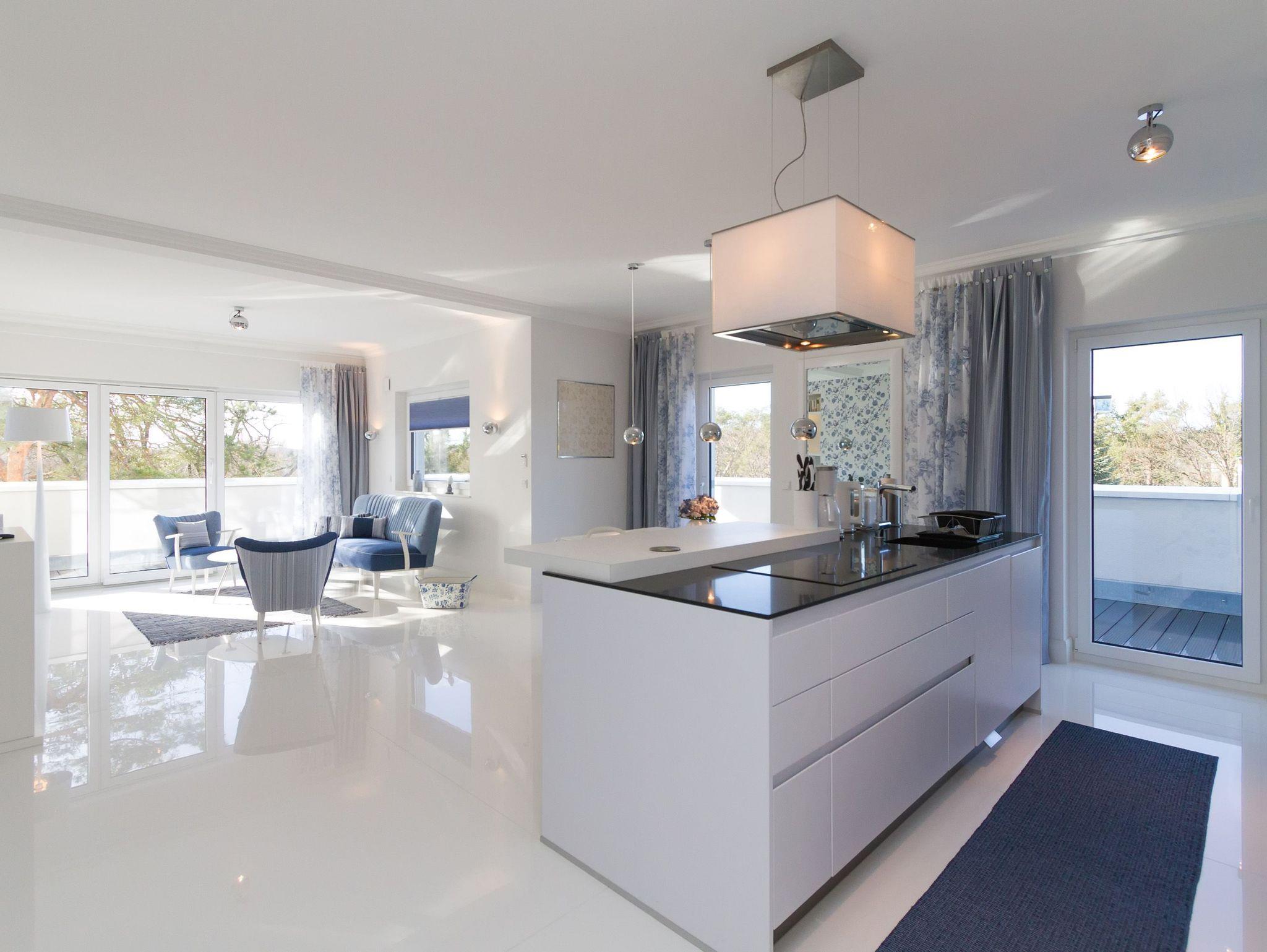 Ihr Appartement 19 im Dachgeschoss (2 Räume) der Dünenresidenz ist wirklich besonders! Die fantastische Lage im Haus beeindruckt hier ebenso, wie die Ausstattung. Denn es wurde sehr viel Liebe zum Detail investiert, um Ihnen ganz besonders schöne Tage auf Ihrer Lieblingsinsel zu bereiten. Und auch an viel Platz mangelt es im opulenten 2-Raum-Appartement nicht - 117 qm Wohlfühlatmosphäre (inkl. Dachterrasse) für 2 Personen, ein wahrer Urlaubstraum! Eintreten und Wohlfühlen - schon beim Tür öffnen, offeriert sich ein hell gestalteter Eingangsbereich. Die sich anschließende, offene Küche fügt sich stimmig in den großzügigen Wohn- und Essbereich ein, viele Fenster sorgen für eine lichtdurchflutete Wohlfühlatmosphäre. Komplett ausgestattet und mit vielen Extras (u.a. mit Induktionsherd [&] Dampfgarer) versehen, bietet sie Ihnen auch im Urlaub alle Annehmlichkeiten. Der Essplatz wird sicher schnell zu einem Ihrer Lieblingsplätze, hier lässt es sich wunderbar dinieren. Eine stylische Sitzgruppe lädt zum Relaxen ein. Feinstes Entertainment (Flat-TV, Blue-Ray-Player) versteht sich hier ebenso von selbst, wie einen per Fernbedienung jederzeit an- und ausschaltbarer Elektro-Kamin. Perfekte Rahmenbedingungen also. Ihr großzügiges Schlafzimmer mit komfortablen Doppelboxspringbett (1,60 m x 2,00 m) ist ein Traum in meerblau. Es bietet Ihnen einen schönen Ausblick auf Dünen und ein Wellnessbad En-Suite, ausgestattet mit Waschtisch, Dusche, WC, Bidet, sowie einer Dampfsauna mit Tageslicht (1,00 Euro pro Stunde)! Open Air verwöhnet Sie eine umlaufende Sonnenterrasse, von der man aus allen Zimmern Zugang hat. Für Ihren Komfort sind die Betten bei der Anreise bezogen und Handtücher liegen bereit. Ein PKW-Stellplatz in eigener Garage (Einfahrthöhe ca. 1,93 m) und die Wlan Nutzung ist im Preis einbegriffen.