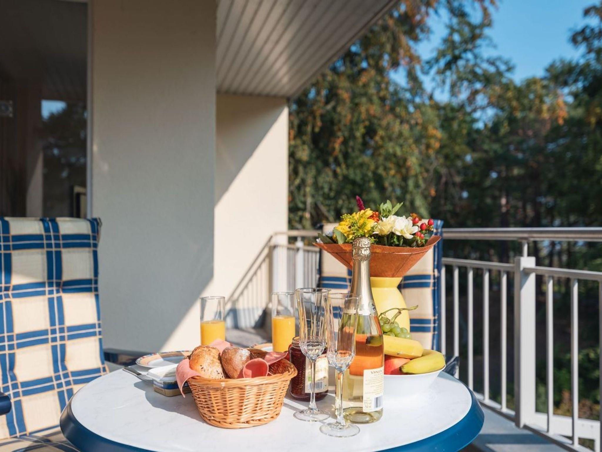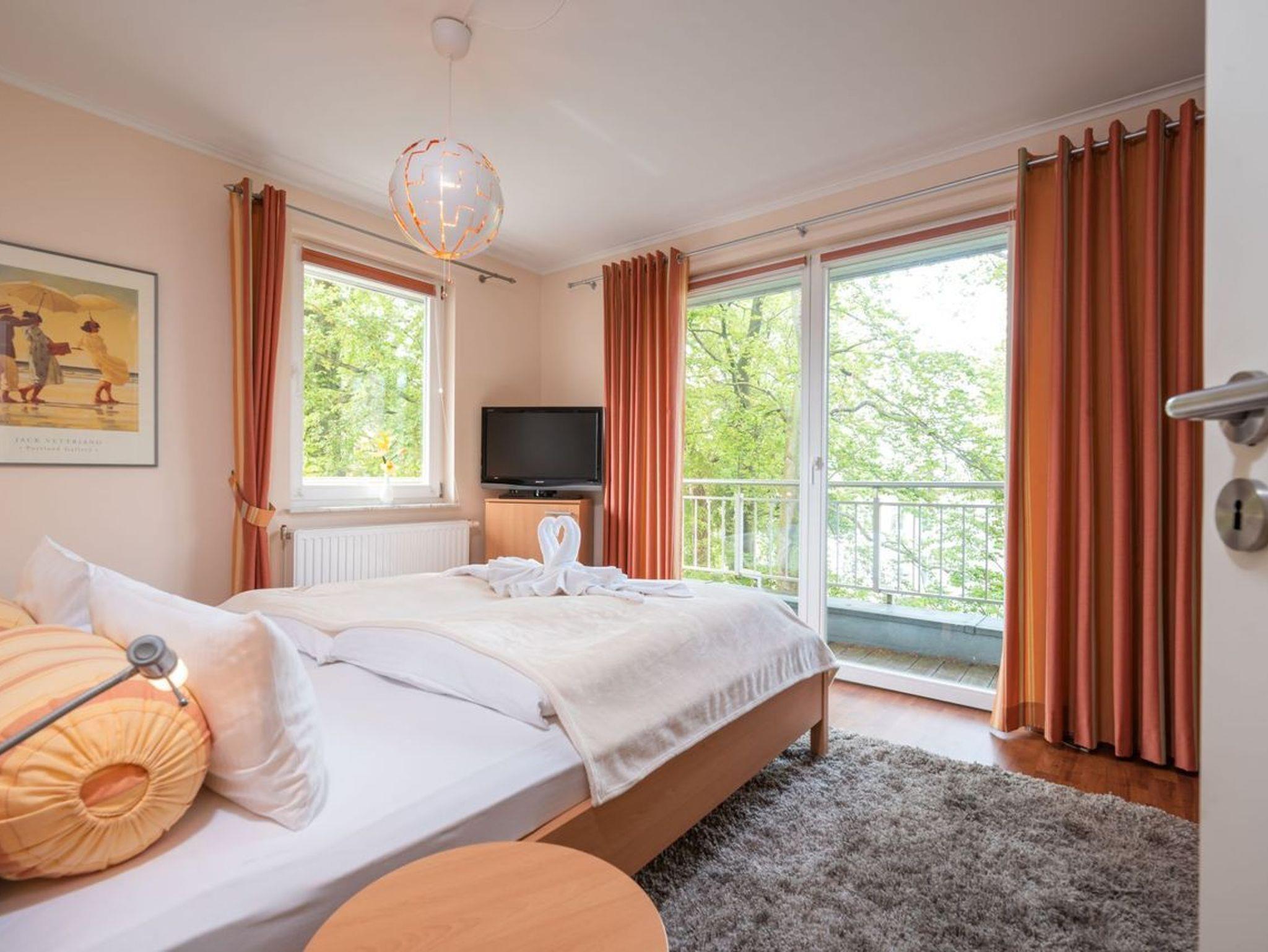 In dem geschmackvoll eingerichteten hellen Wohnbereich mit bequemer Couch und FlatTV erhalten Sie einen schönen Blick auf das Meer bzw. die Promenade von Heringsdorf.