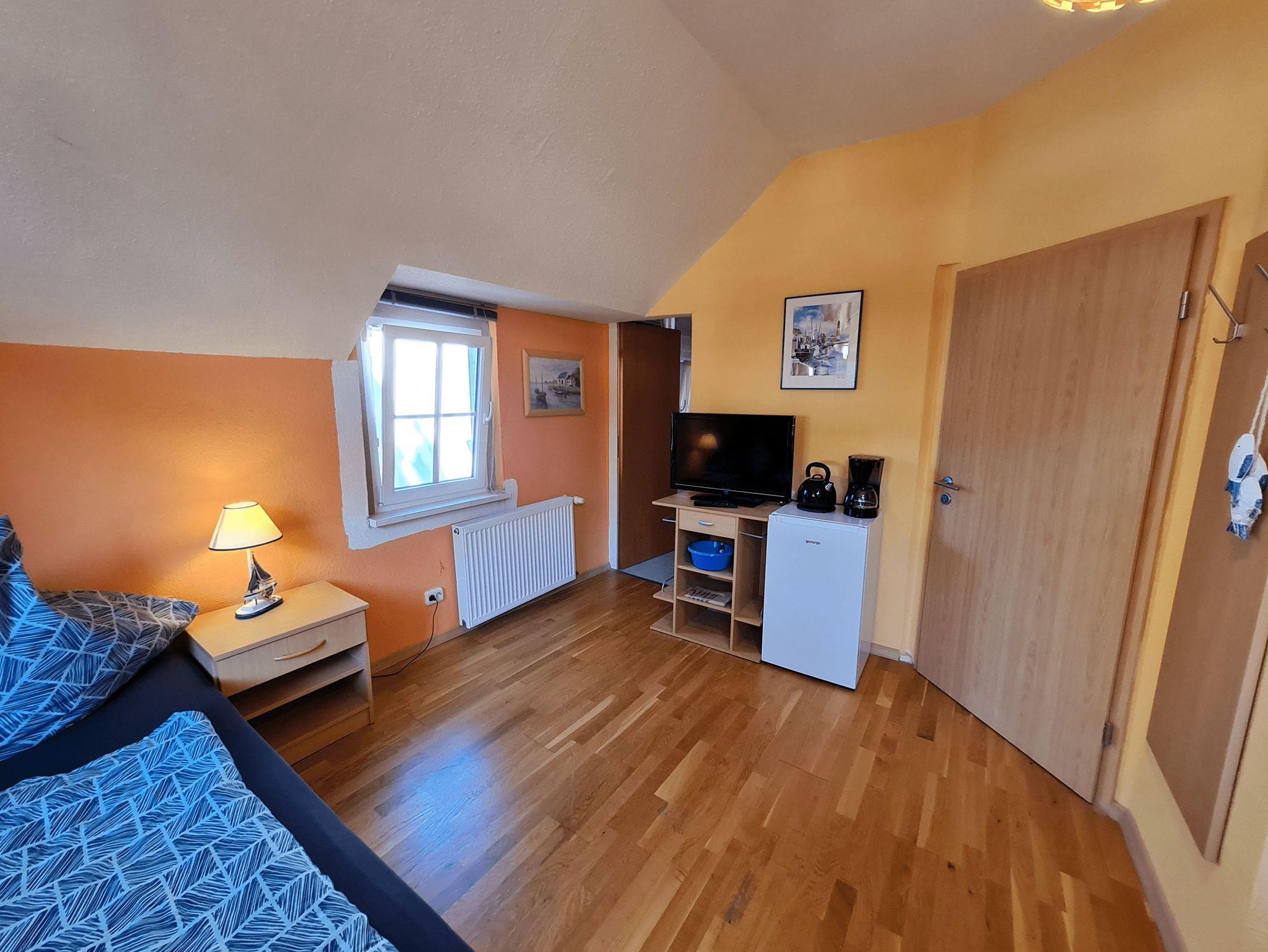 Das kleine, aber feine Appartement 2 bietet Platz für 1 Person mit Kleinkind bis 3 Jahre und befindet sich im Obergeschoß des Hauses. Ähnlich wie das Appartement 1 besteht die Wohnung aus einem kombinierten Wohn- und Schlafraum mit einem Einzelbett, sowie einem kleinen Badezimmer mit Dusche und WC. Eine Küche haben Sie in dem Appartement nicht, jedoch steht Ihnen ein Wasserkocher, eine Kaffeemaschine und ein Mini-Kühlschrank zur Verfügung.