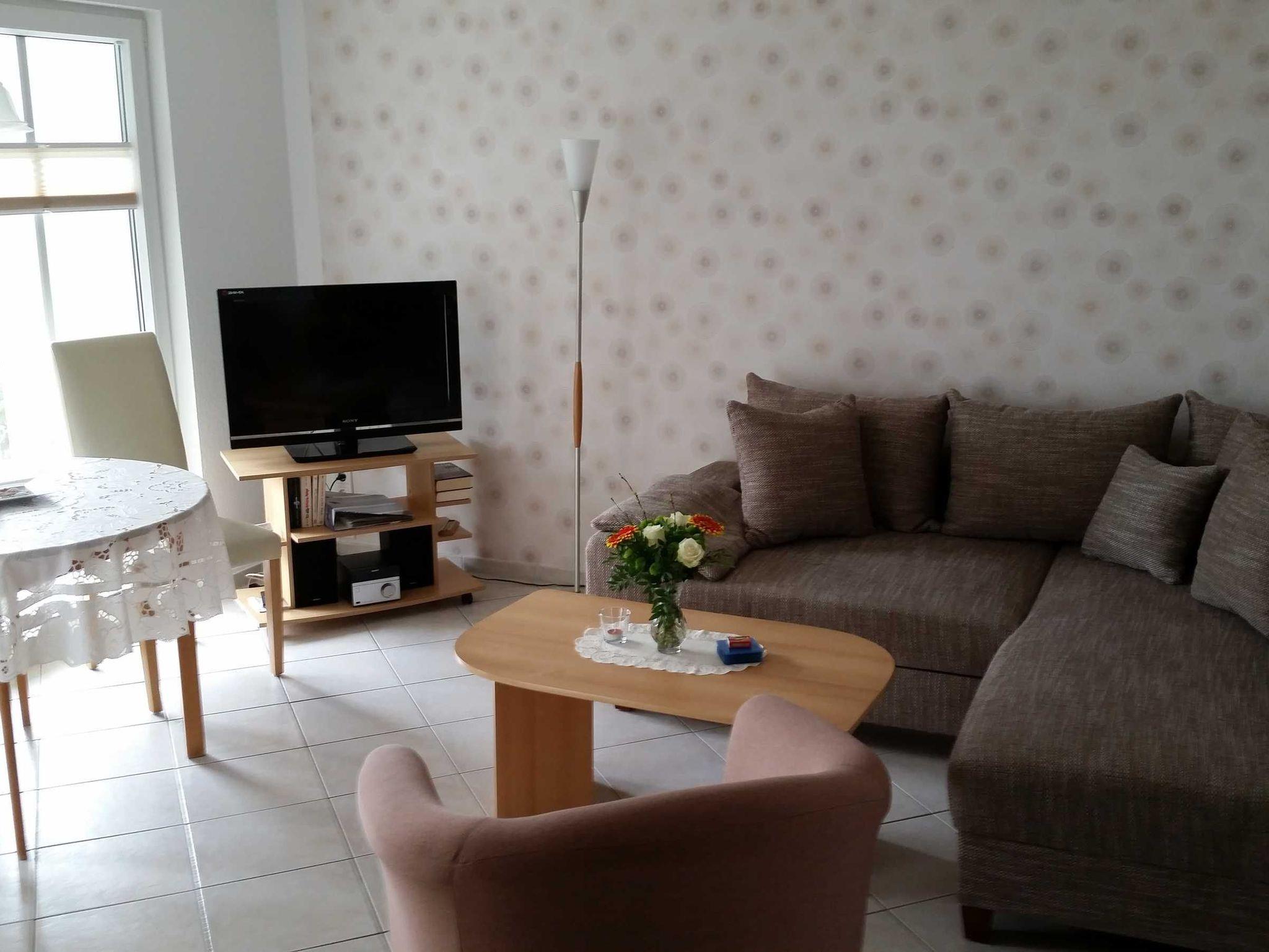 Die moderne, gepflegte NICHTRAUCHER-Ferienwohnung (45 qm) im Paterre mit Terrasse/Balkon, verfügt über einen Wohnraum (Sat-TV, Radio, Schlafcouch sowie einer offenen Küchenzeile mit Kaffeemaschine, Toaster, Eierkocher, Cerankochfeld,Backofen Kühlschrank mit Gefrierfach, Geschirrspüler, etc.), einen Schlafraum (Doppelbett und Kleiderschrank) sowie ein Bad mit Fenster, Dusche /WC. Erstausstattung Bettwäsche inklusive. Handtücher sind bitte mitzubringen oder zu mieten für 8,-€ p. Pers (Erstausstattung). PKW ? Stellplatz kostenlos am Haus vorhanden.