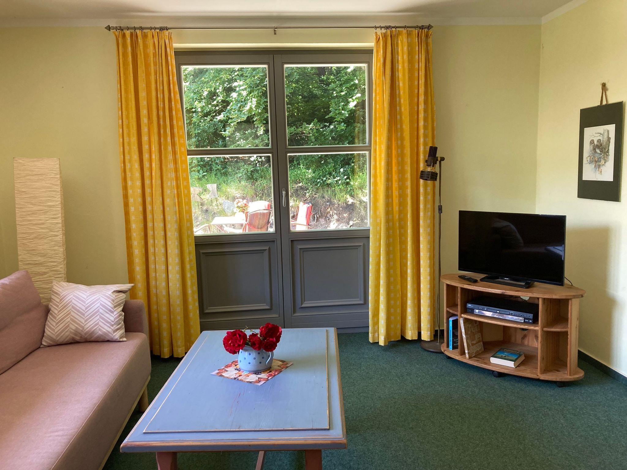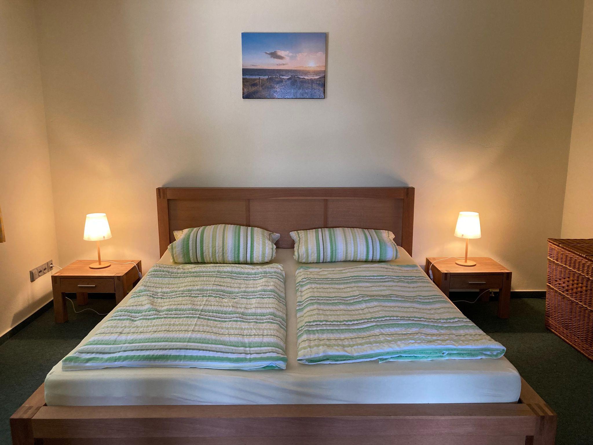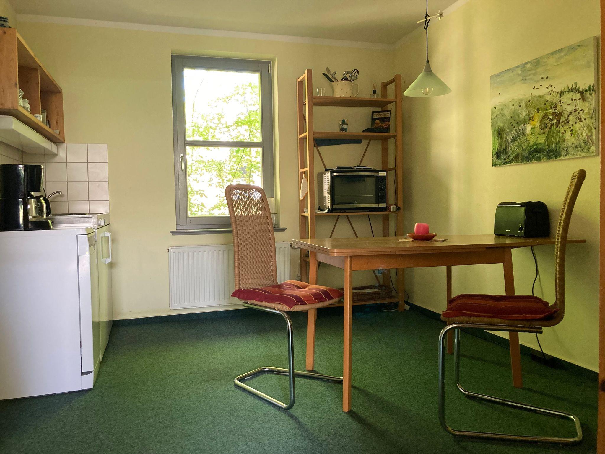 Unser solides, massive Ferienhaus mit 5 Räumen-davon 2 Zi.zum Schlafen, jeweils 16m² groß, (1xSz. für 2Pers.+1xkomb.Wz.mit ausklappbarer Schlafcouch 1,60x2,00m auch für 2 Pers.) wahlweise mit 1Metalllklappliege für 1 Pers.(0,80x1,90m) erweiterbar, wurde massiv errichtet im Jahr 2000 mit guten Wohneigenschaften,wie Behaglichkeit in kalten und warmen Zeiten des Jahres:) Als 2. Sz. ist der Vollständigkeit und der Notwendigkeit auch das Wz. mit der Schlafcouch angegeben- ansonsten hätten Sie uns nicht so leicht gefunden im Buchungssystem, da die Kombination von Wz. mit Schlafcouch nicht anzeigbar ist und somit hätte dann unser Ferienhaus nur 1Sz (auf dem 1. entscheidenden Blick)., was für Familien oft nicht so vorteilhaft und gewünscht wäre ! Auch Senioren schlafen ja auch oft getrennt...und diesem Umstand wird hiermit dann auch entsprochen. Keiner stört den anderen, da beide Räume einen separaten Zugang zum Bad haben. Das Sz. über die Kü. und vom kombinierten Wz./Sz. gehen Sie dann direkt auf den Flur ins Bad:) Ich bitte dies bei Ihrer Buchung zu beachten- es hat sich alles über die Jahre gut bewährt:):) Unser Ferienhaus fügt sich gut in die Naturlandschaft des Grundstückes ein. Das Ferienhaus besitzt 56m² reine Wohnfläche mit 5Räumen (Flur 6,0m², Wz.16,0,Sz.16,0, Kü.12,0,Bad 6,0) und bietet 5 Personen Platz..Vom Wz gehen Sie direkt auf die 16m² große Terrasse, welche dann vor dem schönen Mischwald liegt . Ihr Parkplatz ist unmittelbar auf dem Grundstück. Es ist alles sehr privat und ruhig, eben ein Urlaubsplatz zum Ausruhen und Entspannen. Unser Grundstück zeichnet sich durch das Naturverbundene aus- der unmittelbar angrenzende Mischwald vor der Terrasse kann offen begangen werden. Sie sind die einzigen Urlauber auf unserem Grundstück! Nur die angrenzende Kleintierrpraxis in der historischen Delbrückstr. der Vermieterin ist ebenfalls hier auf unserem Grundstück angesiedelt.Das 2.kleine FH, welches durch das Fenster im Wz. etwas zu erkennen ist, ist noch nicht fertiggestellt.Also: 'Kevin allein zu Haus' :)