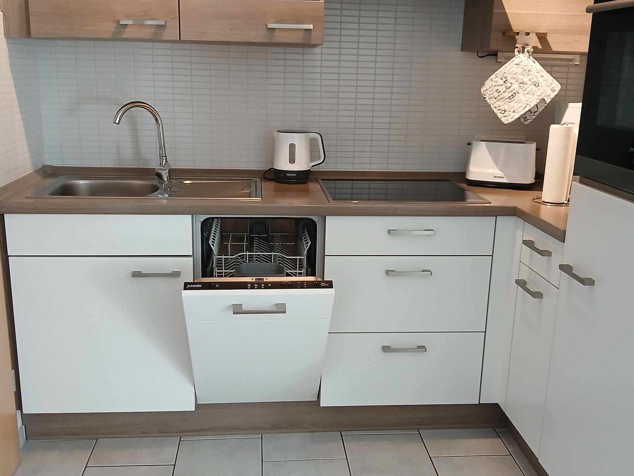 Die moderne, gepflegte NICHTRAUCHER-Ferienwohnung (45 qm) im 1. Obergeschoss mit Balkon verfügt über einen Wohnraum mit offener Küche (Backofen, Cerankochfeld, Geschirrspüler, Mikrowelle,Kaffeemaschine, Toaster, Kühlschrank mit Gefrierfach, etc.), einen Schlafraum (Doppelbett, Kommode und Kleiderschrank) sowie ein Bad mit Fenster und Dusche /WC. Erstausstattung Bettwäsche inklusive. Handtücher sind bitte mitzubringen oder mietbar für 8,-€ p.Person (Erstausstattung). PKW ? Stellplatz kostenlos