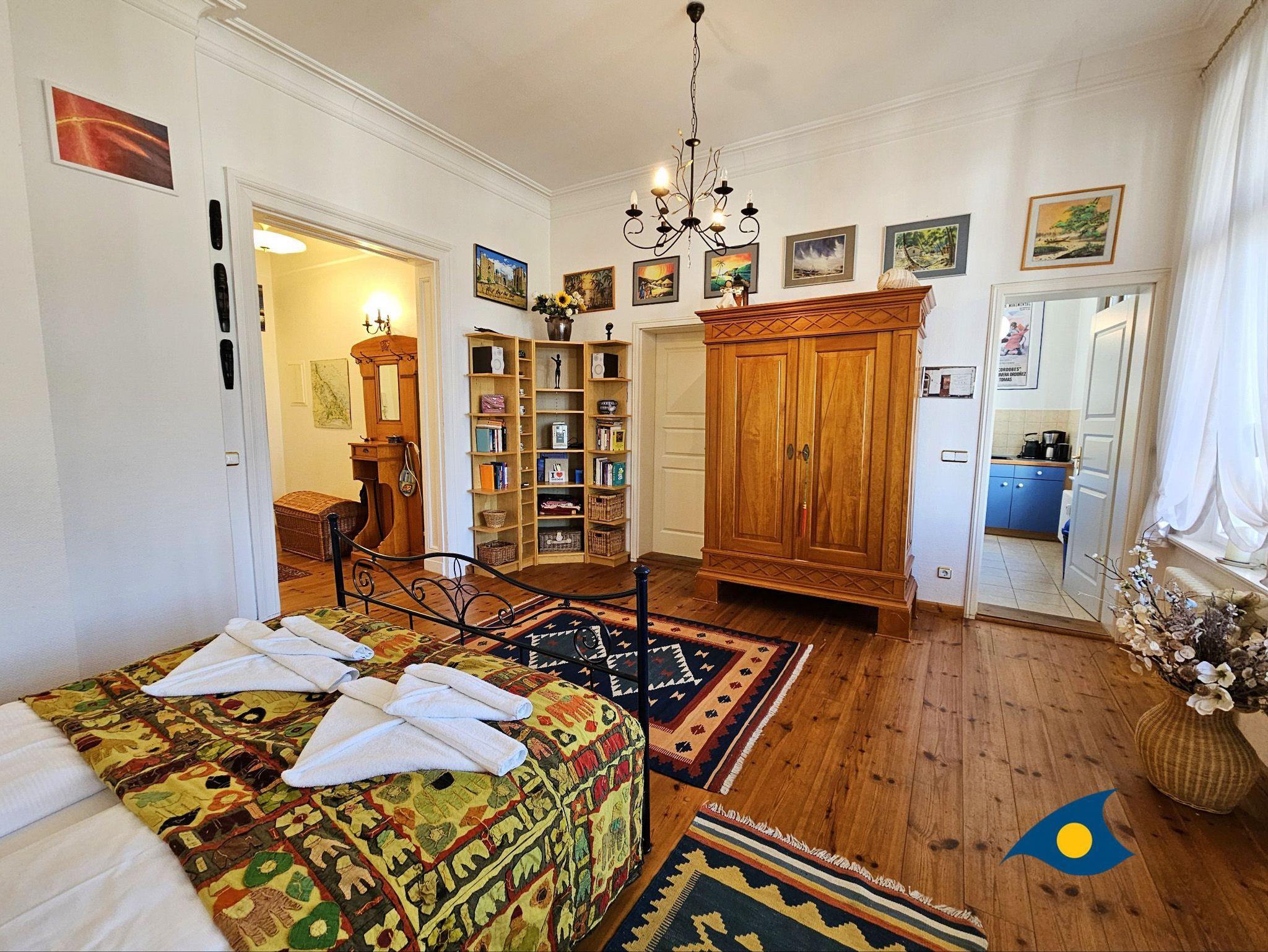 Die Wohnung besticht durch eine einzigartige Mischung aus historischem Charme und modernem Komfort. Die Ausstattung entspricht dem aktuellen Stand der Technik und ist liebevoll mit Folklore aus aller Welt dekoriert.