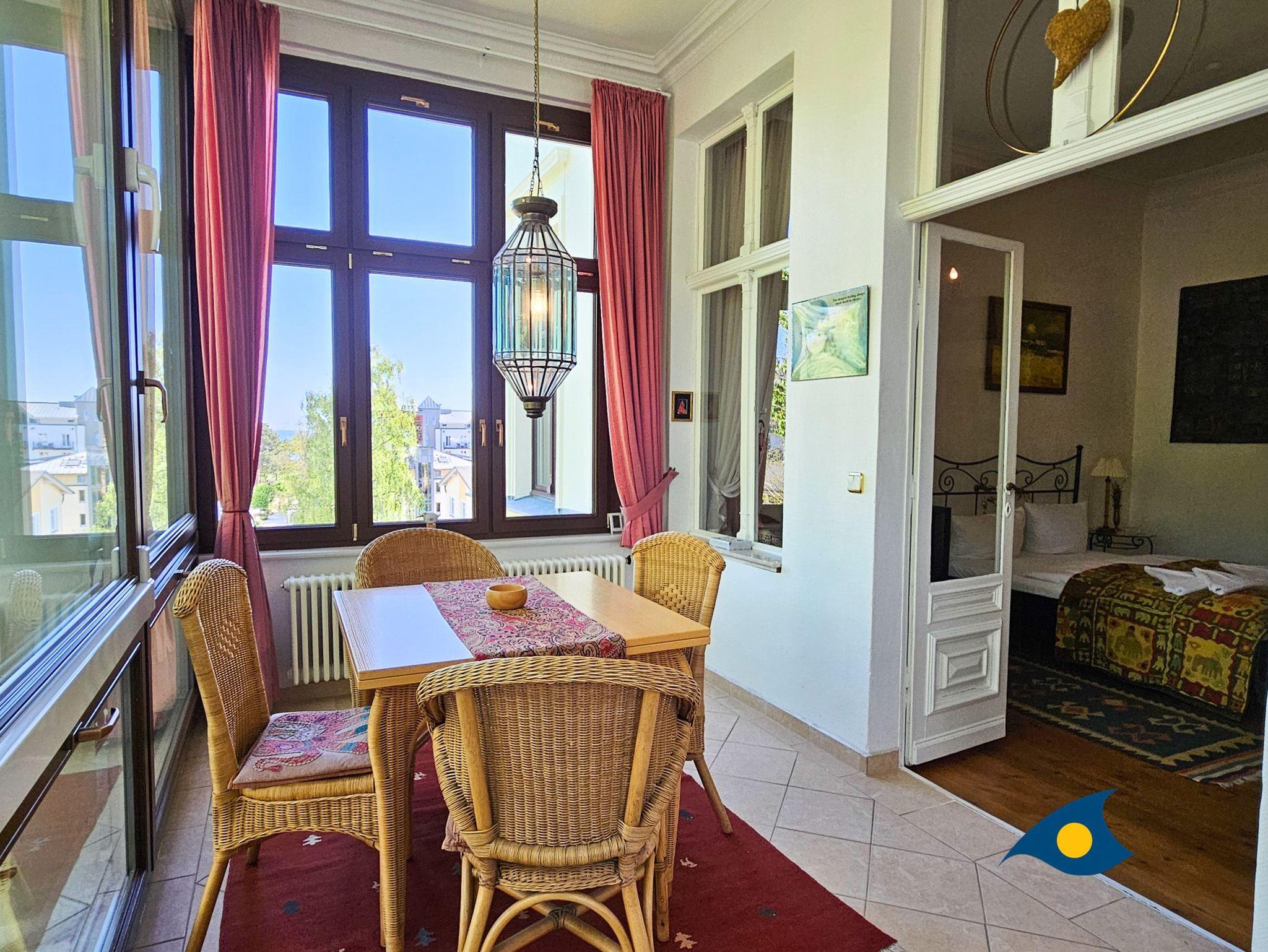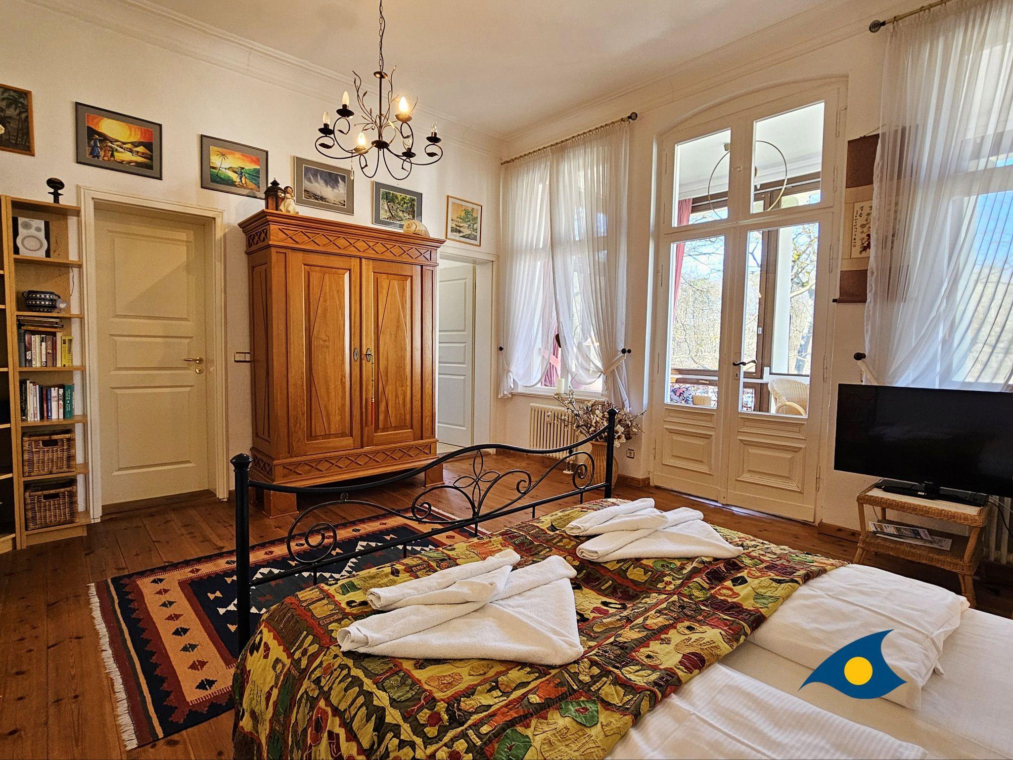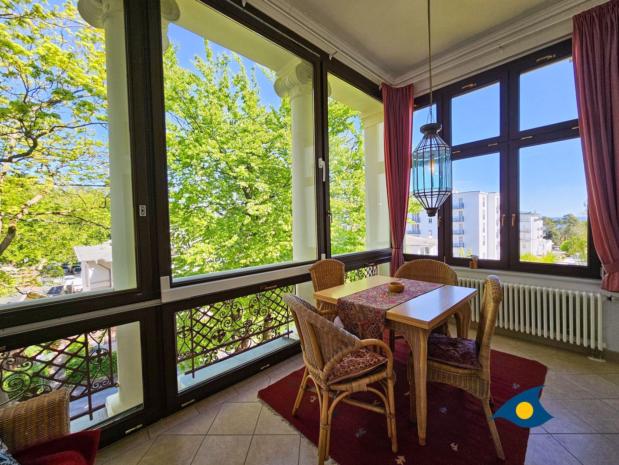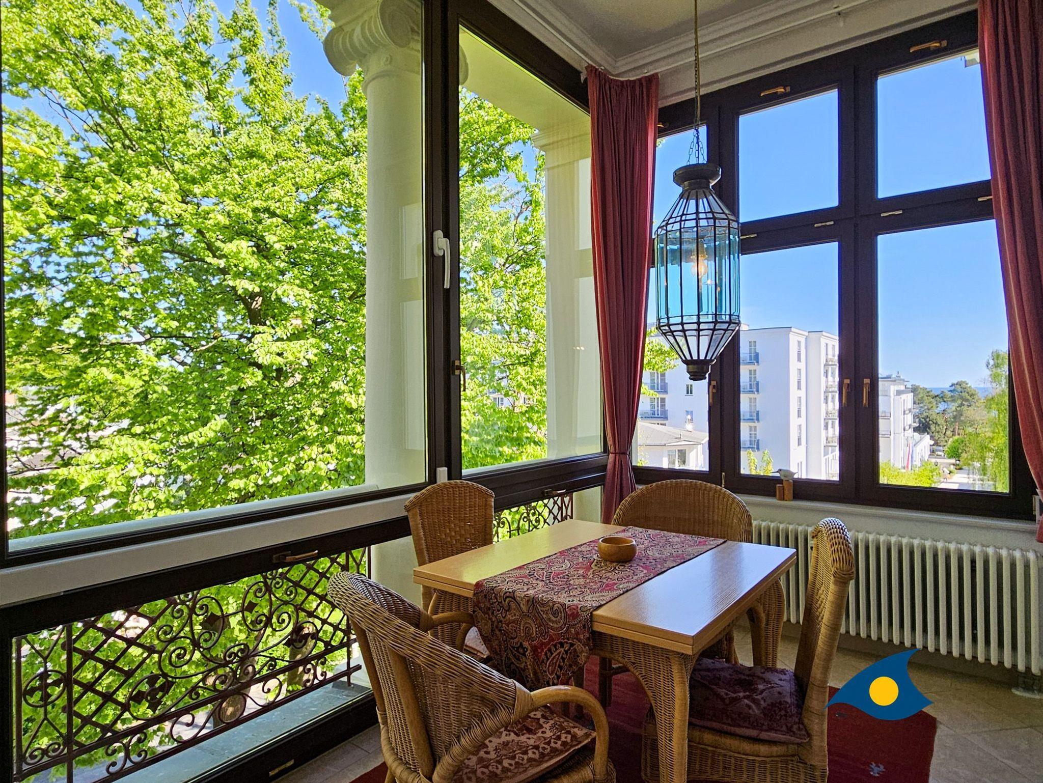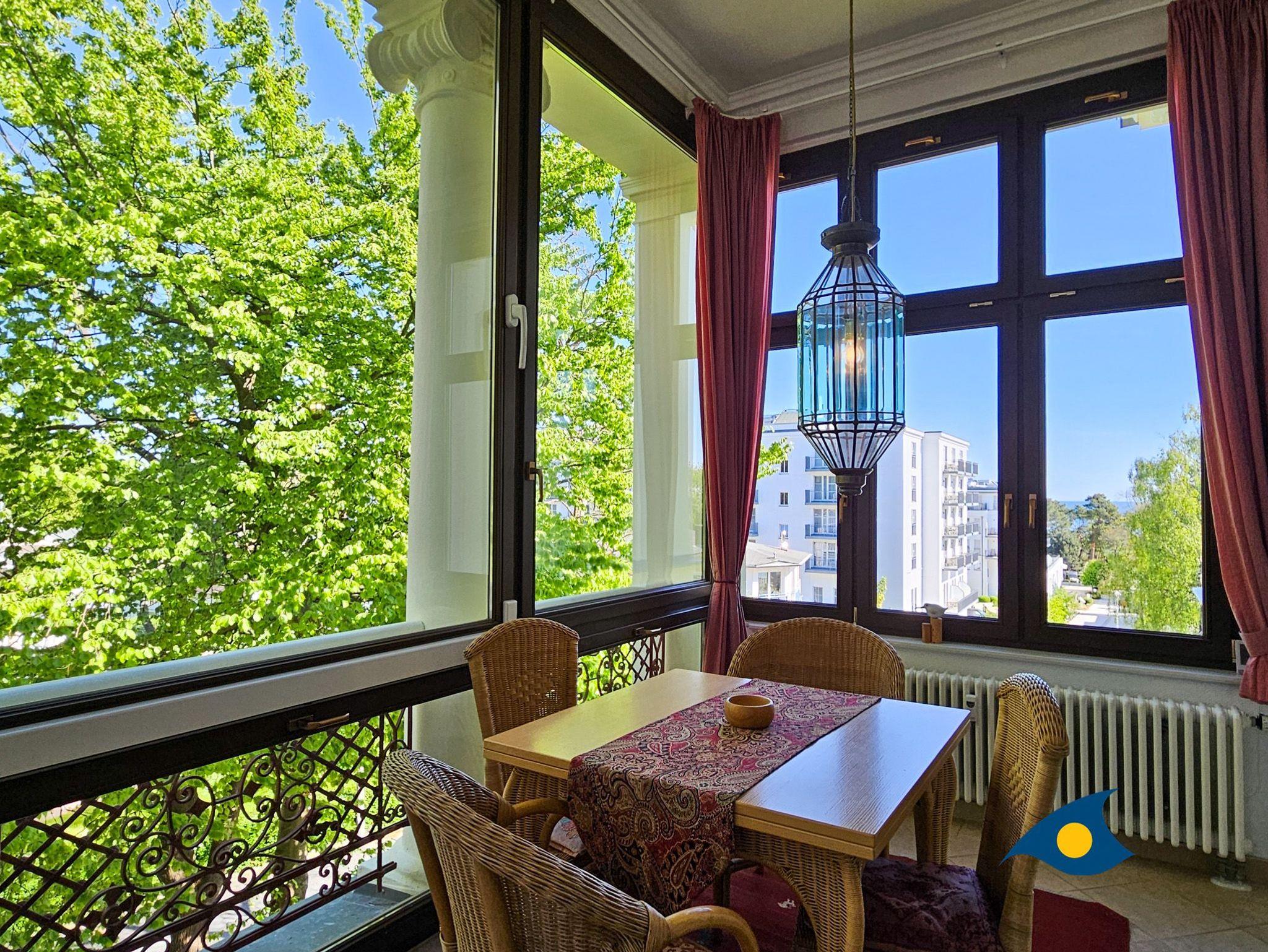 Erleben Sie einen unvergesslichen Urlaub in dieser charmanten 54m² großen Ferienwohnung für zwei Personen, gelegen in einer alten Bäderstilvilla im Herzen des Villenviertels von Heringsdorf. Die Wohnung befindet sich im ersten Stock und bietet von der gemütlichen Loggia einen herrlichen Blick Richtung Ostsee. Der feine Sandstrand ist nur 200 Meter entfernt!