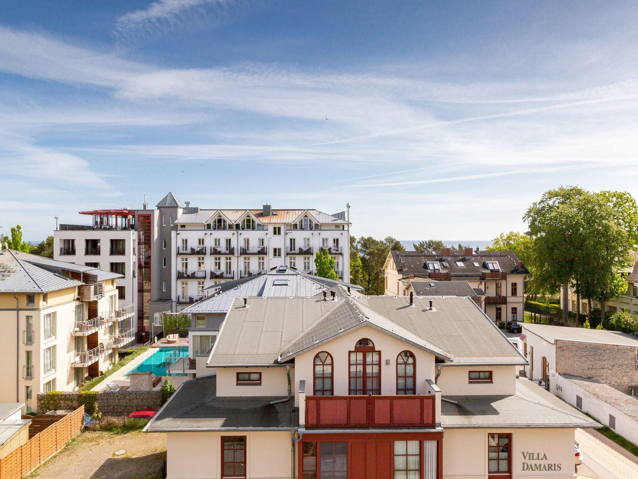 Die schöne Villa Arcadia liegt in der Delbrückstraße im Seebad Heringsdorf. Komfortabel ausgestattet, finden Sie alles für einen erholsamen Urlaub in Heringsdorf. Geschmackvolle 2- und 3-Raum-Appartements bieten Platz für bis zu 4 Personen. Das Haus ist nur wenige Schritte vom feinsandigen Strand und der reizvollen Promenade entfernt. Im Untergeschoss der Villa befindet sich eine kostenfreie Sauna und eine Waschmaschine, die gegen eine Gebühr von EUR 4,00 pro Waschgang von allen Gästen genutzt werden kann. Für Fahrräder gibt es einen Fahrradabstellraum. Für jede Wohnung steht ein Pkw-Stellplatz am Objekt zur Verfügung. Das WLAN-Netz im Haus ist kostenfrei nutzbar.