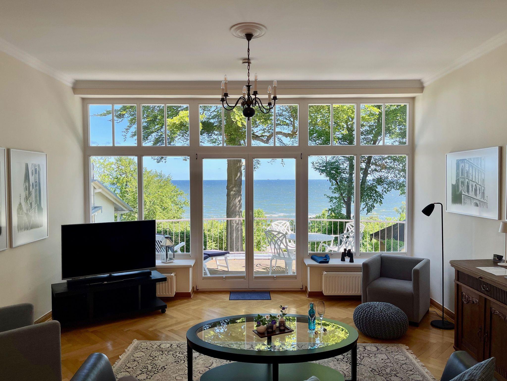 Dabei genießen Sie die vorteilhafte Ausrichtung des Hauses mit dem herrlichen Meerblick auf der Nord-Ost-Seite und dem historischen Risalit auf der Süd-West-Seite, mit Sonnenschein bis in die Abendstunden.