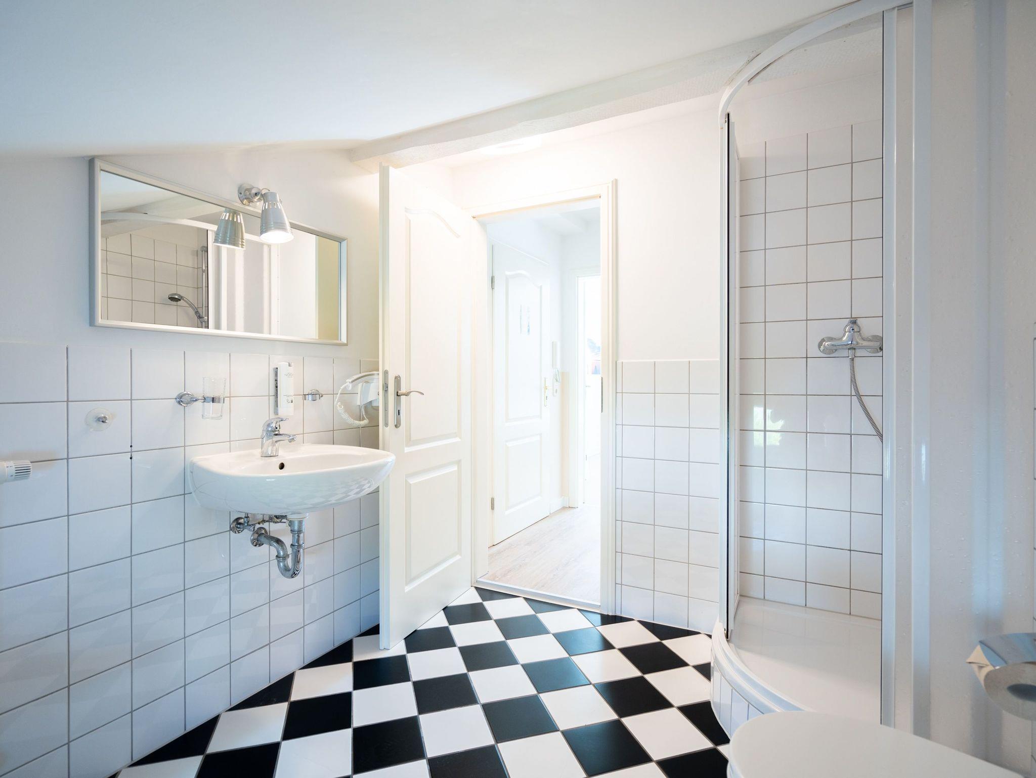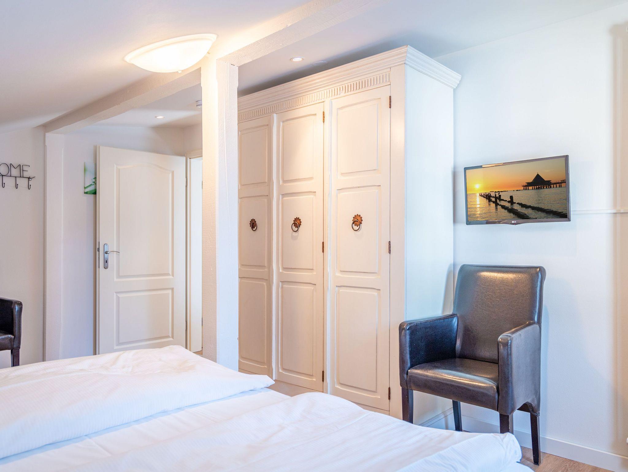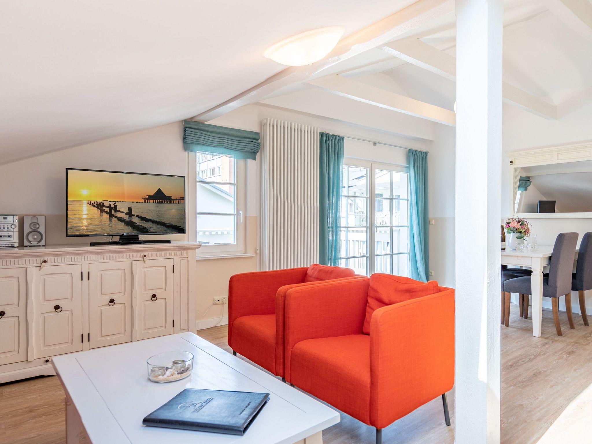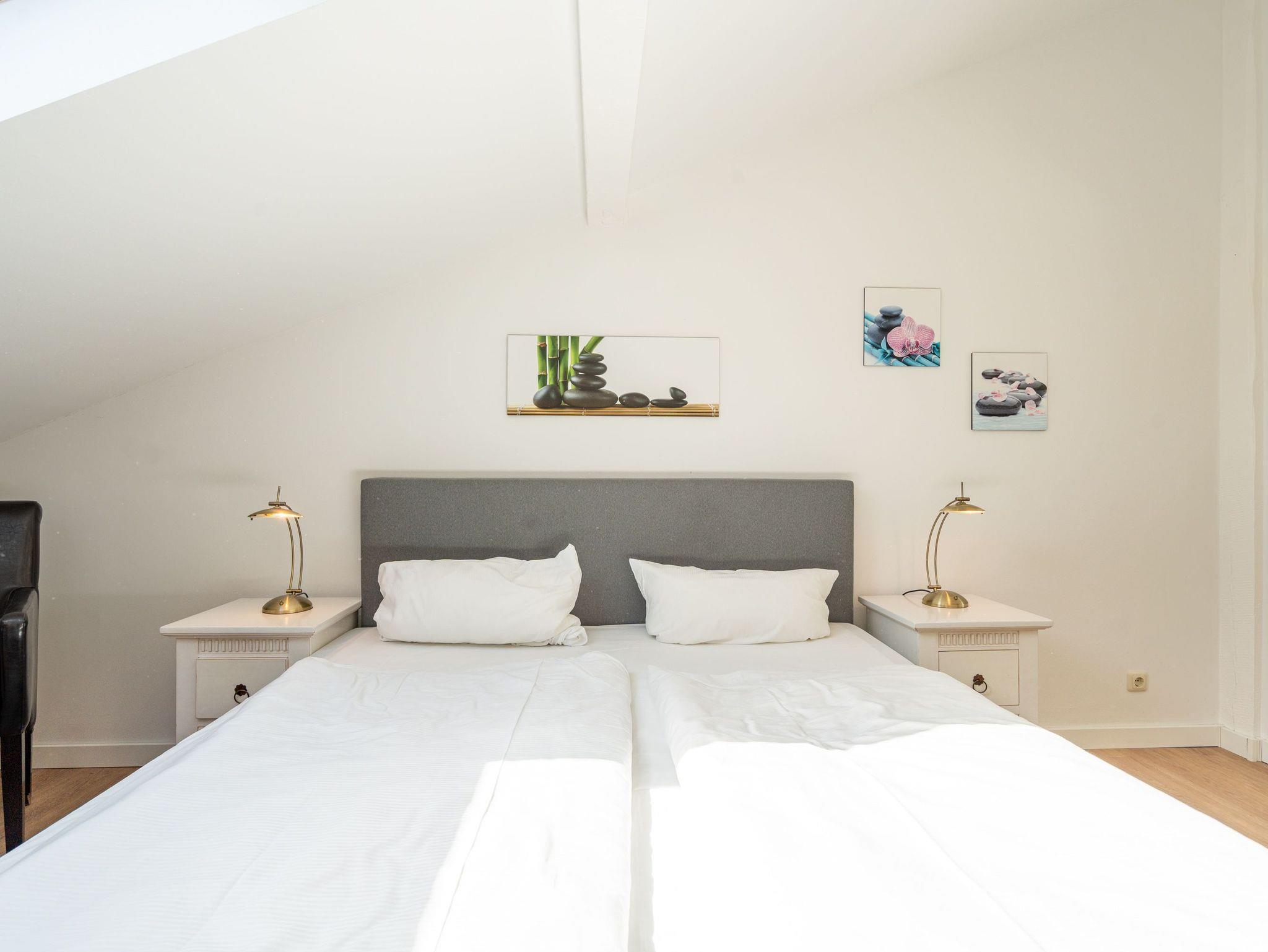 Mit 78 m² bietet diese Dachgeschosswohnung reichlich Platz für einen entspannten Urlaub mit Familie oder Freunden. Zwei Schlafzimmer mit Doppelbetten garantieren erholsame Nächte. Im Wohnbereich mit Sitzgruppe, TV, Küchenzeile und Essplatz lässt es sich gemütlich verweilen. Der 6 m² große Westbalkon lädt dazu ein, den Abend bei Sonnenuntergang ausklingen zu lassen. Bad mit Dusche und WC sowie ein Pkw-Stellplatz am Haus runden das Angebot ab.