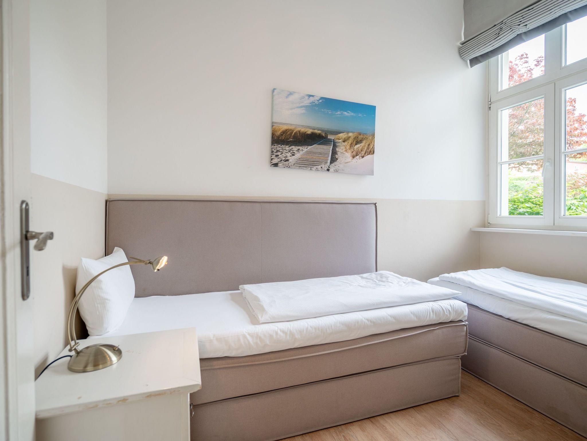Auf 67 m² bietet diese Erdgeschosswohnung alles für einen entspannten Urlaub zu viert. Das Hauptschlafzimmer verfügt über ein Doppelbett und TV, das zweite Schlafzimmer über zwei gemütliche Einzelbetten. Der große Wohnbereich mit komfortabler Sitzgruppe und Flat-TV ist der Mittelpunkt der Wohnung. Die verglaste Veranda mit offener Küche und Essplatz führt direkt auf die Terrasse, die gleichzeitig als Eingang dient. Das moderne Bad mit Dusche und WC sorgt für frischen Komfort. Ihr Pkw-Stellplatz befindet sich direkt am Haus ? so starten Sie bequem in Ihre Urlaubstage.