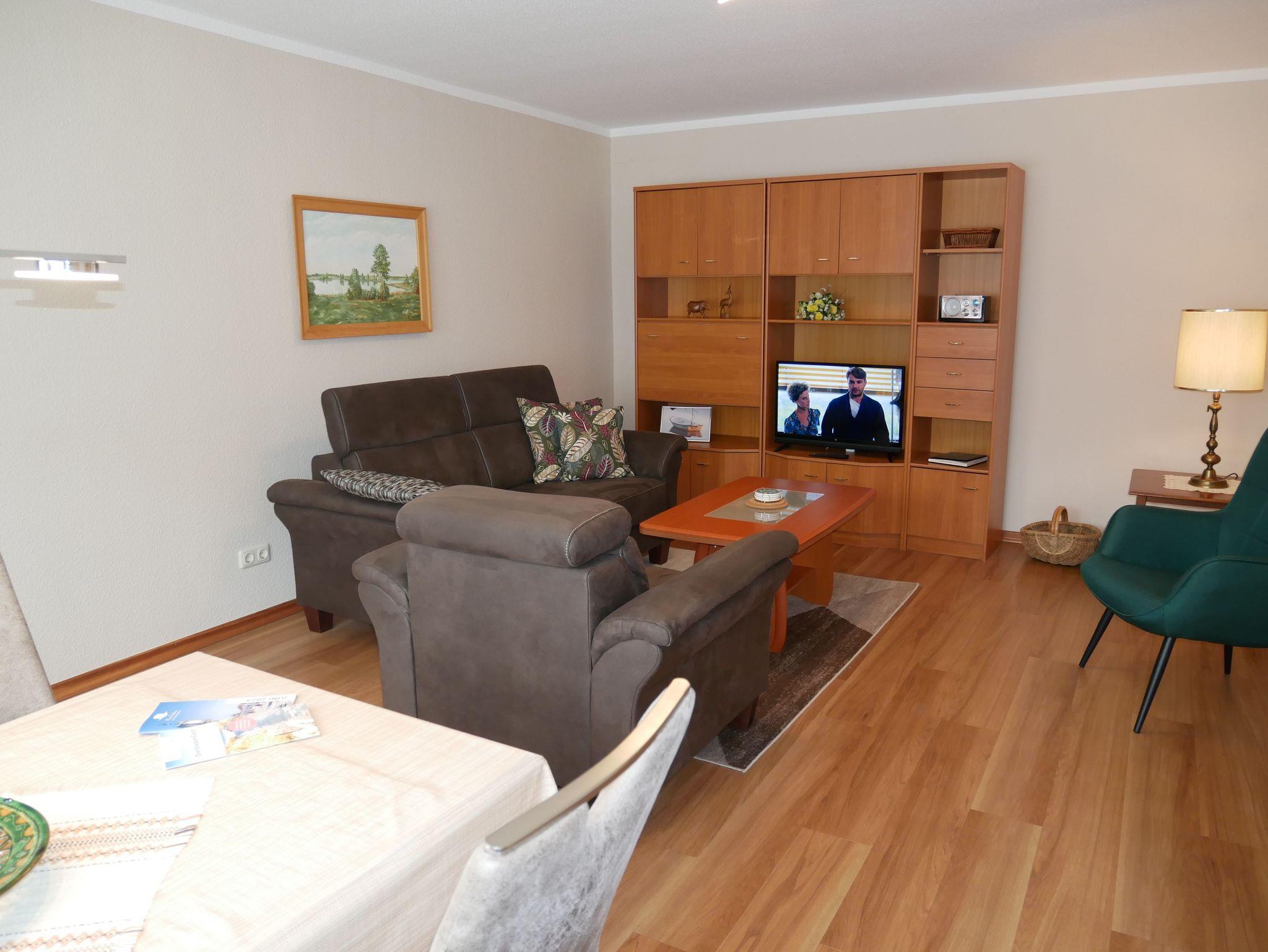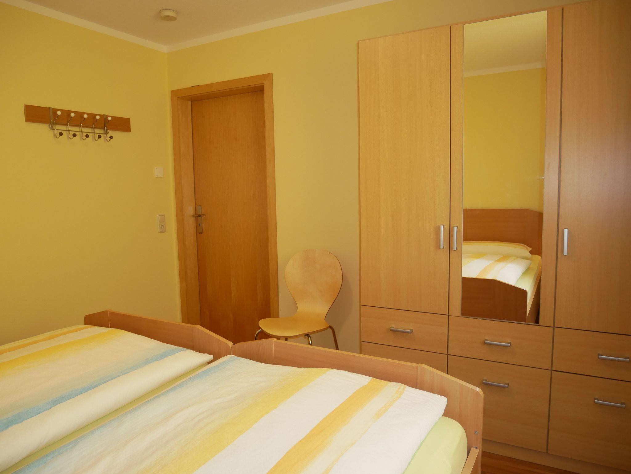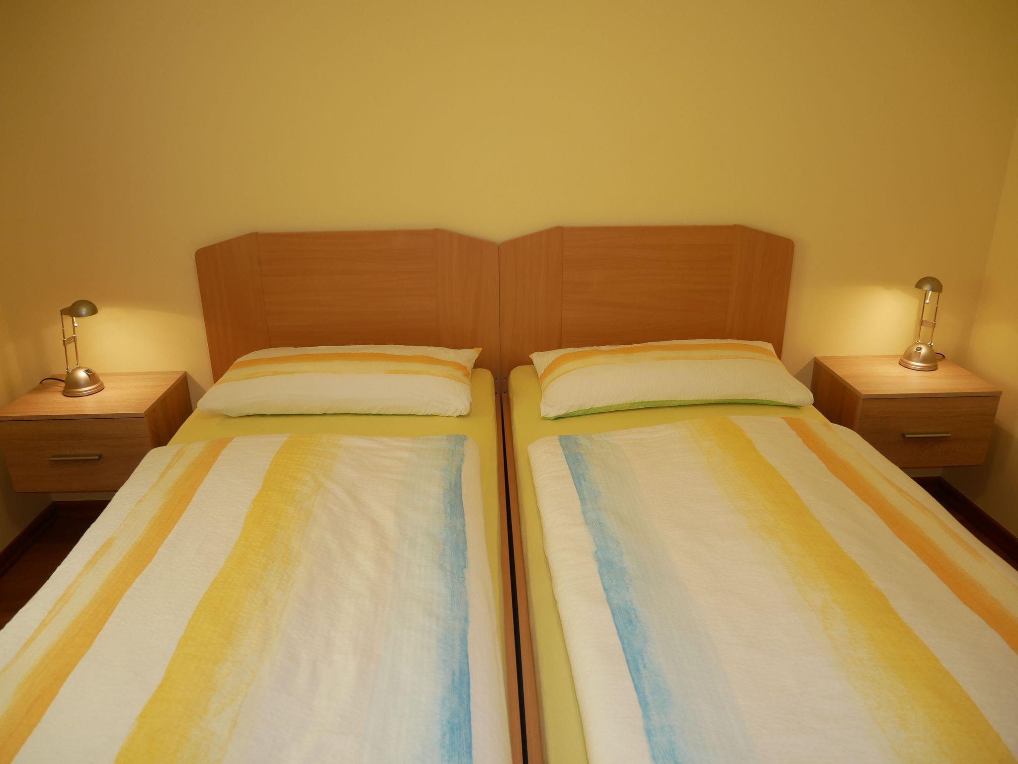 Die Ferienwohnung Sonnenzipfel ist ca. 80m² groß und befindet sich im Erdgeschoss. Das Wohnzimmer ist mit einer gemütlichen Sitzecke ausgestattet und verfügt über einen Flat-TV. Beide Schlafzimmer sind jeweils mit einem seniorengerechten Doppelbett, einem Kleiderschrank und Verdunklungsrollos ausgestattet. Das größere Schlafzimmer verfügt über einen zweiten Fernseher.