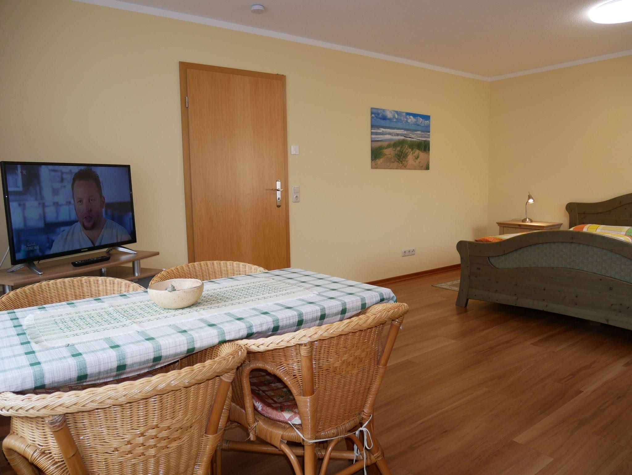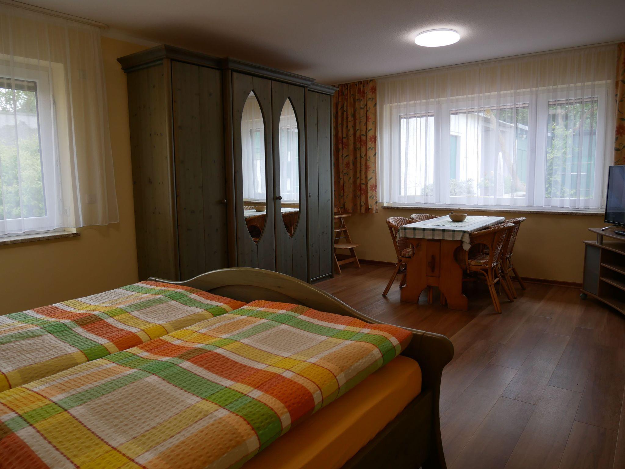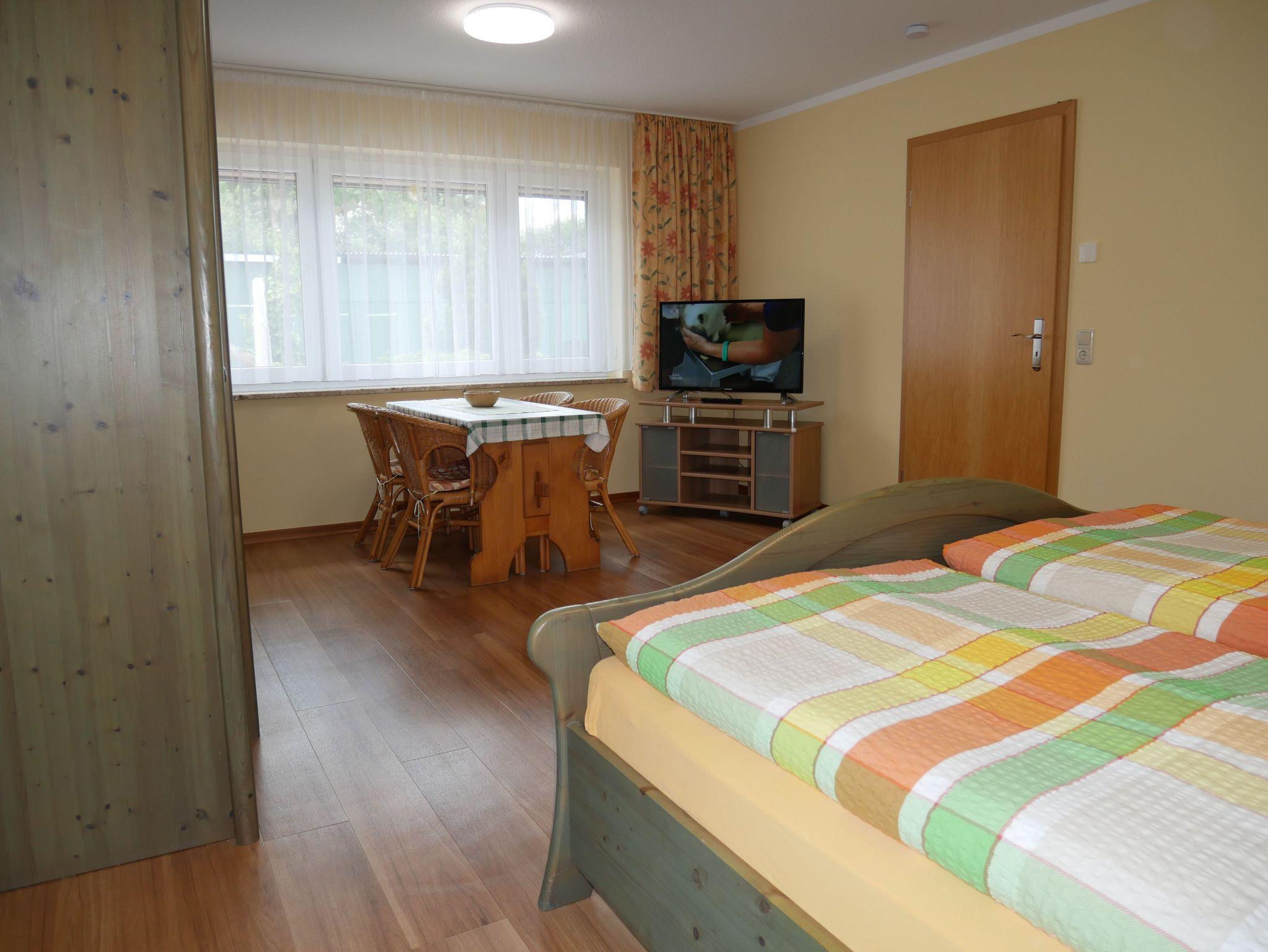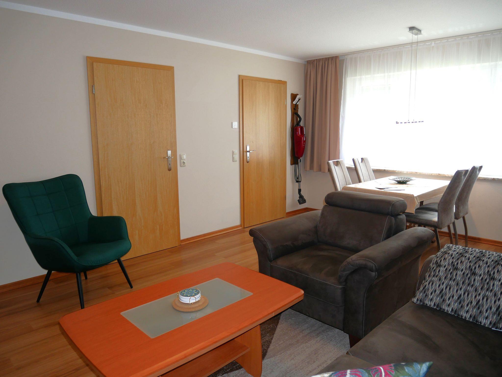 Die Ferienwohnung Sonnenzipfel ist ca. 80m² groß und befindet sich im Erdgeschoss. Das Wohnzimmer ist mit einer gemütlichen Sitzecke ausgestattet und verfügt über einen Flat-TV. Beide Schlafzimmer sind jeweils mit einem seniorengerechten Doppelbett, einem Kleiderschrank und Verdunklungsrollos ausgestattet. Das größere Schlafzimmer verfügt über einen zweiten Fernseher.
