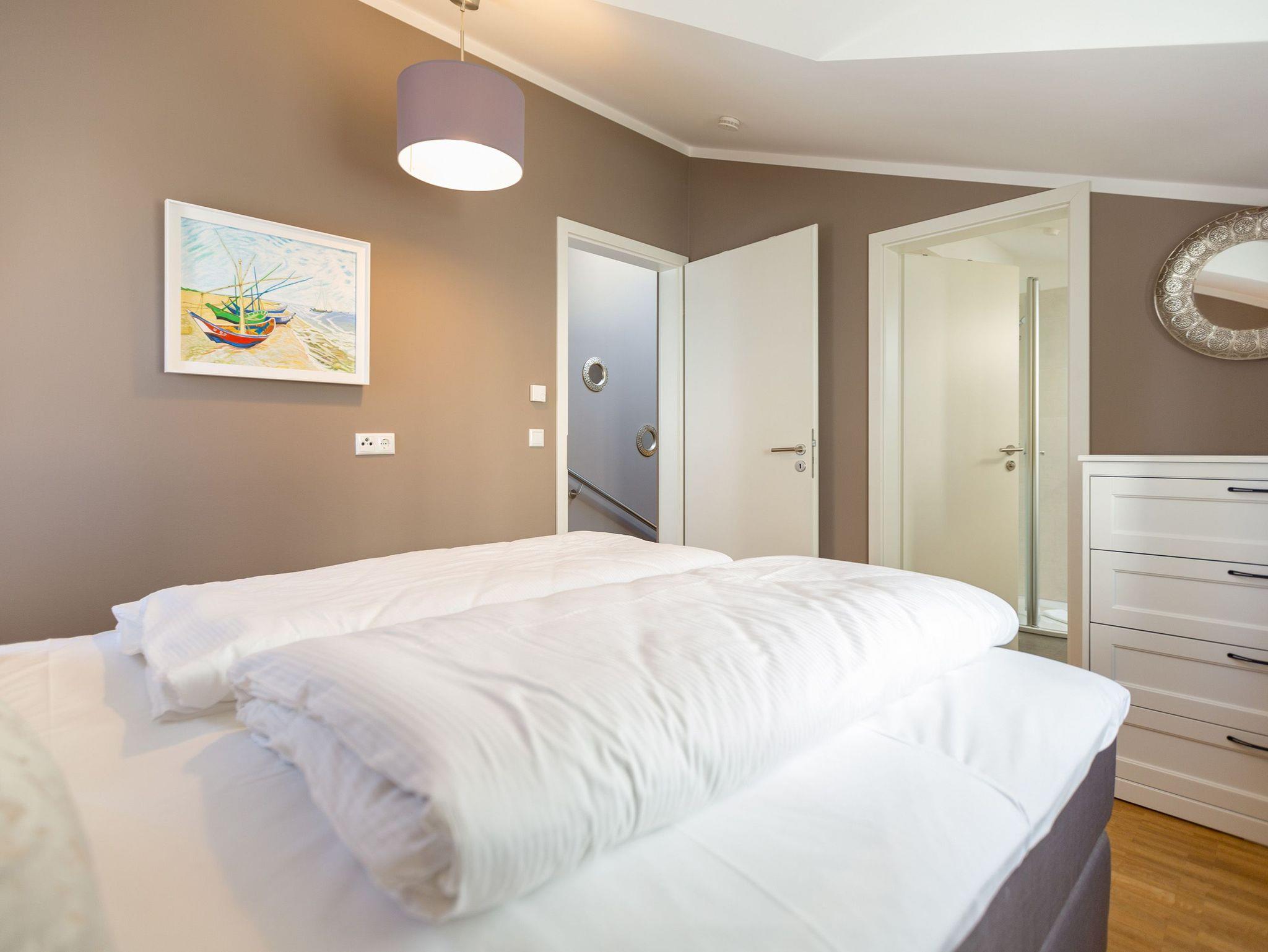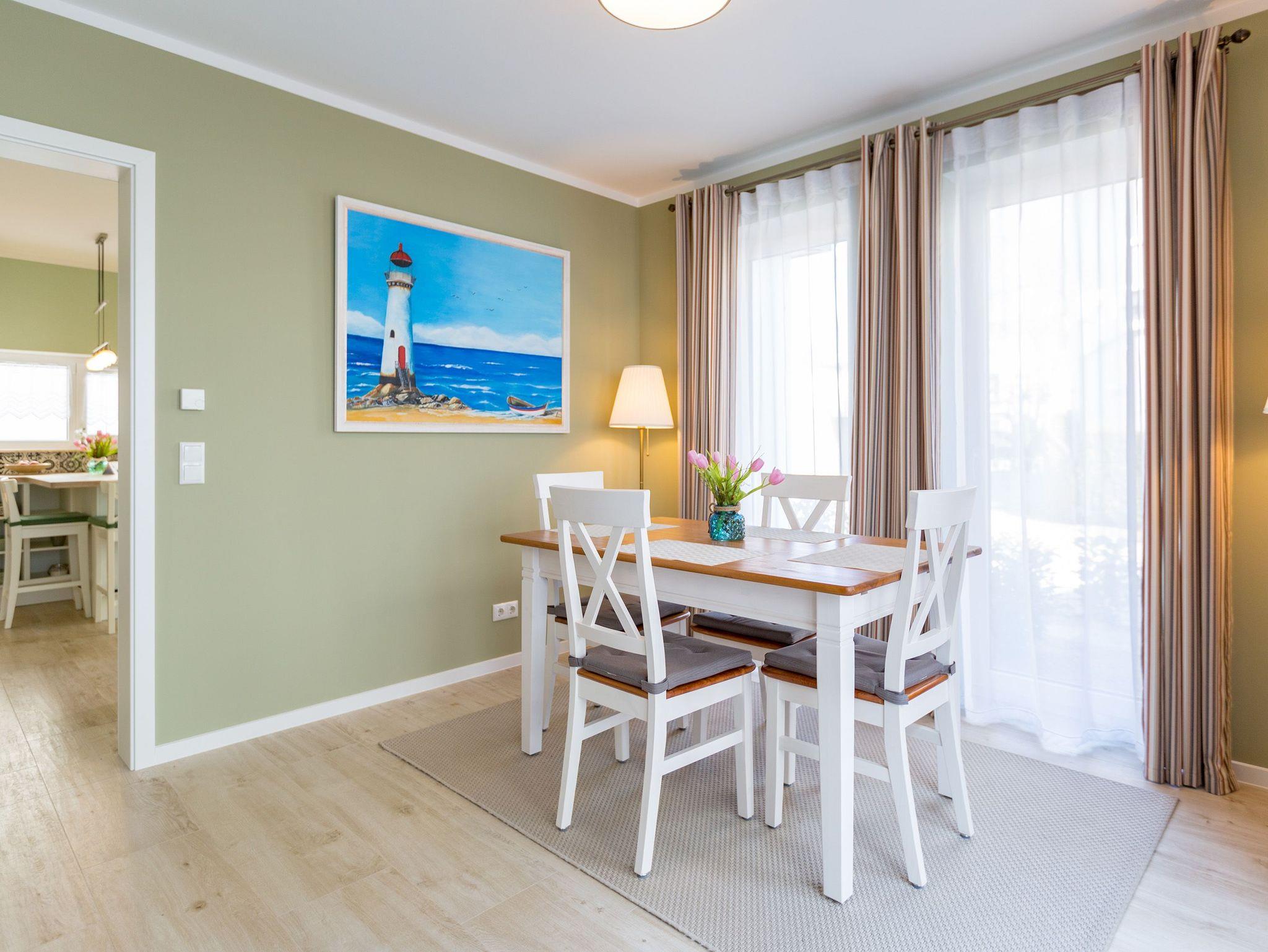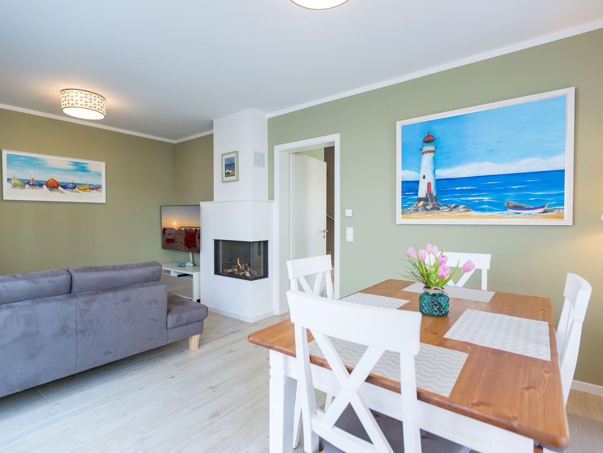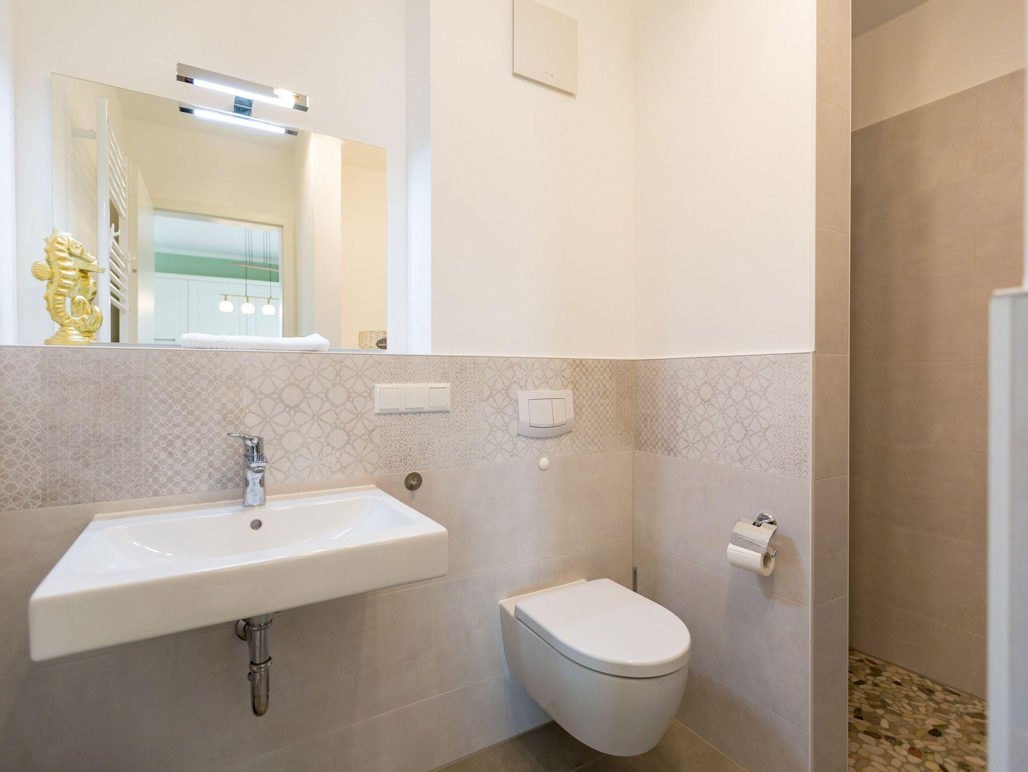 Inmitten des Urlaubstrubels der Kaiserbäder ist das komplett abgeschlossene Appartement Nummer 2 im Gartenhaus des Quartiers am Waldschloss ein exklusives Ruhereich über zwei Etagen. Auf seinen 82 Quadratmetern bietet es Platz für bis zu 5 Personen. Ein Kleinkind bis 2 Jahre kann im Kinderreisebett ebenfalls aufgebettet werden. Hier darf getrost auch der geliebte Vierbeiner mitgebracht werden, das Grundstück ist komplett eingezäunt. So wird der Urlaub an der Ostsee ein rundum gelungenes Erlebnis für Familien und Freunde. Eine wunderschöne, große Küche empfängt Sie gleich beim Eintreten. Vintage-Fliesen und viel weißes Holz im skandinavischen Landhaus-Stil geben Ihnen vom ersten Moment an das Gefühl, genau am richtigen Ort Urlaub zu machen. Hier finden Sie übrigens alle Geräte wie Herd, Spülmaschine, Gefrierschrank, die Sie für gemeinsame Mahlzeiten brauchen können. Inklusive einer urigen Theke für den kleinen Plausch zwischendurch. Von der Küche aus geht es in das helle und großzügige Wohn-Ess-Zimmer. Hier wartet eine große und komfortable Sofalandschaft nur darauf, dass Sie sich fallen lassen und ausgiebig relaxen. Dabei können Sie den Blick auf das Flammenspiel des Gas-Kamins oder aber einen spannenden Film auf dem großen Flat-TV genießen. Die Einrichtung strahlt viel Gemütlichkeit aus. An einem schönen Holztisch können Sie die Mahlzeiten gemeinsam einnehmen. Oder sie setzen sich nach draußen auf die Terrasse. Im Erdgeschoss befindet sich zudem ein separates WC mit Waschbecken, Dusche und Waschmaschine. Zum Schlafen geht?s eine Etage nach oben. Zwei Schlafzimmer mit komfortablen Boxspringdoppelbetten ( 1,60m x 2,00m), davon eines mit Flat-TV und Kleiderschrank sowie ein drittes Schlafzimmer mit einer Sofa-Sitzgruppe, die zu einer Schlafcouch ( 1,80m x 2,00m)[nbsp][nbsp]für eine 5. Person umfunktioniert werden kann sorgen für erholsames Schlafvergnügen. Ein lichtdurchflutetes Badezimmer mit Eckdusche, Waschbecken und WC ist Ihr kleiner Wellness-Bereich. Handtücher liegen für Sie bereit. Und natürlich sind die Betten bei Ankunft ebenfalls bezogen. Und für Ihr Auto gibt es einen für Sie reservierten Tiefgaragen-Stellplatz Nr. 11 a / WE 2 im Nachbarhaus (Einfahrthöhe max. 2,00 m, Stellplatzbreite max. 2,30m, eingeschränkte Wendemöglichkeit).