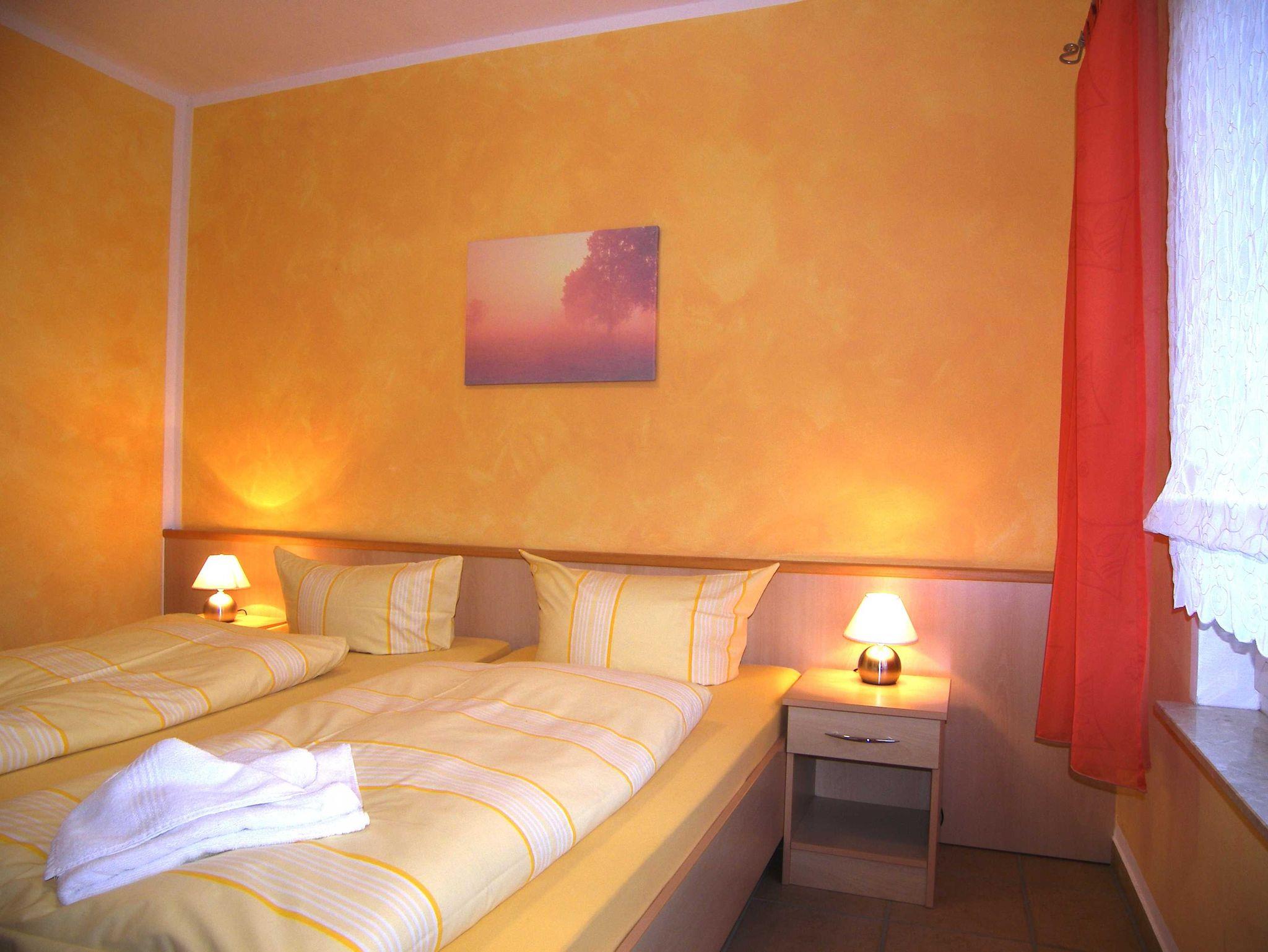 Die moderne, komfortable und barrierefreie Nichtraucher- Ferienwohnung ist für Rollstuhlfahrer geeignet. Sie liegt in parterre und ist stufenlos zu erreichen. Der kombinierte Wohnraum verfügt über eine Schlafcouch (Aufbettung für eine 3. Person), TV und Radio. Die integrierte Küchenzeile ist mit einer Mikrowelle, 4 Platten Cerankochfeld, Kühlschrank mit Gefriermöglichkeit, Geschirr, Wasserkocher, Toaster und Kaffeemaschine ausgestattet.