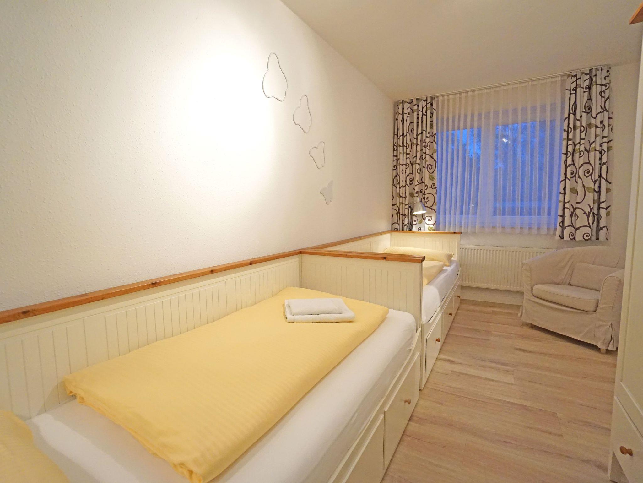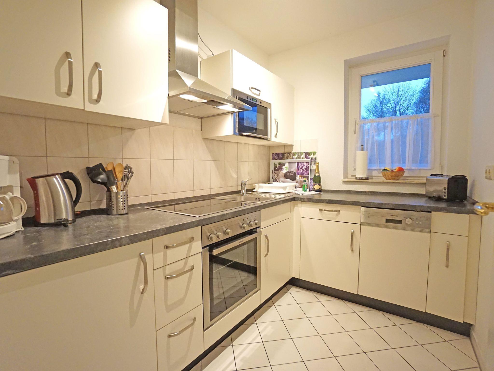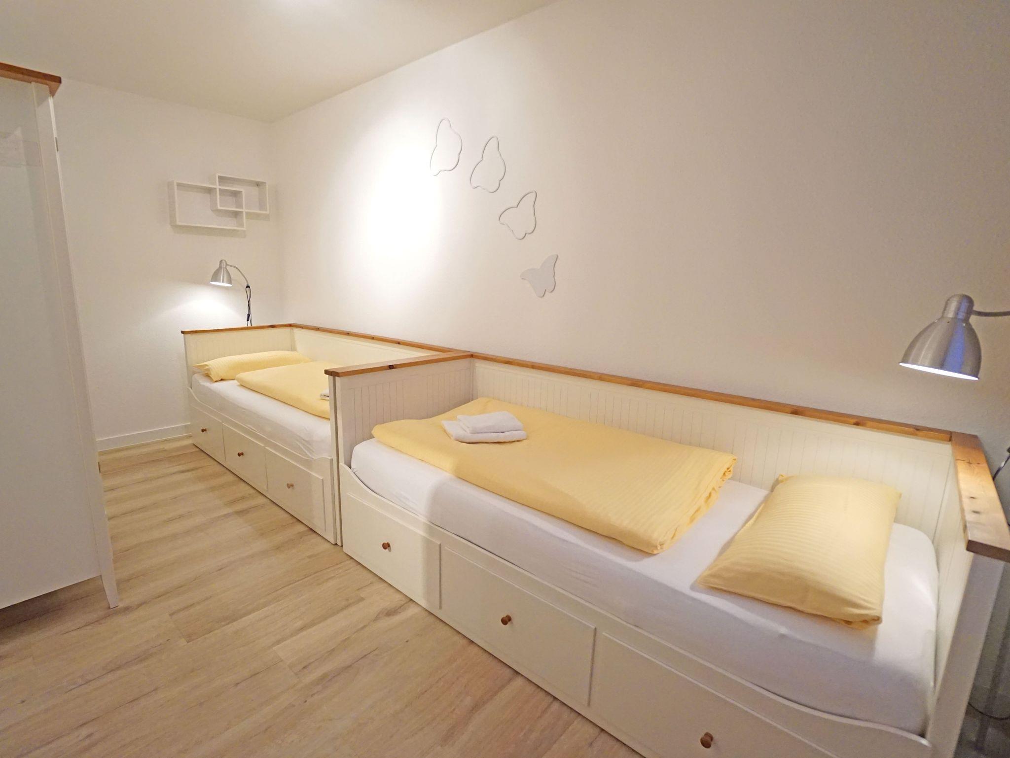 Die geräumige und geschmackvoll eingerichtete Ferienwohnung Nummer 4 in der Villa Madeleine befindet sich im Erdgeschoss mit möblierter Süd-Terrasse. Ein Schlafzimmer ist mit einem Doppelbett (180x200cm) und das zweite mit zwei Einzelbetten ausgestattet. Die separate vollausgestattete Küche lässt keine Wünsche offen. Im komfortablen Wohnzimmer befindet sich die gemütliche Couchgarnitur mit Flachbildfernseher und einem Esstisch. - Ein PKW-Stellplatz und ein Fahrradschuppen stehen auf dem Grundstück zur Verfügung.