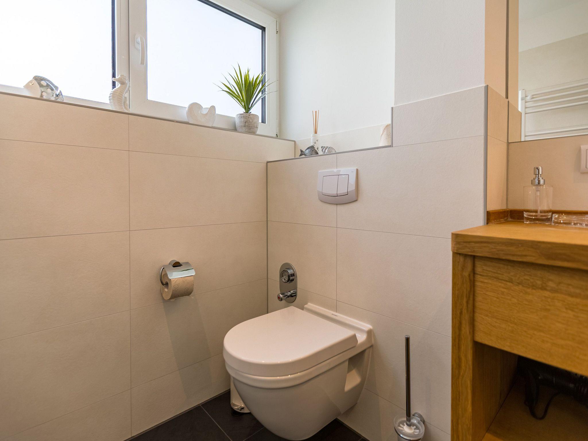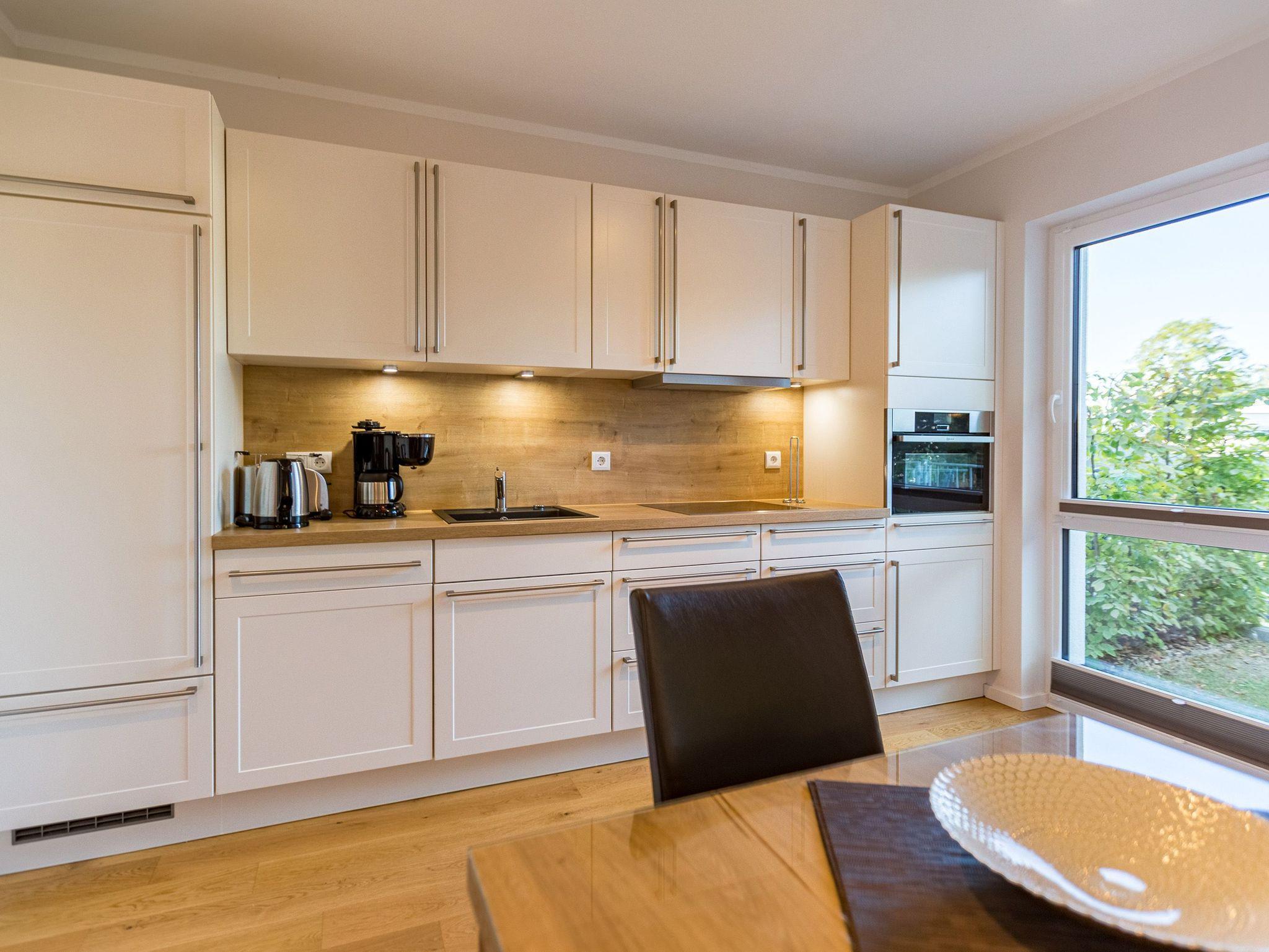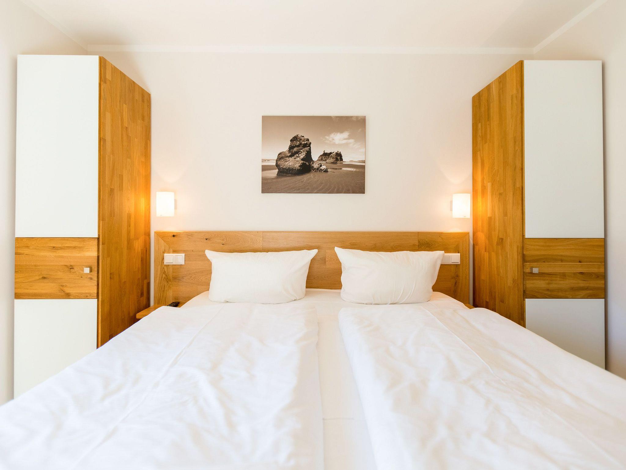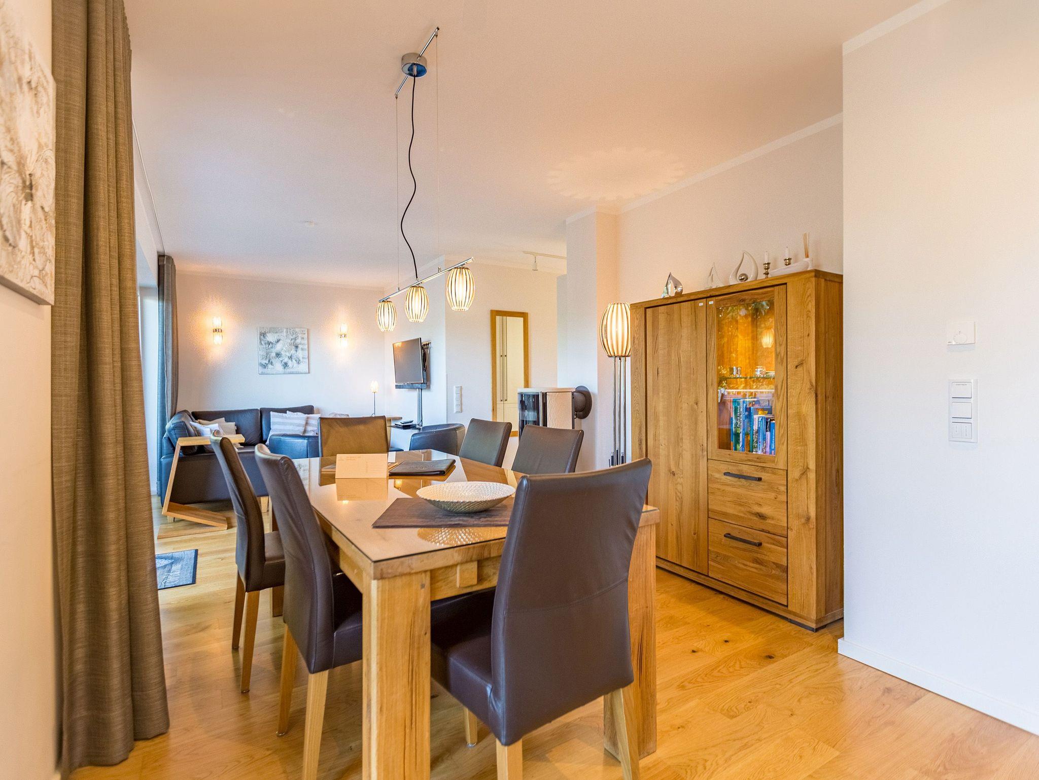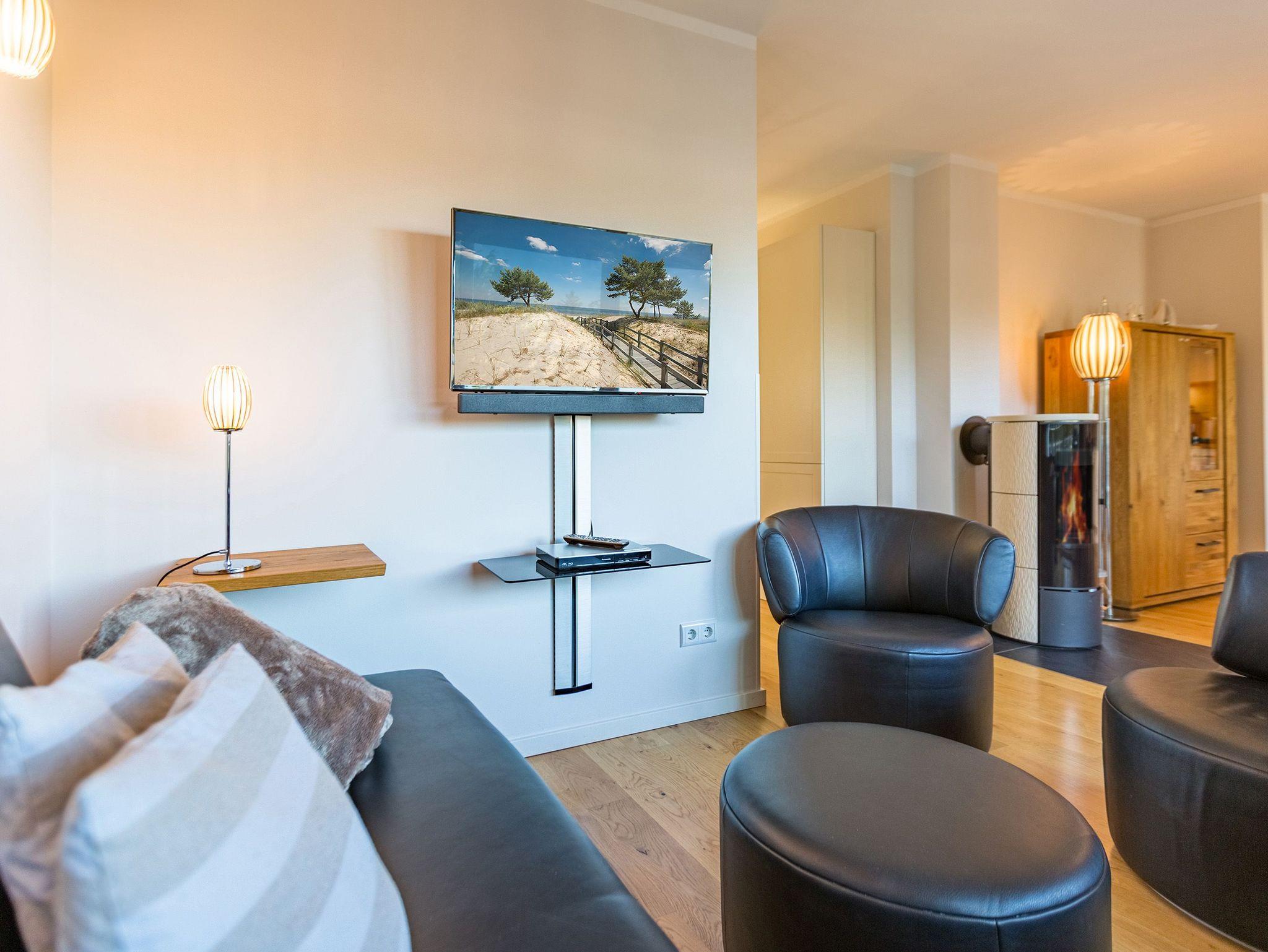Wenn der Himmel sich im Sommer beim Untergang der Sonne in schönsten Rot- und Orange-Tönen färbt, dann können Sie auf der Terrasse Ihres Ferienparadieses sitzend diesem grandiosen Schauspiel bei einem feinen, gekühlten Getränk zuschauen. Die Wohnung 2 im Erdgeschoss des Quartiers am Fischerstrand entführt Sie auf ihren 75 großzügigen Quadratmetern in eine Welt aus warmen Farben und wunderschönen und modernen Echtholzmöbeln. Das 3-Zimmer-Appartement für vier Personen strahlt in allen seinen Räumen Eleganz aus. Zum offenen Wohnbereich gehört eine Küchenzeile mit hochwertigen Geräten wie Mikrowelle, Cerankochfeld, Backofen, Kühlschrank, Gefrierschrank, Spülmaschine und diversen Kleingeräten. Schönes Geschirr sorgt dafür, dass das Auge am schönen, großen Echtholztisch mitisst. Genießen Sie die wohlige Wärme des Kamins und entspannen Sie auf der riesigen und bequemen Sofalandschaft vor dem Flat-TV oder beim Blick ins Grüne durch die bodentiefen Panoramafenster. Zwei komfortable Boxspringdoppelbetten (beide 1,80 m x 2,00m) schenken Ihnen einen erholsamen Schlaf. In den Schränken gibt es viel Ablagefläche und in einem Schlafzimmer auch einen Safe. Die Wohnung 2 wartet gleich mit zwei Bädern auf. Beide verfügen über Dusche, WC und Waschtisch. Im Master-Bad steht eine hochwertige Miele-Waschmaschine. Zudem hat dieses noch ein kleines Highlight für Sie: Eine finnische Sauna. Für einen sorgenfreien Urlaub liegen Handtücher bereit und die Betten sind bezogen. Das WLAN ist kostenfrei nutzbar. Außerdem gehört ein Außenstellplatz zu der Wohnung. Für Ihre Fahrräder steht neben der Wohnung hinter dem dazugehörigen Parkplatz ein Fahrradständer ( für 4 Räder) zur Verfügung. **Bitte beachten Sie, dass der Kamin aufgrund eines Defektes aktuell auf unbestimmte Zeit nicht nutzbar ist. Stand: 15.12.2025**