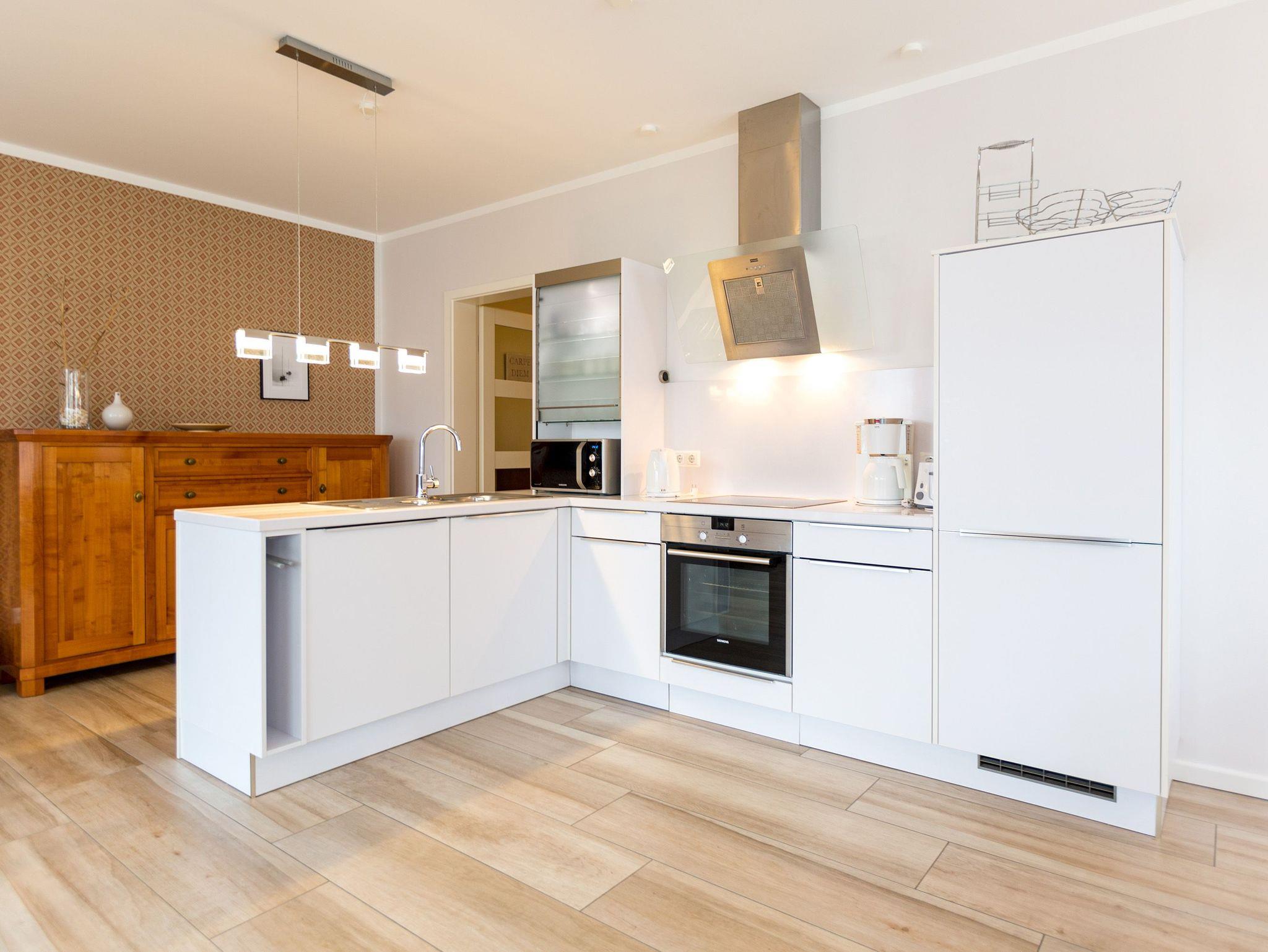 Schließen Sie die Augen und träumen Sie sich in dieses Feriendomizil an der Ostsee, dass auf großzügigen 147qm Erholung für die ganze Familie oder die besten Freunde verspricht. Auf insgesamt zwei Etagen mit 4 Schlafzimmern und 2 Bädern bietet dieses Appartement ausreichend Platz für bis zu 8 Personen und 1 Kleinkind (im Babyreisebett). Ein im Strandhaus-Stil gehaltenes Interieur, kombiniert mit hellen Naturtönen und Materialien aus Korb und Holz, komplettieren das Urlaubsgefühl. Im großzügigen Eingangsbereich im Erdgeschoss befindet sich neben einer Garderobe ein gemütlicher Loungesessel mit Leseecke, der ein Gefühl des Nachhausekommens versprüht. Das angrenzende Schlafzimmer mit eigenem Terrassenzugang und komfortablem Boxspringbett (1,80m x 2,00m) ist der perfekte Rückzugsort für Eltern oder Großeltern, die sich auf dieser Etage nach Ruhe sehnen. Ebenfalls im Erdgeschoss befindet sich eines der beiden Badezimmer mit Finnischer Sauna, die nach einem langen Strandspaziergang zu einem heißen Aufguss einlädt. Eine Dusche, ein Waschtisch sowie ein WC runden den Bereich des unteren Badezimmers ab. Außergewöhnlich könnte man das Wohnzimmer beschreiben, dass sich im Obergeschoss befindet. Der offen gestaltete Wohn-Ess-Bereich avanciert zum zentralen Treffpunkt des Appartements. Nicht zuletzt wegen des Kamins, dessen wohlige Wärme Sie direkt vom Sofa und auch vom Esstisch aus genießen können. Die integrierte moderne Küche ist voll ausgestattet und verfügt über hochwertige Küchengeräte (Mikrowelle, Backofen, Ceranfeld, Spülmaschine, Kühlschrank mit Gefrierfach). Entspannen Sie anschließend auf einem der beiden Stressless-Sessel und der bequemen Sofalandschaft vor dem Flat-TV, bevor Sie die Nacht in einem der drei Schlafzimmer im Obergeschoss verbringen, die alle über Boxspringbetten (1,80m x 2,00m), ausreichend Schrank- und Ablagefläche sowie einen Flat-TV verfügen. Eine kleine Wellness-Oase ist das Wannenbad im Obergeschoss, dass außerdem über eine Dusche, ein WC und einen Waschtisch verfügt. Bei Ihrer Anreise liegen für Sie Handtücher bereit. Auch die Betten sind bereits bezogen. Ein dem Appartement zugehöriger Stellplatz in einer Garage und ein Stellplatz am Haus für einen Kleinwagen (hier muss immer rückwärts eingeparkt werden) sowie ein paar wenige Fahrradabstellmöglichkeiten in der Garage zählen ebenso zu diesem Feriendomizil wie kostenfreies WLAN.