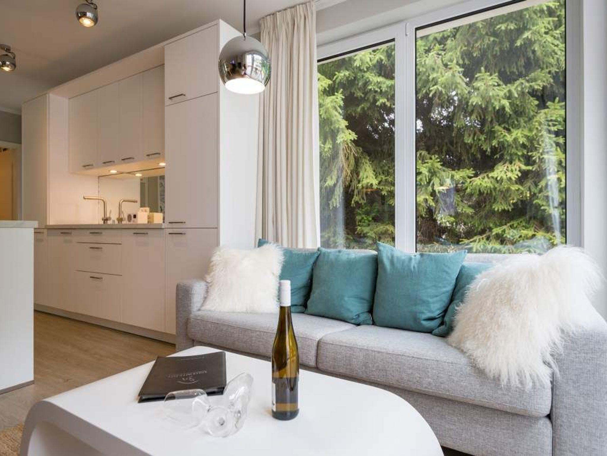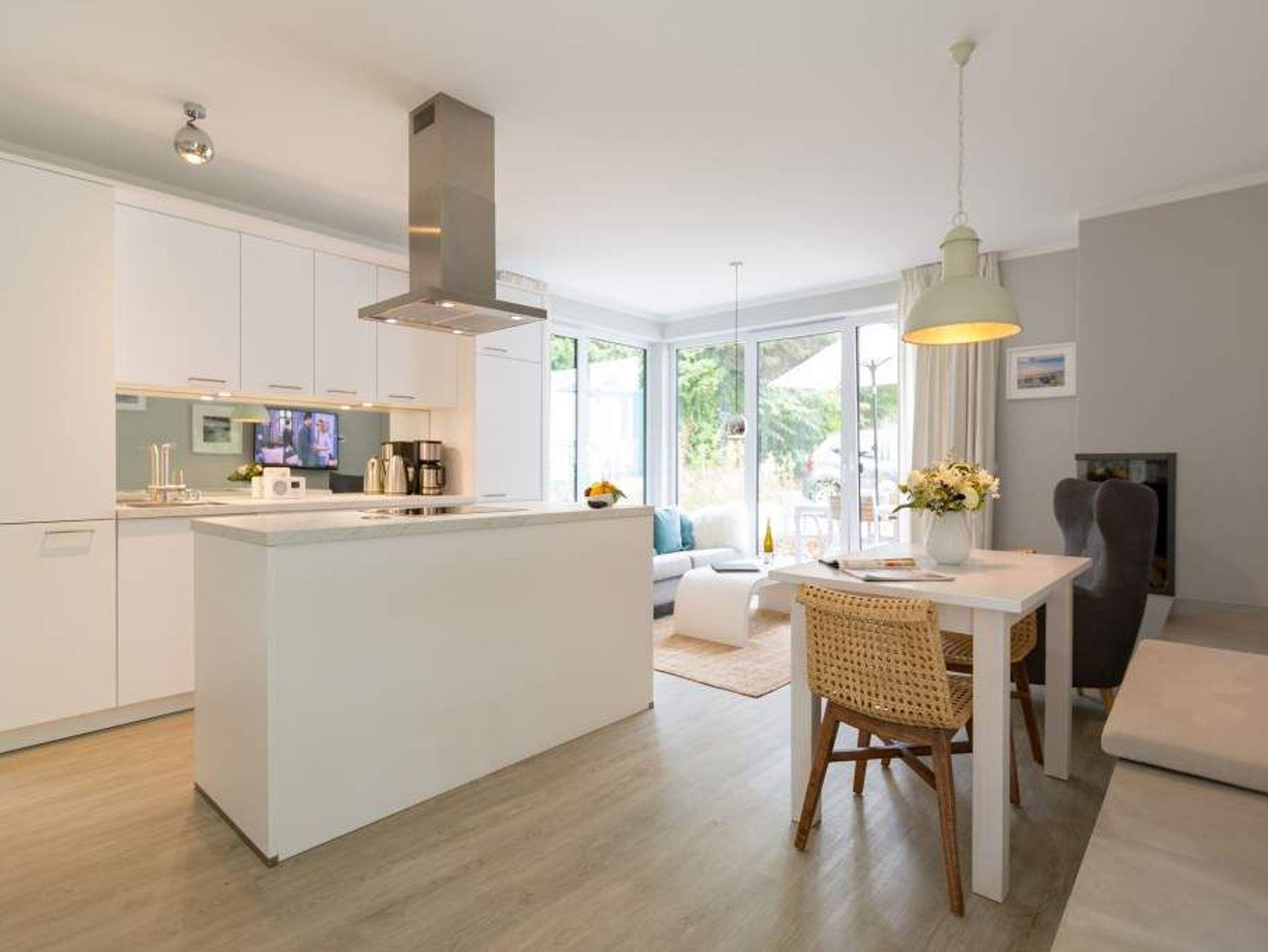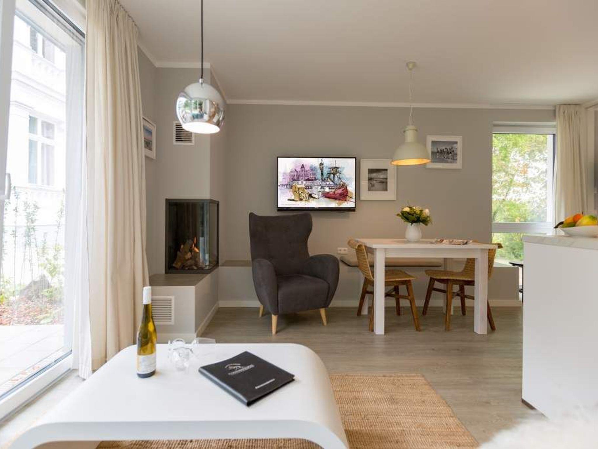 Willkommen in dieser modernen 2-Raum-Ferienwohnung, die mit 45 Quadratmetern ein stilvolles Zuhause für zwei Personen bietet. Gelegen im Erdgeschoss, besticht sie durch ein durchdachtes Wohnkonzept und eine warme, einladende Atmosphäre. Der offene Wohnbereich lädt mit einer gemütlichen Sitzgruppe, einem Flat-TV und einem stimmungsvollen Gaskamin zu entspannten Stunden ein. Von hier aus haben Sie direkten Zugang zur sonnigen Süd-Terrasse, die mit 10 Quadratmetern ausreichend Platz für erholsame Momente im Freien bietet. Angrenzend an den Wohnbereich befindet sich die offene Küche mit einem ansprechenden Essplatz. Sie ist komplett ausgestattet und bietet alles, was Sie für die Zubereitung köstlicher Mahlzeiten benötigen. Das Schlafzimmer sorgt mit einem komfortablen Boxspringdoppelbett (1,80 m x 2,00 m) für erholsame Nächte. Ein zusätzlicher Flat-TV rundet die hochwertige Ausstattung ab. Das moderne Duschbad mit WC bietet zeitgemäßen Komfort und lädt zu einer erfrischenden Auszeit ein. Ein Pkw-Stellplatz direkt am Haus sowie kostenfreies WLAN stehen Ihnen während Ihres Aufenthalts zur Verfügung. Freuen Sie sich auf eine entspannte und stilvolle Auszeit in dieser liebevoll gestalteten Ferienwohnung.