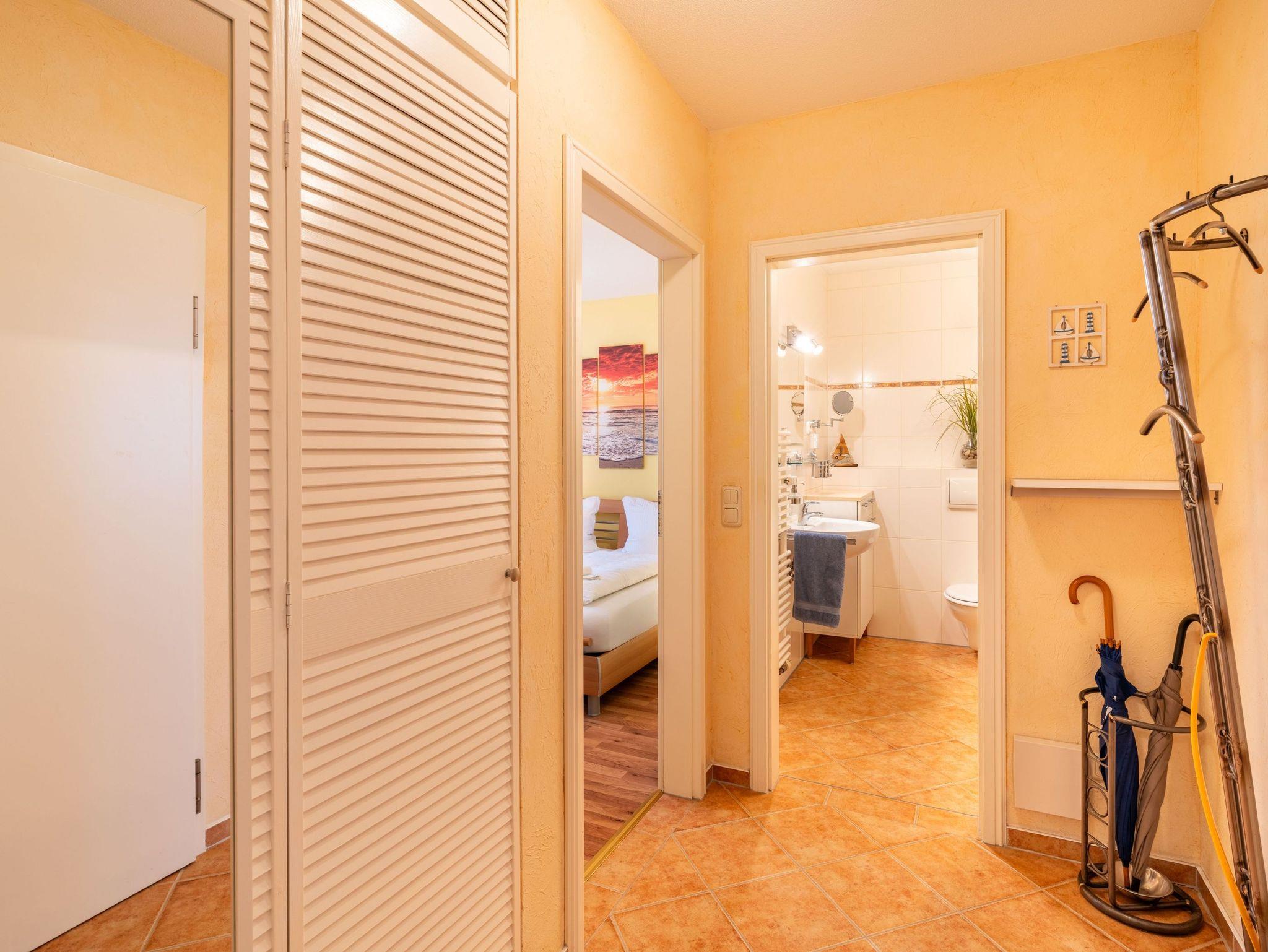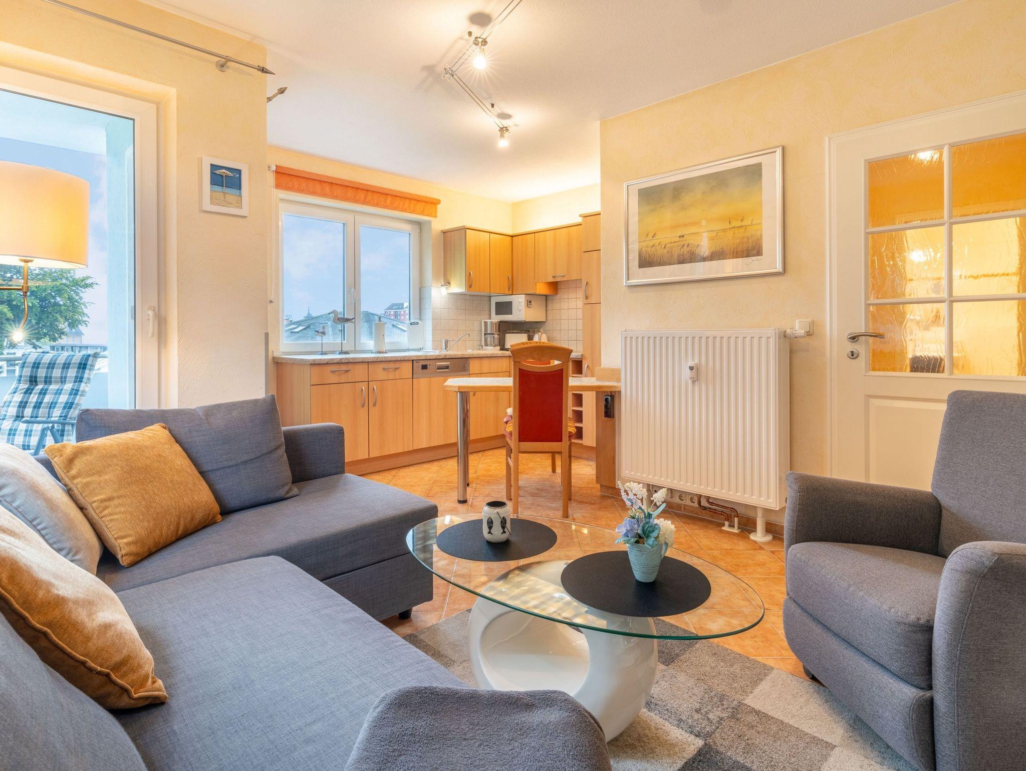In der ersten Etage des charmanten Hauses erwartet Sie die modern und komfortabel eingerichtete Wohnung 5 - der perfekte Rückzugsort für erholsame Urlaubstage zu jeder Zeit des Jahres. Der großzügige Wohnbereich lädt zum Entspannen ein und ist mit einer bequemen Couch ausgestattet, die auch als Schlafmöglichkeit für eine weitere Person dient, einem gemütlichen Sessel sowie einem Flachbild-TV und Musikanlage mit USB-Anschluss für unterhaltsame Abende. Die angrenzende Küchenzeile lässt keine Wünsche offen: hier finden Sie ein Ceranfeld, Backofen, Spülmaschine, Mikrowelle, Wasserkocher, Kaffeemaschine sowie Toaster - ideal für kulinarische Entfaltung. Genießen Sie Ihren Morgenkaffee oder lassen Sie den erlebnisreichen Tag auf dem Balkon bei einem Glas Wein in der warmen Abendsonne ausklingen - ein Ort der Entspannung. Das Schlafzimmer bietet Ihnen ein komfortables Doppelbett mit verstellbarem Lattenrost und darüber hinaus genügend Stauraum in einem praktischen Kleiderschrank. Das moderne Badezimmer ist mit einer Dusche mit Sitzmöglichkeit und einem WC ausgestattet. Für laue Sommertage steht Ihnen in der Nähe der Seebrücke ein kostenloser Strandkorb zur Verfügung und das Haus verfügt über einen Fahrstuhl. Für Fahrradliebhaber gibt es im Keller Unterstellmöglichkeiten sowie einen Wäschetrockenraum. Ein eigener Parkplatz befindet sich nur 100 Meter entfernt. Selbstverständlich bieten wir kostenloses WLAN, sodass Sie Ihre schönsten Urlaubserlebnisse jederzeit mit Familie und Freunden teilen können.