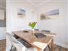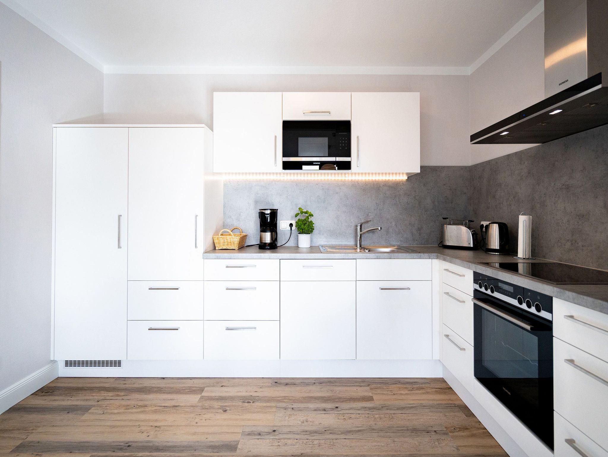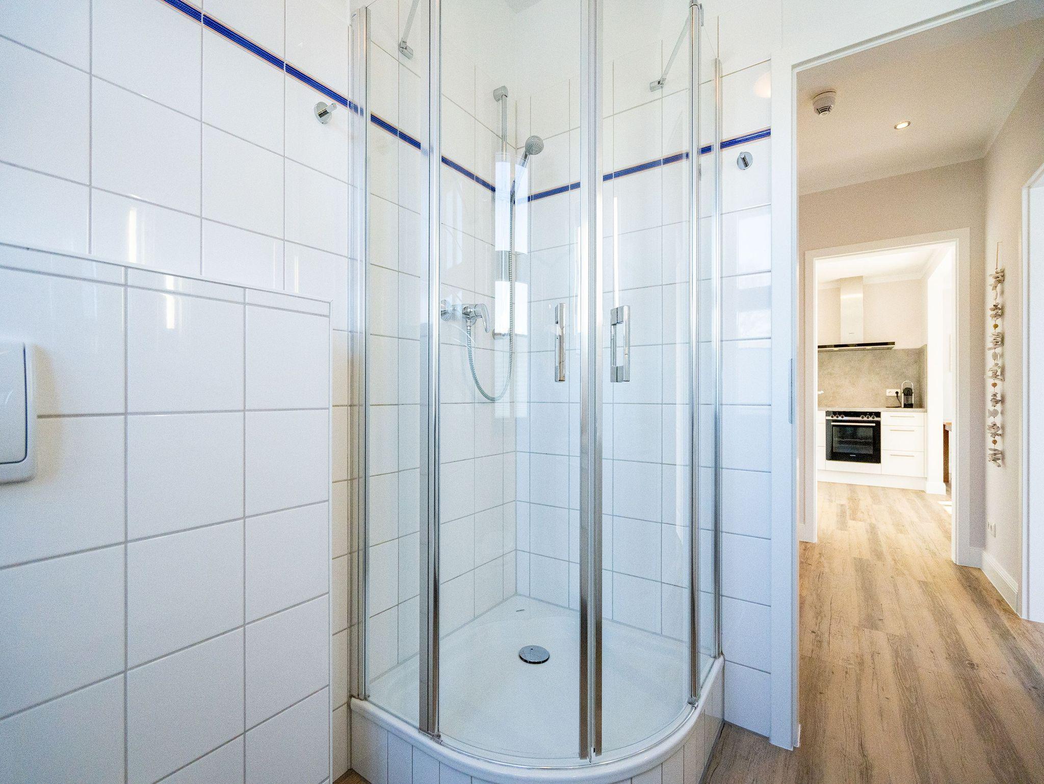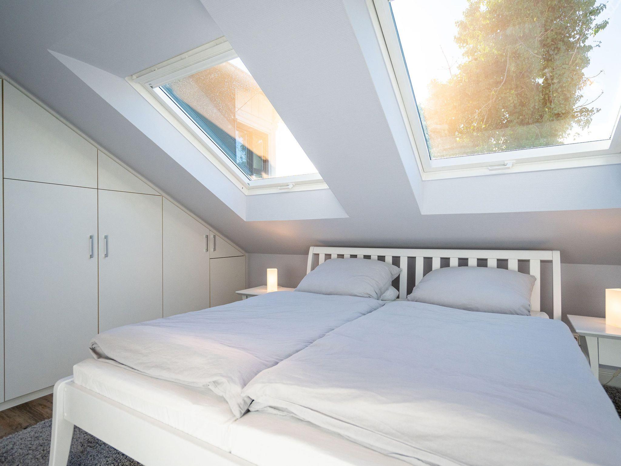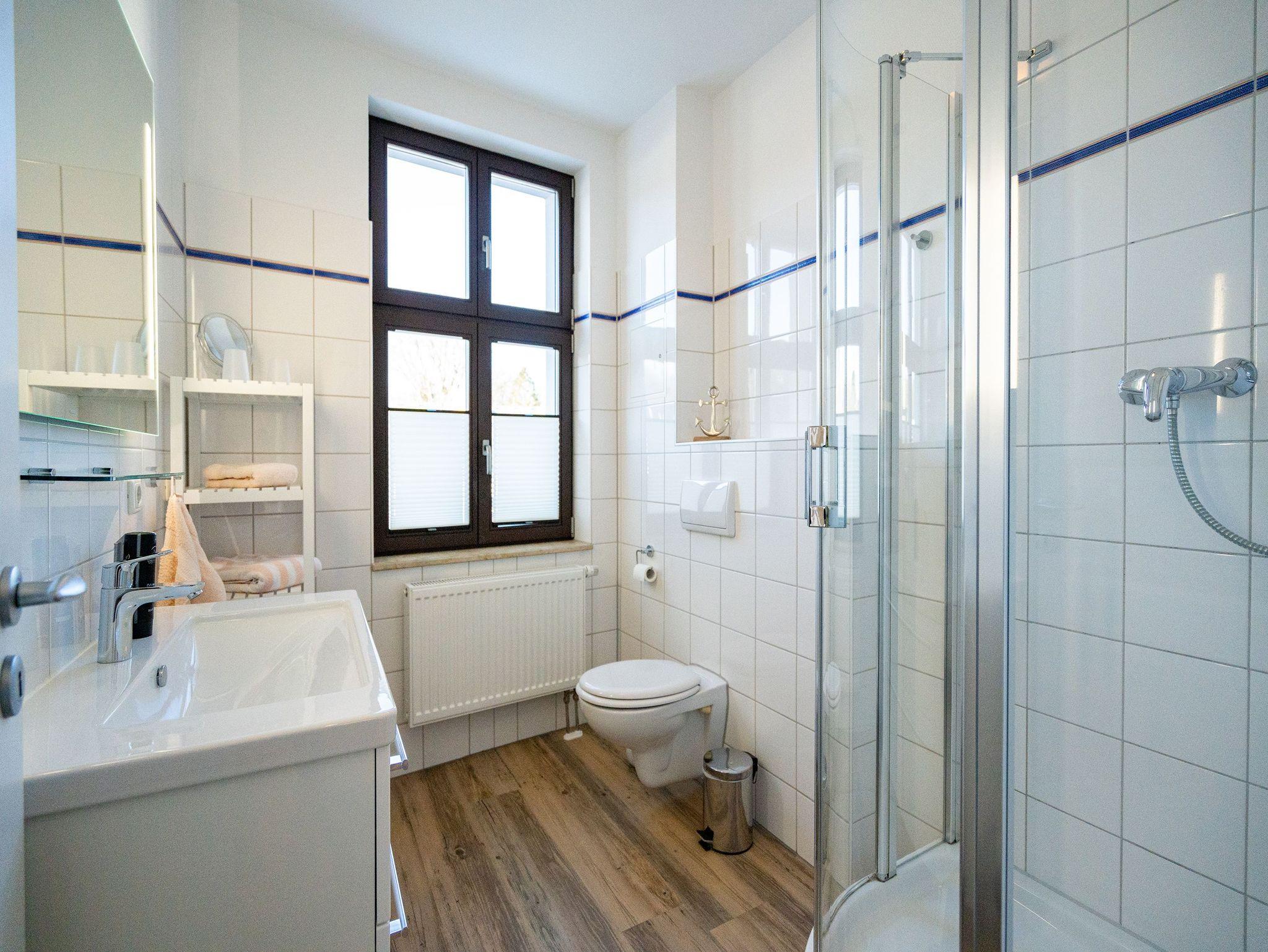 Die helle, lichtdurchflutete 2-Raum-Ferienwohnung (58 qm max. 4 Personen) empfängt Sie in der 2. Etage des Hauses. Für Ihren Komfort ist es komplett ausgestattet und verfügt über einen großzügigen Wohnbereich mit Flat-TV, Radio mit Bluetooth-Box sowie integrierter Küchenzeile und separatem Essplatz. Das Schlafzimmer bietet Platz für 2 Personen und verfügt über ein Doppelbett, für die 3. und 4. Person bietet die Couch mit Schlaffunktion im Wohnzimmer Platz. Ergänzt wird die Wohnung durch ein Bad mit Dusche und WC. Auf Wunsch stellen wir für unsere kleinen Gäste ein Kinderreisebett (ohne zusätzliche Matratze [&] Bettzeug) und einen Kinderhochstuhl ( gegen einen Aufpreis) zur Verfügung. Für Ihren Komfort sind die Betten bei der Anreise bezogen und Handtücher liegen bereit (Erstausstattung). Am Haus kann ein kleiner Gartenanteil mit Terrasse und Strandkorb genutzt werden. Für den Tag am Meer steht Ihnen als besonderes Bonbon von Mitte Mai bis Ende September (je nach Witterung) ein Strandkorb am Strand kostenlos zur Verfügung. Das WLAN-Netz ist kostenfrei nutzbar.