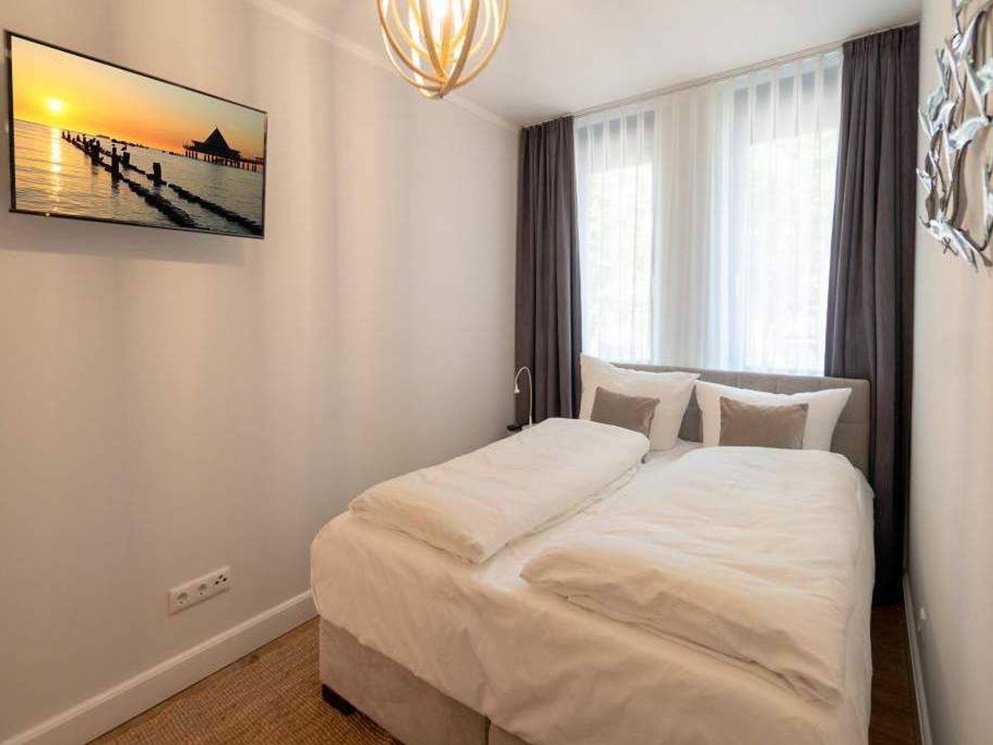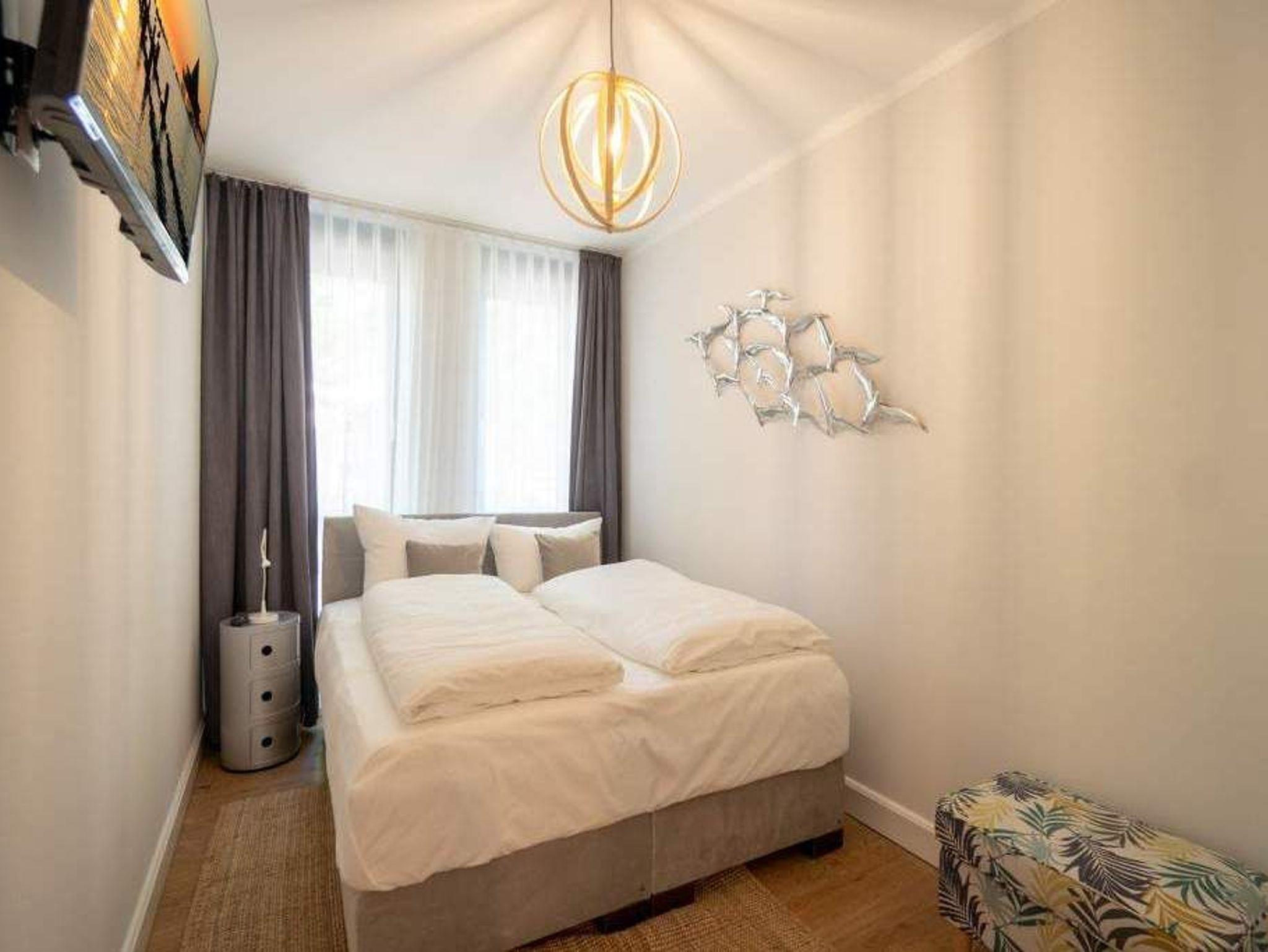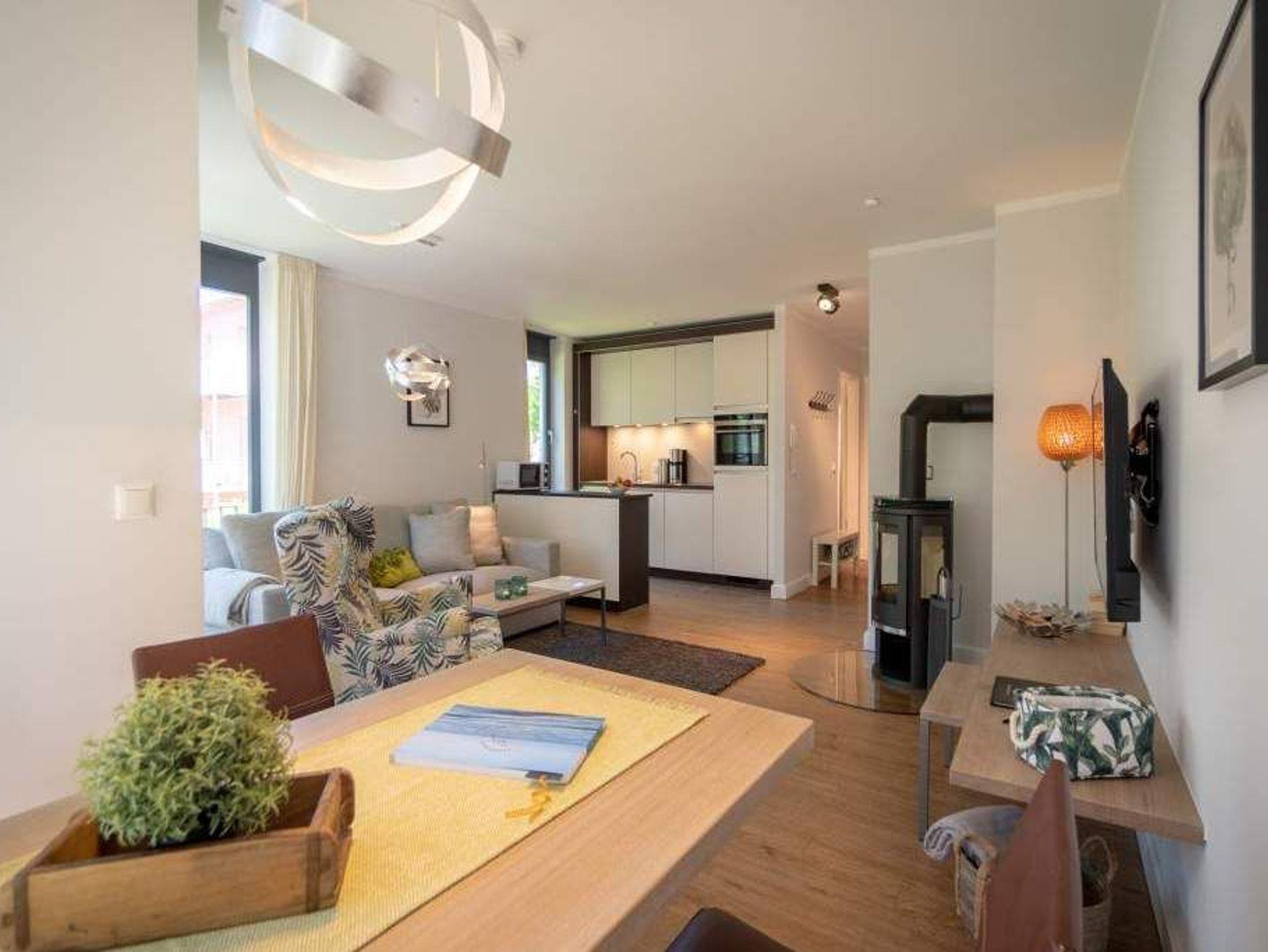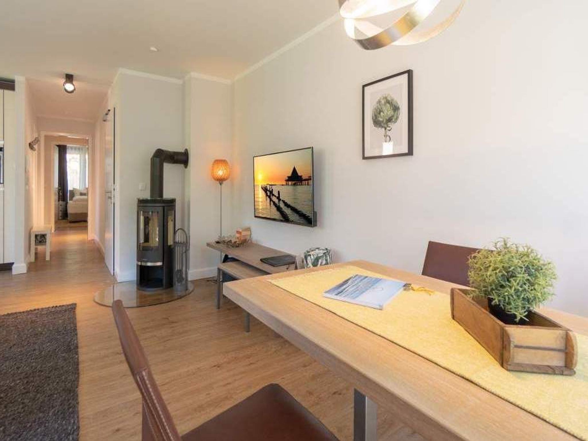 Sommer, Sonne, Strand und Meer... und dazu ein Urlaubsdomizil, das die Auszeit unvergesslich macht. Das Appartement Nummer 1 in der Villa Maxim macht diesen Urlaubstraum wahr. Und zwar nicht nur im Sommer, sondern das ganze Jahr hindurch. In der Hochparterre-Wohnung empfängt Sie auf 70 Quadratmetern Wohnkomfort vom Feinsten ? stylisch und modern und einfach zum Wohlfühlen. Bis ins Detail durchdacht, spürt man an jedem kleinen Accessoires die Liebe zum Innendesign. Die drei Räume sind hell und luftig gestaltet. Florale Muster und natürliche Materialien sorgen für eine besondere Atmosphäre. Ob vor dem urigen Kaminofen oder beim Schauen eines Spielfilms auf dem Flat-TV ? hier können Sie die Hektik des Alltags einmal komplett vergessen. Die schöne Wohnung lädt geradezu dazu ein. Vier Personen plus ein Kleinkind bis drei Jahre (im Kinderreisebett) werden sich hier fühlen wie im Paradies. Die Sitzgruppe im Wohn-Esszimmer bietet reichlich Platz und der in einem kleinen Erker befindliche Essplatz lädt zum gemütlichen Zusammensitzen, Essen und Erzählen ein. Die Küche ist offen und beherbergt alles Notwendige zum Kochen. Kühlschrank, Herd, Mikrowelle, Kaffeemaschine und erlesenes Design-Geschirr ? alles ist da. Ein echtes Highlight ist der lichte Südbalkon vor dem Wohnzimmer. Genießen Sie hier das Bad in der Sonne oder den erfrischenden Sundowner. Auch der erholsame Schlaf gehört zu einem entspannten Urlaub dazu. Diesen finden Sie ganz sicher in einem der beiden Schlafzimmer. Ein Schlafzimmer ist mit einem großen Boxspringdoppelbett (1,80 m x 2,00 m), Flat-TV, geräumigem Kleiderschrank und einem eigenen, kleinen Balkon ausgestattet. Das zweite Schlafzimmer verfügt ebenfalls über ein Boxspringdoppelbett (1,60 m x 2,00 m), einen Flat-TV und einen Kleiderschrank. Auch das Badezimmer bietet ausreichend Raum zum Frischmachen und Wohlfühlen. Das Duschen wird hier zu einem Vergnügen. Denn die ebenerdige Regendusche sorgt für ein Duschgefühl wie unter einem warmen Tropenregenguss. Im Erdgeschoss der Villa gibt es einen eigenen kleinen SPA-Bereich mit zwei Saunen, Dusche und einem Relax Raum mit Flat-TV. Da werden selbst ungemütlich kalte Tage zur wohligen Wellness-Auszeit. Ihnen steht kostenfreies WLAN zur Verfügung und ein Außenstellplatz für Ihren Pkw. Bei Anreise sind die Betten bezogen und Handtücher liegen bereit.