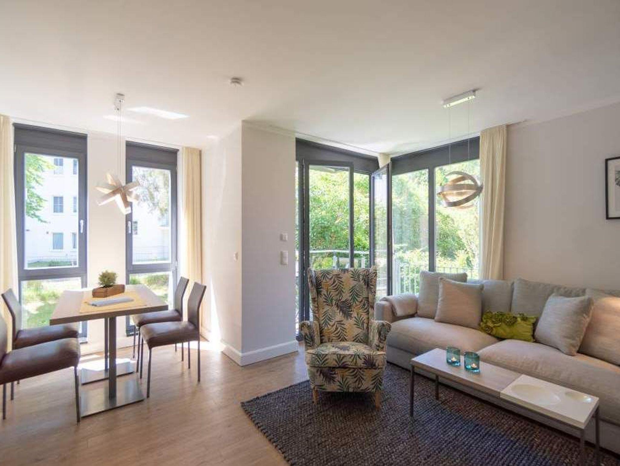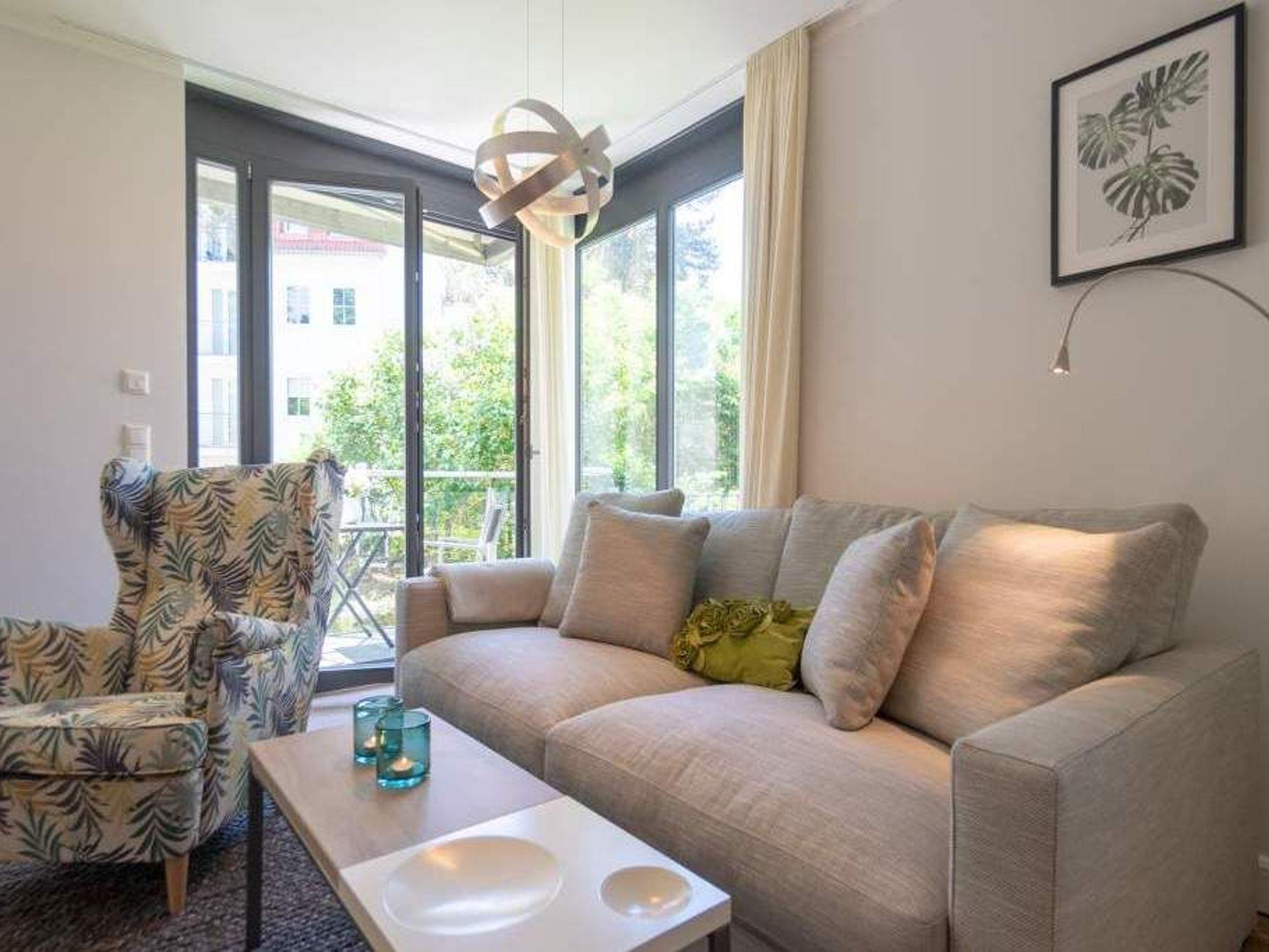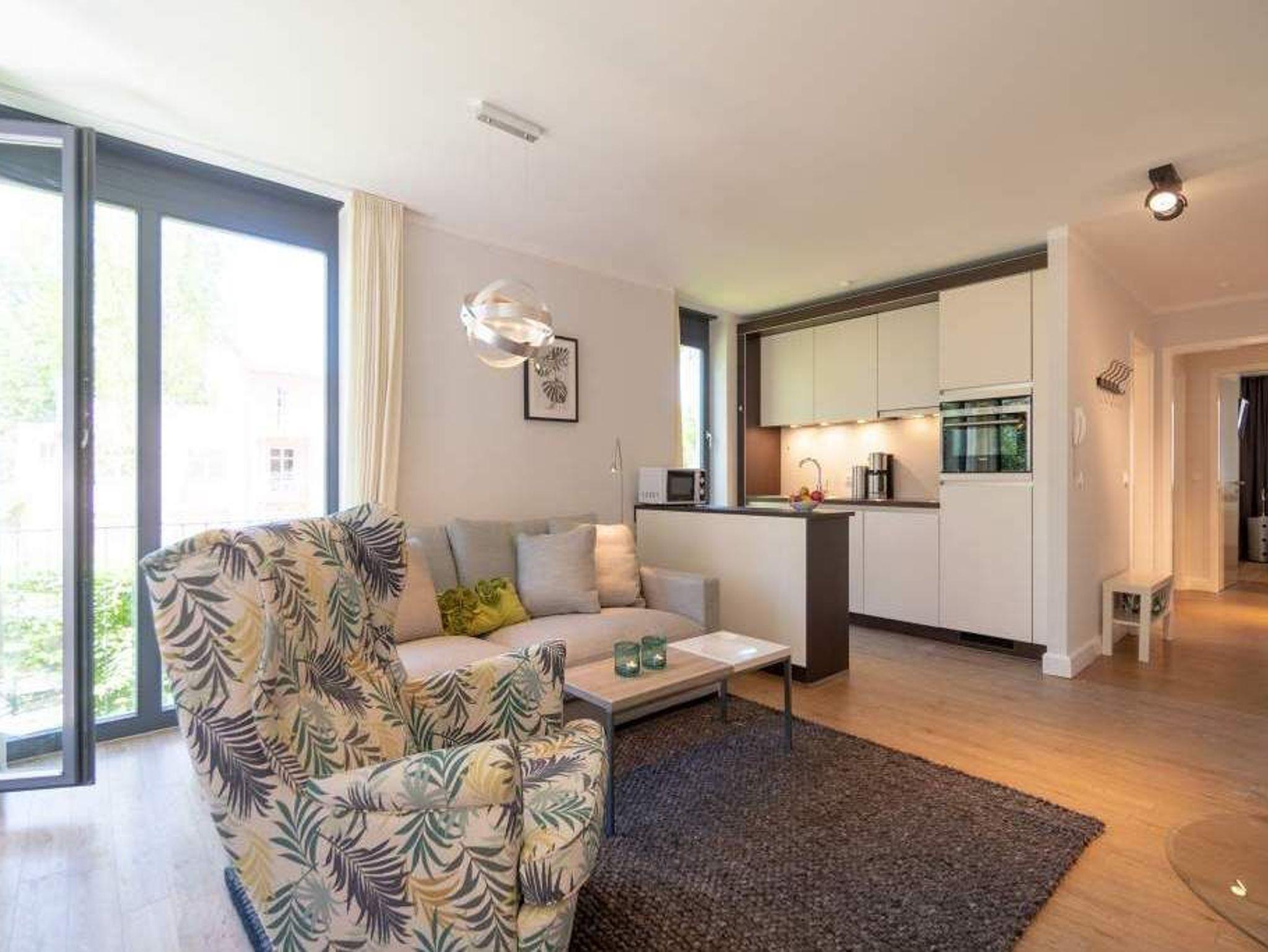 Sommer, Sonne, Strand und Meer... und dazu ein Urlaubsdomizil, das die Auszeit unvergesslich macht. Das Appartement Nummer 1 in der Villa Maxim macht diesen Urlaubstraum wahr. Und zwar nicht nur im Sommer, sondern das ganze Jahr hindurch. In der Hochparterre-Wohnung empfängt Sie auf 70 Quadratmetern Wohnkomfort vom Feinsten ? stylisch und modern und einfach zum Wohlfühlen. Bis ins Detail durchdacht, spürt man an jedem kleinen Accessoires die Liebe zum Innendesign. Die drei Räume sind hell und luftig gestaltet. Florale Muster und natürliche Materialien sorgen für eine besondere Atmosphäre. Ob vor dem urigen Kaminofen oder beim Schauen eines Spielfilms auf dem Flat-TV ? hier können Sie die Hektik des Alltags einmal komplett vergessen. Die schöne Wohnung lädt geradezu dazu ein. Vier Personen plus ein Kleinkind bis drei Jahre (im Kinderreisebett) werden sich hier fühlen wie im Paradies. Die Sitzgruppe im Wohn-Esszimmer bietet reichlich Platz und der in einem kleinen Erker befindliche Essplatz lädt zum gemütlichen Zusammensitzen, Essen und Erzählen ein. Die Küche ist offen und beherbergt alles Notwendige zum Kochen. Kühlschrank, Herd, Mikrowelle, Kaffeemaschine und erlesenes Design-Geschirr ? alles ist da. Ein echtes Highlight ist der lichte Südbalkon vor dem Wohnzimmer. Genießen Sie hier das Bad in der Sonne oder den erfrischenden Sundowner. Auch der erholsame Schlaf gehört zu einem entspannten Urlaub dazu. Diesen finden Sie ganz sicher in einem der beiden Schlafzimmer. Ein Schlafzimmer ist mit einem großen Boxspringdoppelbett (1,80 m x 2,00 m), Flat-TV, geräumigem Kleiderschrank und einem eigenen, kleinen Balkon ausgestattet. Das zweite Schlafzimmer verfügt ebenfalls über ein Boxspringdoppelbett (1,60 m x 2,00 m), einen Flat-TV und einen Kleiderschrank. Auch das Badezimmer bietet ausreichend Raum zum Frischmachen und Wohlfühlen. Das Duschen wird hier zu einem Vergnügen. Denn die ebenerdige Regendusche sorgt für ein Duschgefühl wie unter einem warmen Tropenregenguss. Im Erdgeschoss der Villa gibt es einen eigenen kleinen SPA-Bereich mit zwei Saunen, Dusche und einem Relax Raum mit Flat-TV. Da werden selbst ungemütlich kalte Tage zur wohligen Wellness-Auszeit. Ihnen steht kostenfreies WLAN zur Verfügung und ein Außenstellplatz für Ihren Pkw. Bei Anreise sind die Betten bezogen und Handtücher liegen bereit.