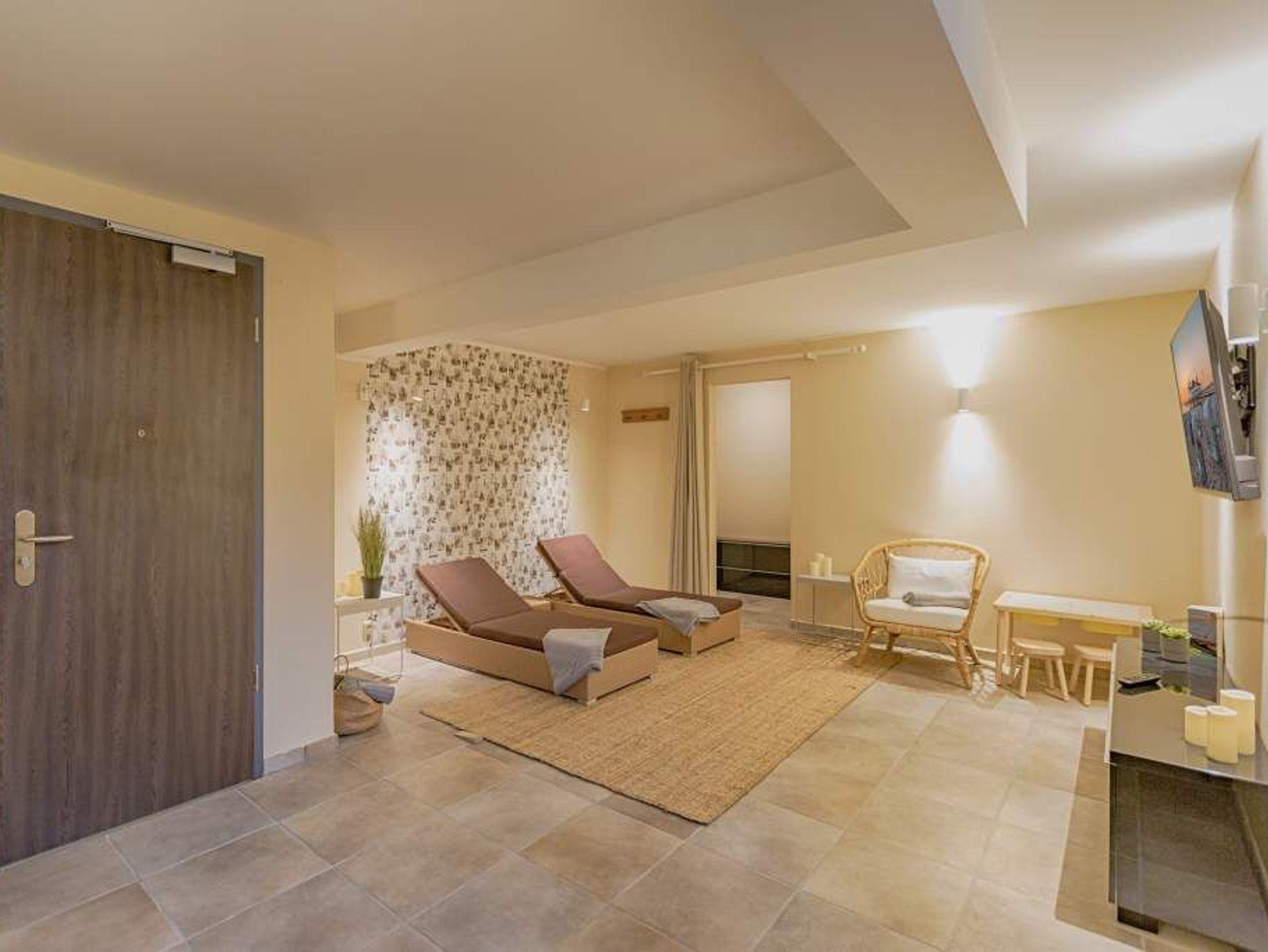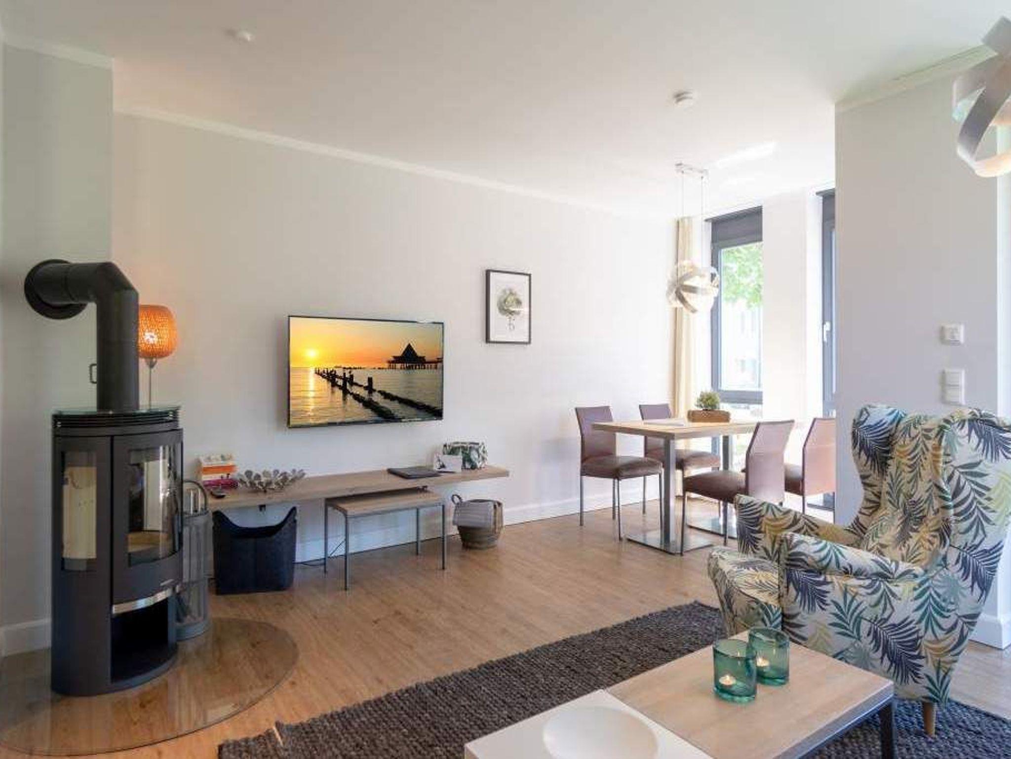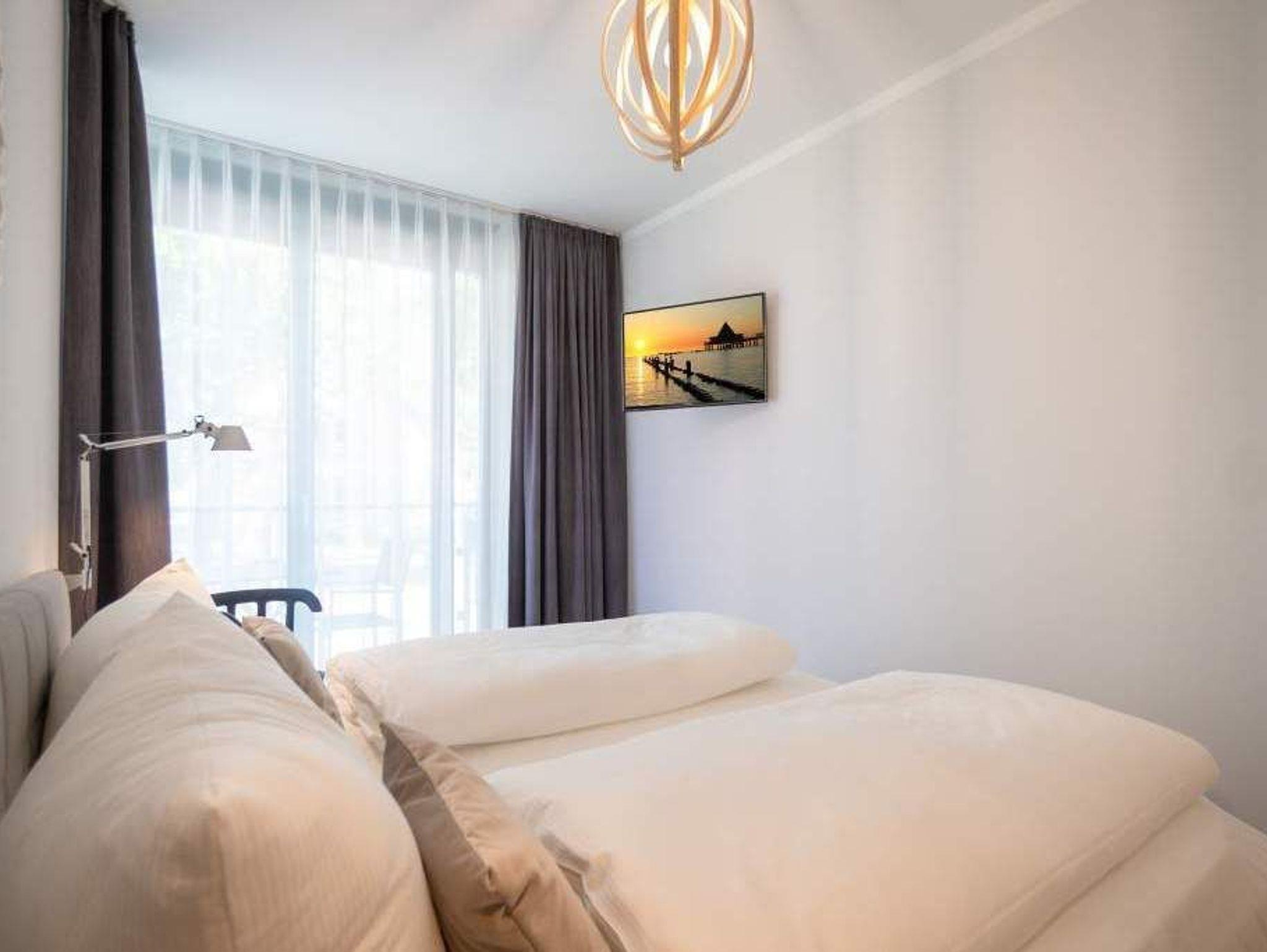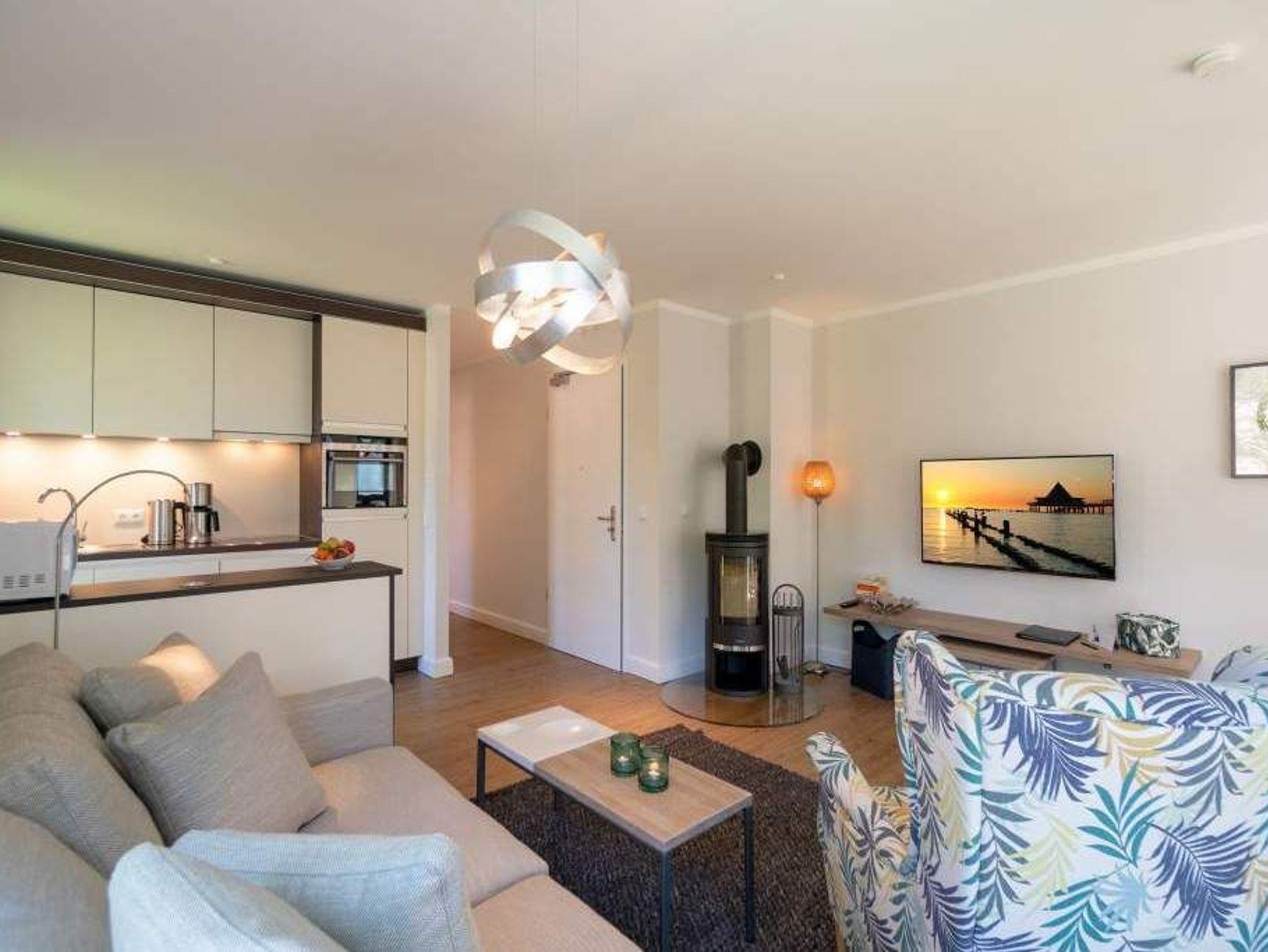 Sommer, Sonne, Strand und Meer... und dazu ein Urlaubsdomizil, das die Auszeit unvergesslich macht. Das Appartement Nummer 1 in der Villa Maxim macht diesen Urlaubstraum wahr. Und zwar nicht nur im Sommer, sondern das ganze Jahr hindurch. In der Hochparterre-Wohnung empfängt Sie auf 70 Quadratmetern Wohnkomfort vom Feinsten ? stylisch und modern und einfach zum Wohlfühlen. Bis ins Detail durchdacht, spürt man an jedem kleinen Accessoires die Liebe zum Innendesign. Die drei Räume sind hell und luftig gestaltet. Florale Muster und natürliche Materialien sorgen für eine besondere Atmosphäre. Ob vor dem urigen Kaminofen oder beim Schauen eines Spielfilms auf dem Flat-TV ? hier können Sie die Hektik des Alltags einmal komplett vergessen. Die schöne Wohnung lädt geradezu dazu ein. Vier Personen plus ein Kleinkind bis drei Jahre (im Kinderreisebett) werden sich hier fühlen wie im Paradies. Die Sitzgruppe im Wohn-Esszimmer bietet reichlich Platz und der in einem kleinen Erker befindliche Essplatz lädt zum gemütlichen Zusammensitzen, Essen und Erzählen ein. Die Küche ist offen und beherbergt alles Notwendige zum Kochen. Kühlschrank, Herd, Mikrowelle, Kaffeemaschine und erlesenes Design-Geschirr ? alles ist da. Ein echtes Highlight ist der lichte Südbalkon vor dem Wohnzimmer. Genießen Sie hier das Bad in der Sonne oder den erfrischenden Sundowner. Auch der erholsame Schlaf gehört zu einem entspannten Urlaub dazu. Diesen finden Sie ganz sicher in einem der beiden Schlafzimmer. Ein Schlafzimmer ist mit einem großen Boxspringdoppelbett (1,80 m x 2,00 m), Flat-TV, geräumigem Kleiderschrank und einem eigenen, kleinen Balkon ausgestattet. Das zweite Schlafzimmer verfügt ebenfalls über ein Boxspringdoppelbett (1,60 m x 2,00 m), einen Flat-TV und einen Kleiderschrank. Auch das Badezimmer bietet ausreichend Raum zum Frischmachen und Wohlfühlen. Das Duschen wird hier zu einem Vergnügen. Denn die ebenerdige Regendusche sorgt für ein Duschgefühl wie unter einem warmen Tropenregenguss. Im Erdgeschoss der Villa gibt es einen eigenen kleinen SPA-Bereich mit zwei Saunen, Dusche und einem Relax Raum mit Flat-TV. Da werden selbst ungemütlich kalte Tage zur wohligen Wellness-Auszeit. Ihnen steht kostenfreies WLAN zur Verfügung und ein Außenstellplatz für Ihren Pkw. Bei Anreise sind die Betten bezogen und Handtücher liegen bereit.