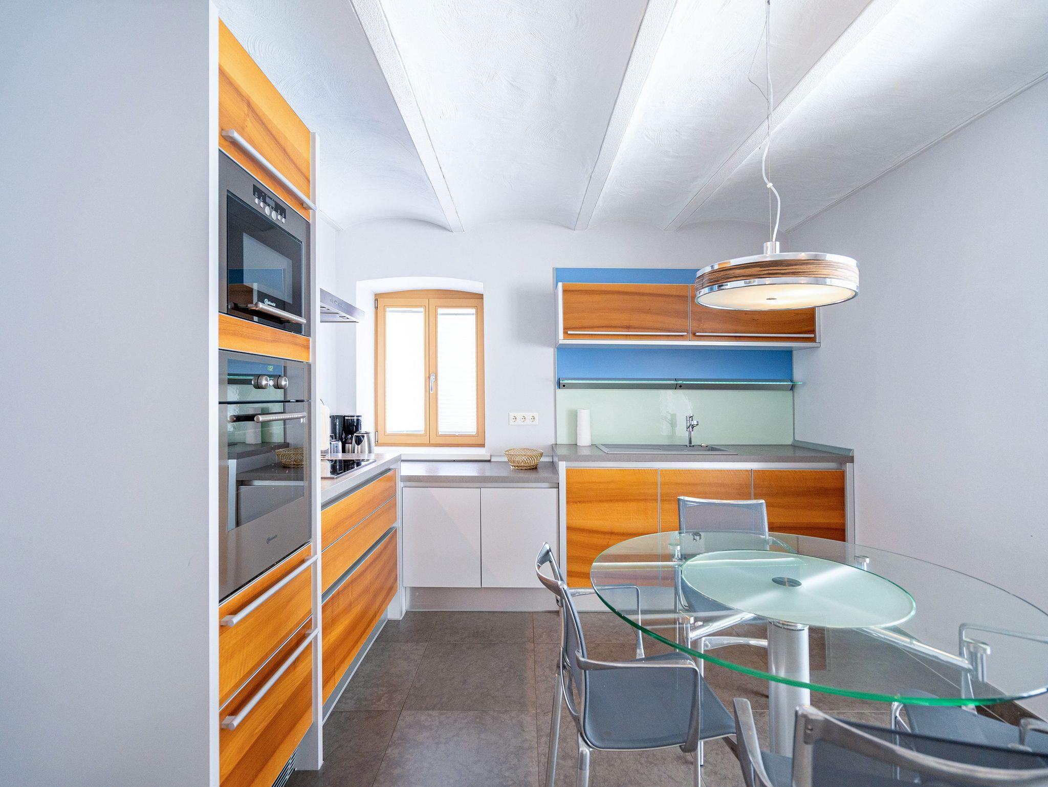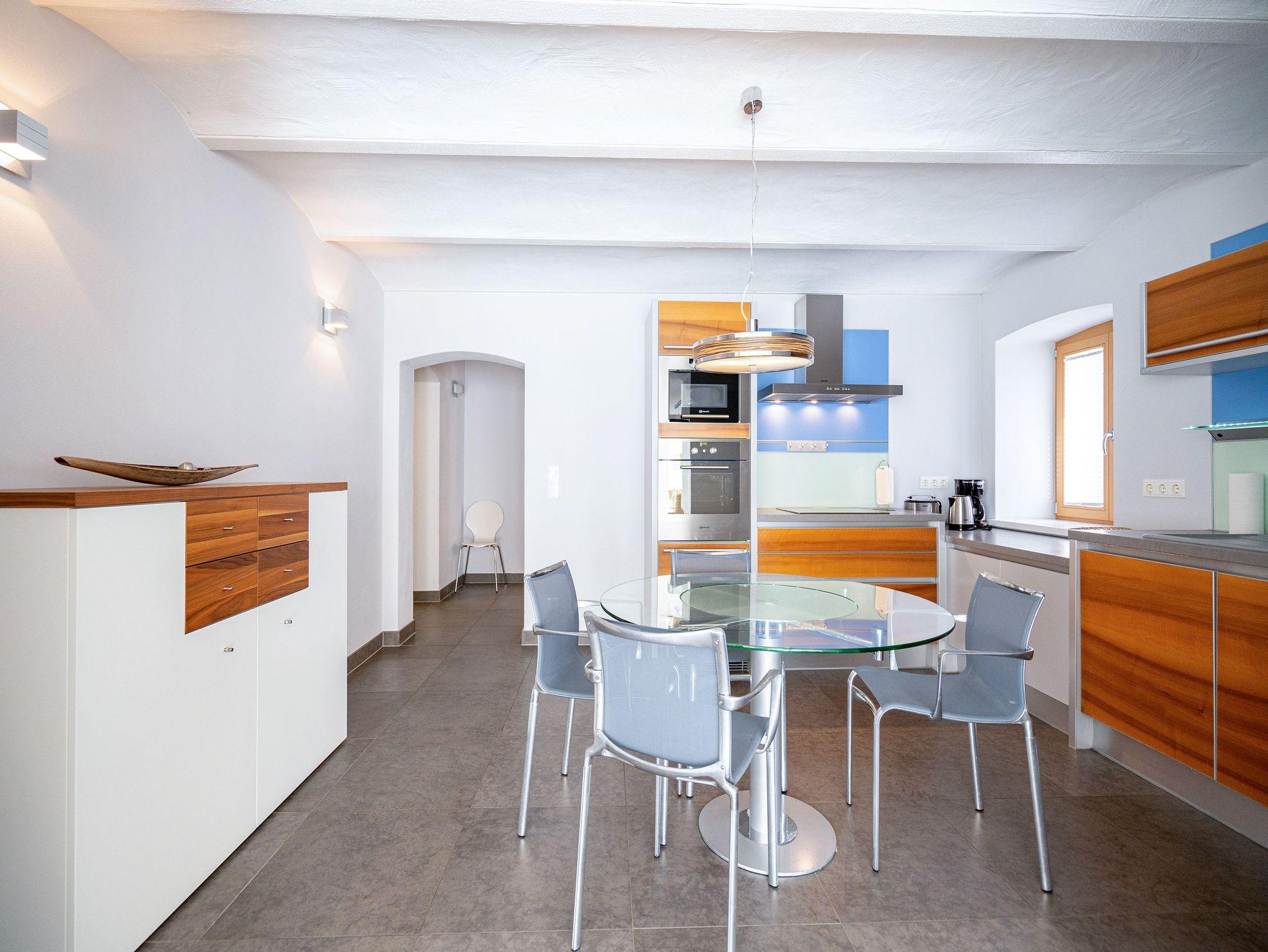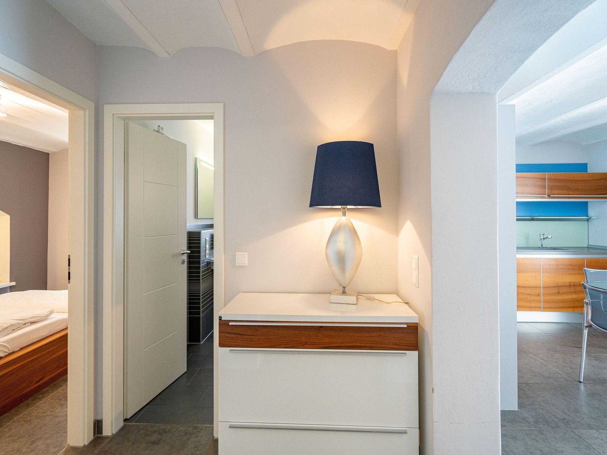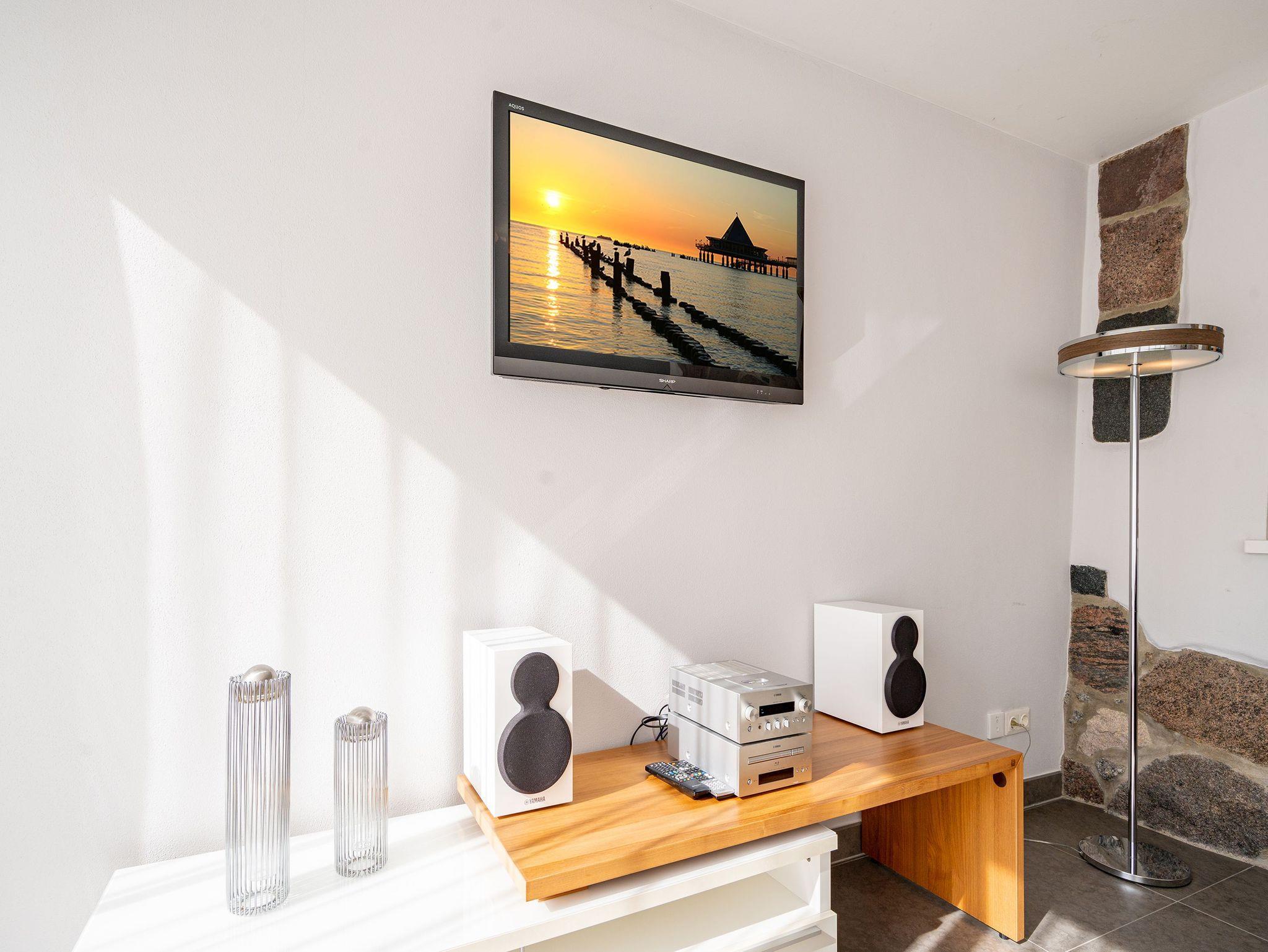 Stylisch durch und durch! DIE STYLISCHE: Graue Feinsteinböden, stilvolle Feldsteinmauer und dazu moderne Möbel, die den Räumen Finesse und Leichtigkeit verleihen. Eine moderne 3-Raum-Ferienwohnung (86 qm) mit zwei Schlafzimmern im Souterrain, perfekt für den Urlaub für 4 Personen und ein Kleinkind (Babyreisebett und Hochstuhl zu buchbar). Der großzügige Wohnbereich mit bequemer Sitzgruppe lädt zum Relaxen ein und die große Ostterrasse ist eine perfekte Verlängerung des Wohnraums. Sicher Ihr Lieblingsplatz im Sommer. Eine moderne, offene Küche lässt keine Wünsche offen. Daneben bietet die Wohnung ein Bad mit Dusche, hier duscht man mit echten Swarovskisteinen. Für Ihren Komfort ist das Appartement mit dem 1. Satz Handtücher ausgestattet und liebevoll bezogen.