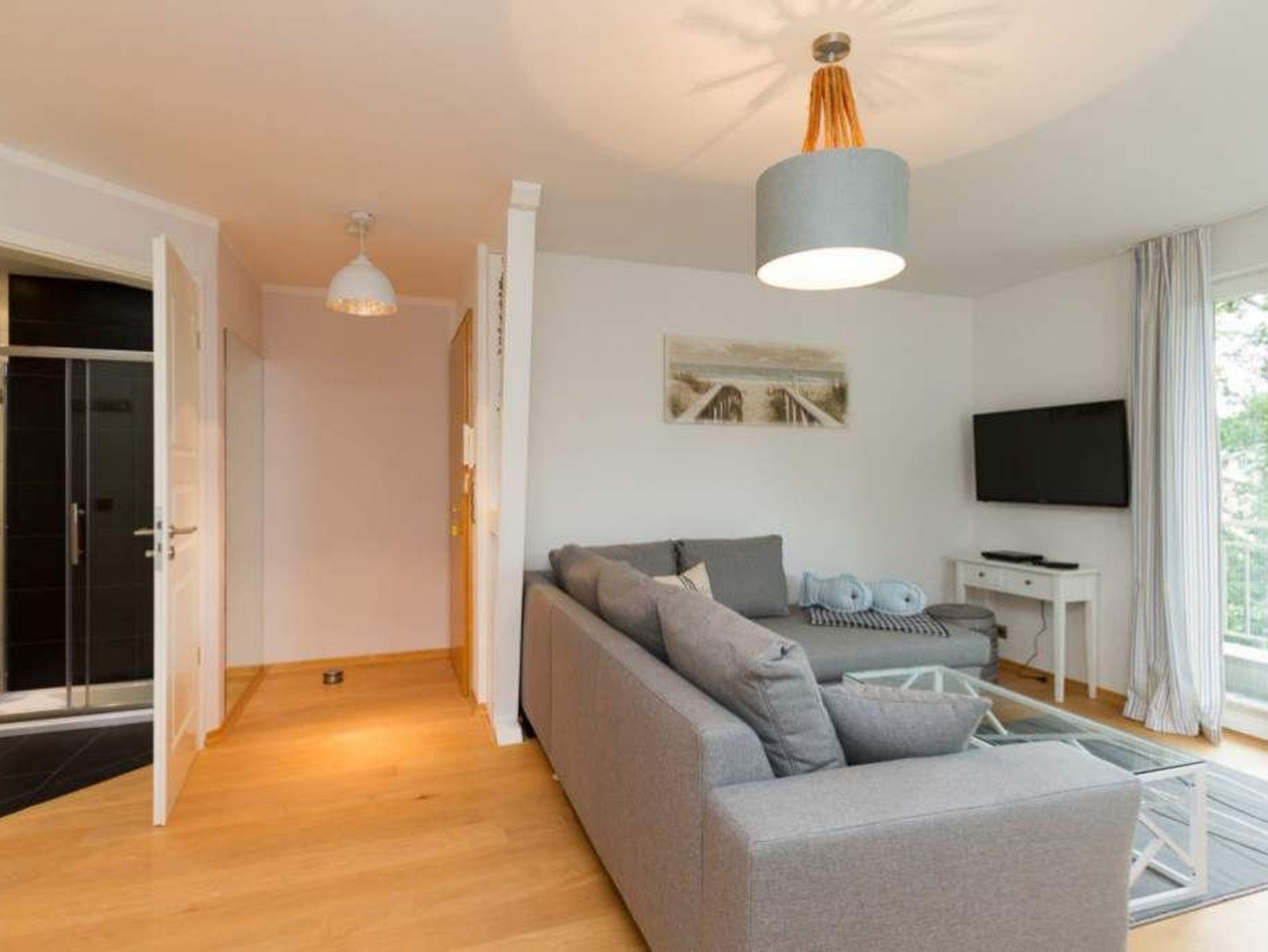 Eine Oase für 2 Personen... Willkommen in der 2-Raum-Ferienwohnung Nr. 09 im Obergeschoss der Villa Barbara. Vom hellen Wohnbereich mit Sitzgruppe [&] Flat-TV haben Sie einen schönen Blick ins Grüne. Angrenzend dazu befinden sich der Essplatz und die offene, voll ausgestattete Küchenzeile. Das gemütliche Schlafzimmer mit Doppelboxspringbett ( 1,80m x 2,00m) lädt zum Träumen ein. Für Ihren Komfort sind die Betten bei der Anreise bezogen und Handtücher liegen bereit (Erstausstattung). Ein Highlight ist der schmale, umliegende Balkon, der von fast allen Räumen begehbar ist. An den kälteren Tagen wärmen Sie sich in der wohnungseigenen Finnischen Sauna (kostenfrei). Das innenliegende Bad ist mit Dusche, WC [&] Lichtkuppel (ist zu öffnen) ausgestattet. Das WLAN-Netz kann kostenfrei genutzt werden. Ein PKW-Stellplatz ( Nr. 09) befindet sich am Haus sowie daneben eine Fahrradunterstellmöglichkeit.