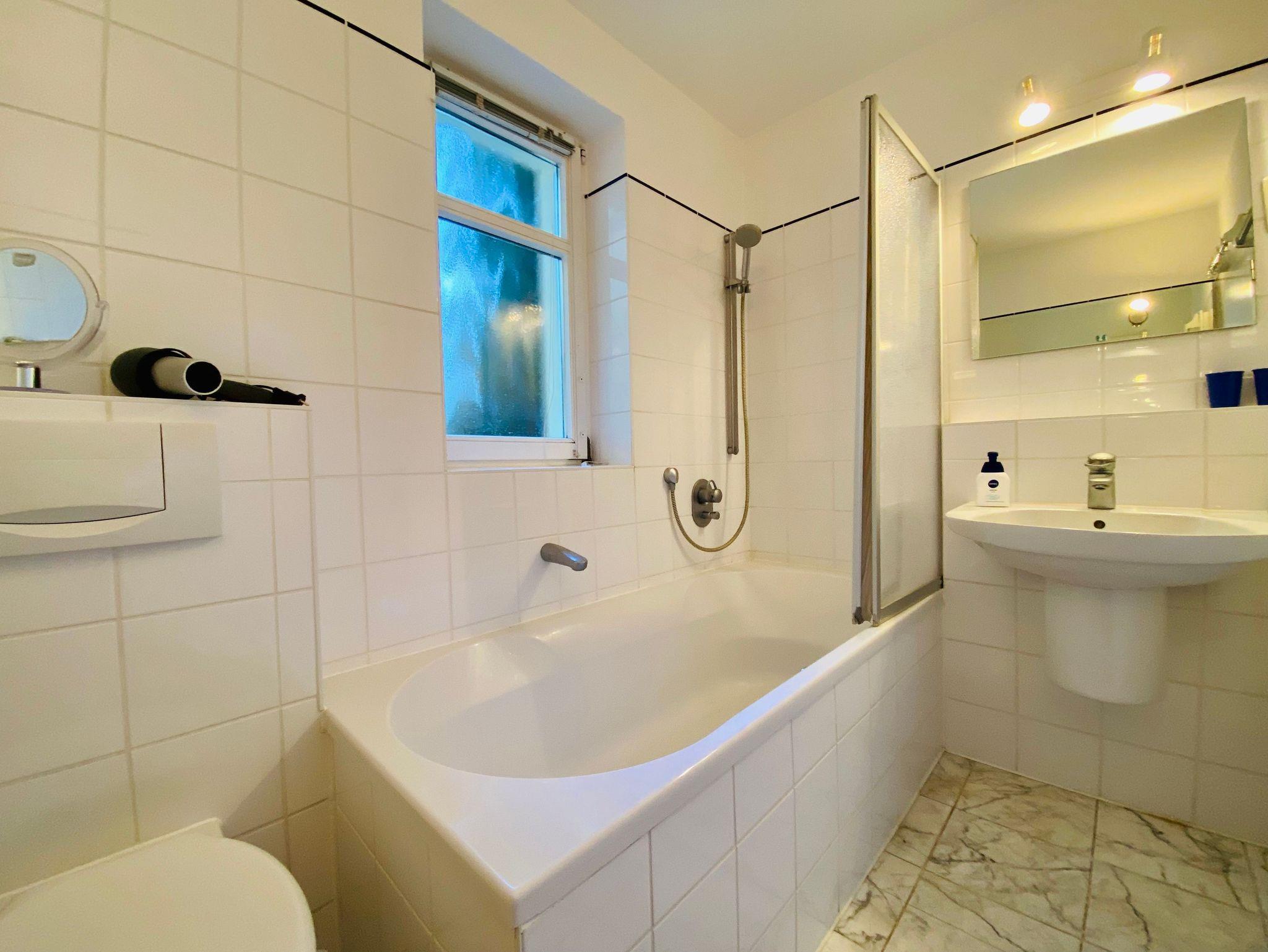Die Ferienwohnung hat ein Schlafzimmer mit Doppelbett und 2 Schlafzimmer mit zwei Einzelbetten und Einzelbett welches bis 160x200m ausziehbar ist Zur Ferienwohnung gehört ein Bad mit Badewanne. Genießen Sie das Leben im Freien auf der Terrasse im Grünen.