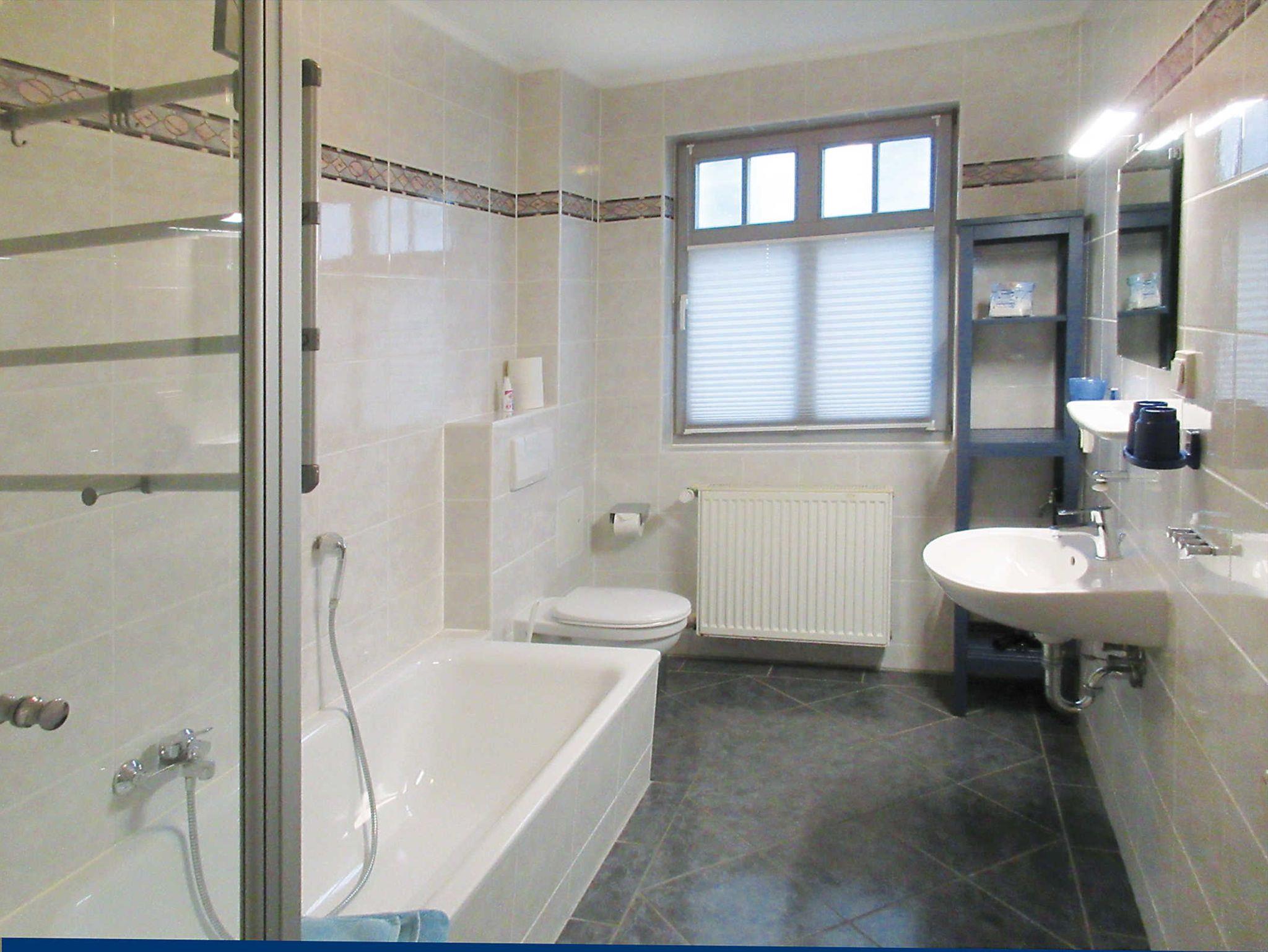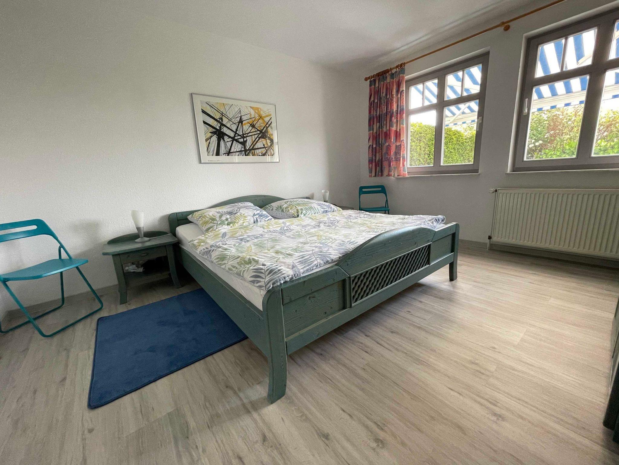 Das großzügig, modern und komfortabel eingerichtete 3-Raum-Appartement im Erdgeschoß mit kompletter, separater Küche (Cerankochfeld, Geschirrspüler, hochwertiges Geschirr, Mikrowelle,Backofen etc.) ist für 4 Personen (Doppelbett im 1. Schlafraum & großes Etagenbett im 2.Schlafraum) sowie für eine weitere Personen (Doppelschlafcouch im Wohnraum) vorgesehen. Im Bad befinden