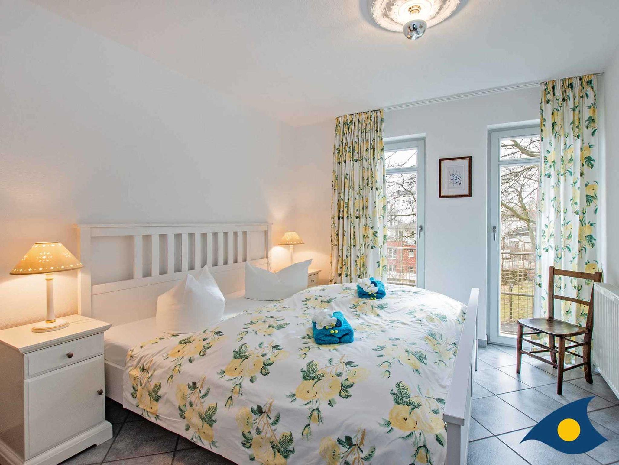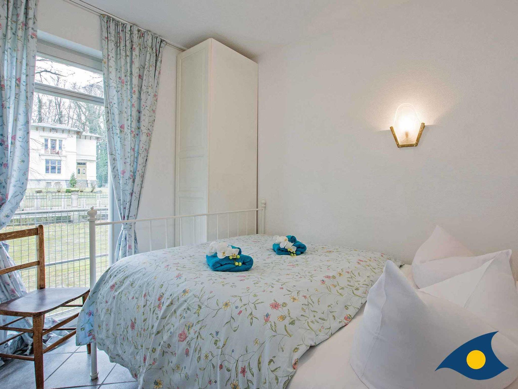Vom Salon gelangen Sie in das kleinere Schlafzimmer mit bodentiefem Fenster und einem gemütlichen Doppelbett (1,40 m x 2,0 m). Im Kleiderschrank findet Ihre Garderobe ausreichend Platz.