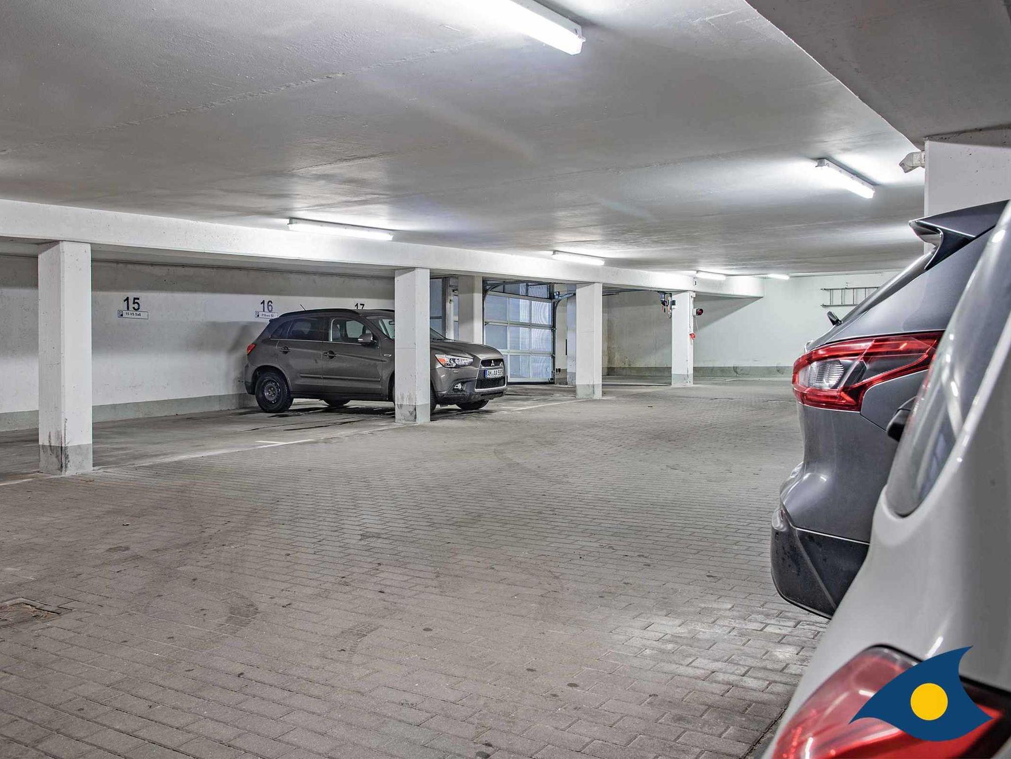 Für Ihr Fahrzeug steht ein PKW-Stellplatz in der Tiefgarage (Einfahrtshöhe ca. 1,93 m) zur Verfügung.