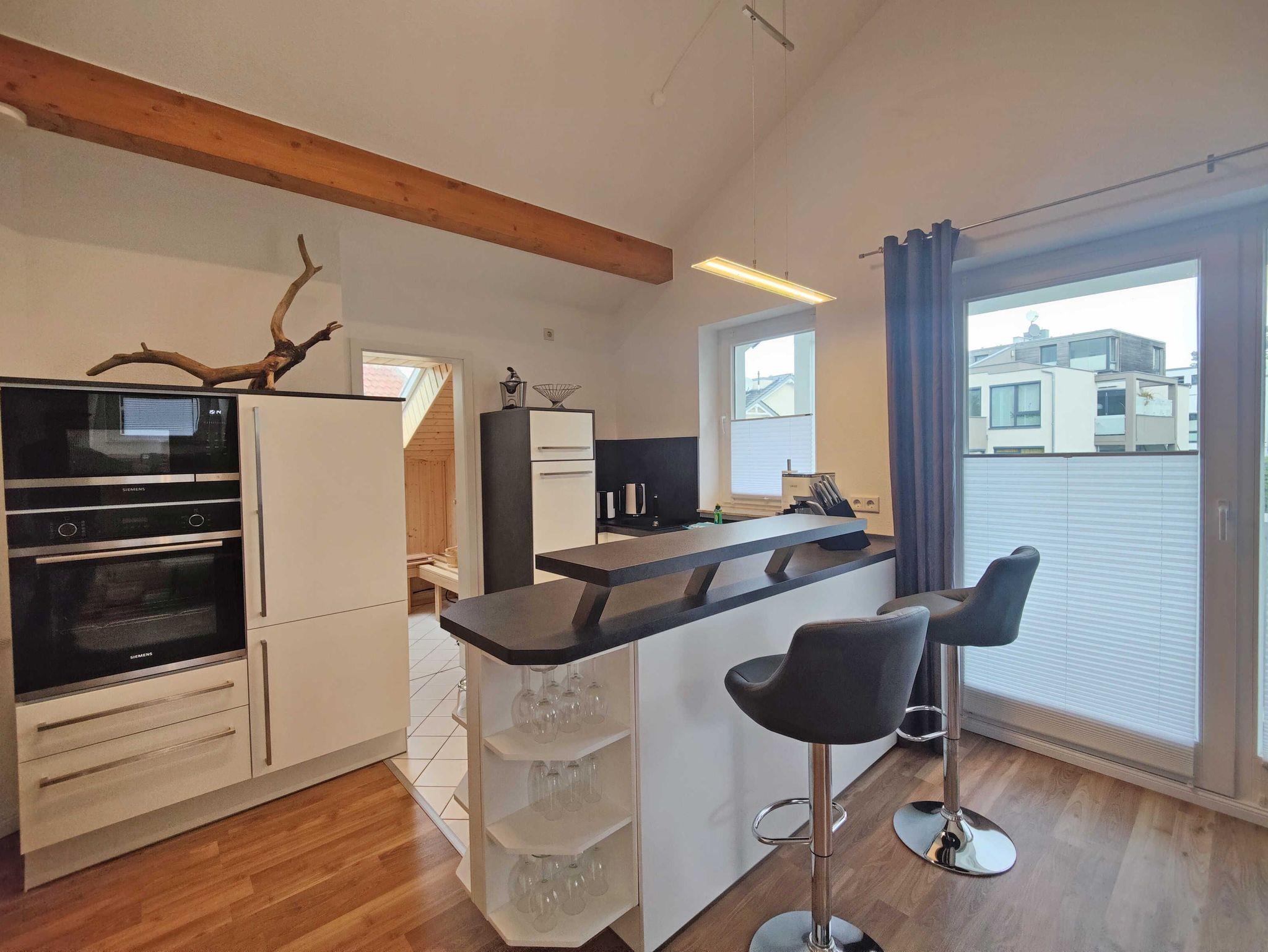 Die im Jahr 2022 frisch renovierte und eingerichtete Zweizimmerwohnung ist 55 m² groß und verfügt über einen Balkon. Das Wohnzimmer ist modern und komfortabel eingerichtet. Die offene Küche lässt keine Wünsche offen. Das Schlafzimmer ist mit einem Doppelbett und einem Doppelstockbett als Aufbettungsmöglichkeit ausgestattet. Besonders für die kalte Jahreszeit glänzt diese Wohnung mit einer eigenen kleinen Sauna im Münzbetrieb. Somit ist die Wohnung der ideale Ausgangspunkt für einen entspannten Urlaub an der Ostsee.