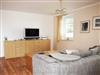 Wohnbereich mit Sofa, Flat-TV und Radio