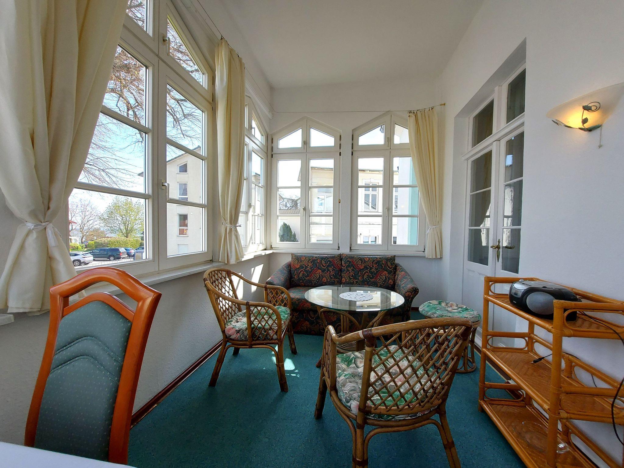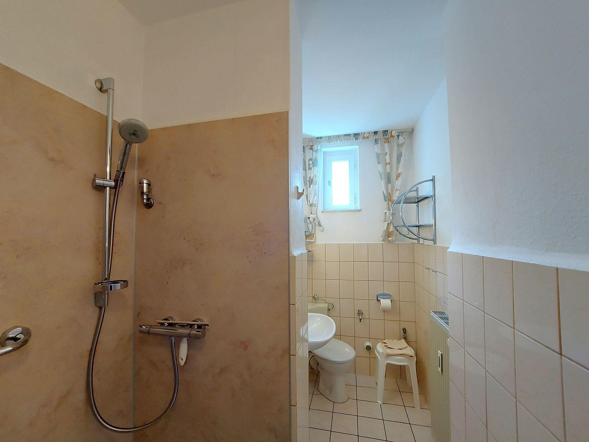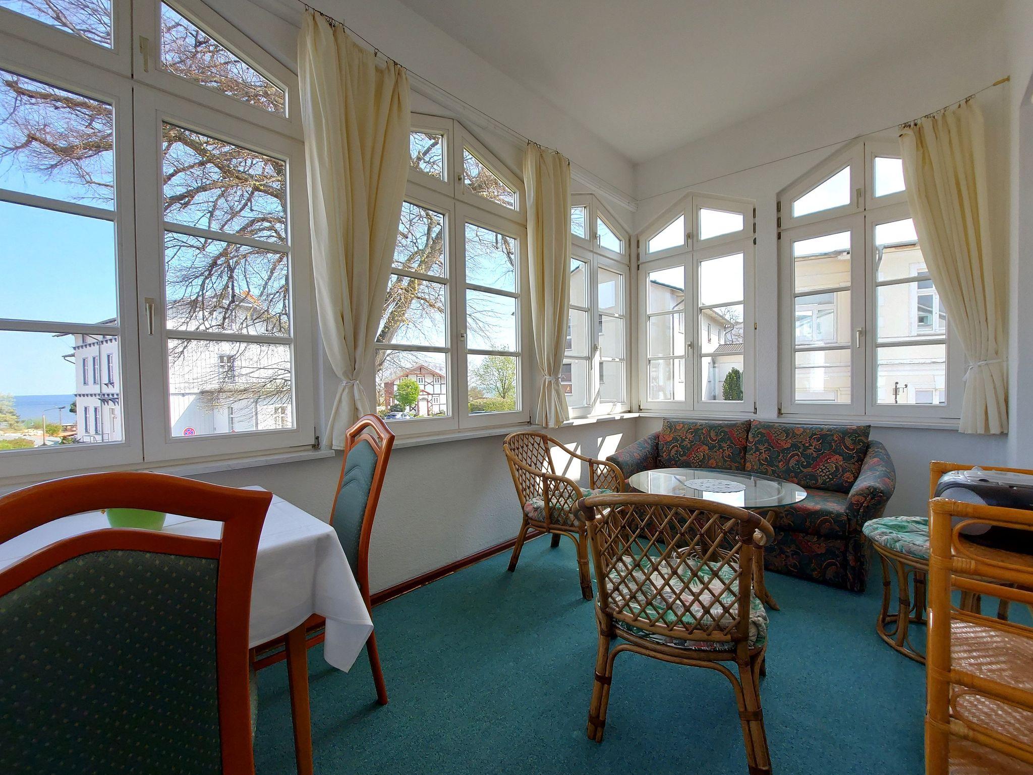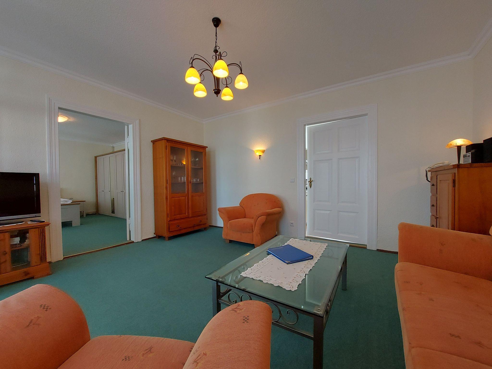 Die Ferienwohnung 7 befindet sich im Obergeschoss des Hauses und verfügt über Meerblick. Sie teilt sich auf in ein Eingangsbereich mit einer Küche, Wohnzimmer, Schlafzimmer und Loggia.. Die Küche ist ausgestattet mit Herd, Backofen, Spülmaschine, Kühlschrank mit Gefriermöglichkeit, Mikrowelle, Kaffeemaschine, Wasserkocher und Toaster. Das Wohnzimmer verfügt über eine gemütliche Couch, Sessel und Flachbildfernseher.