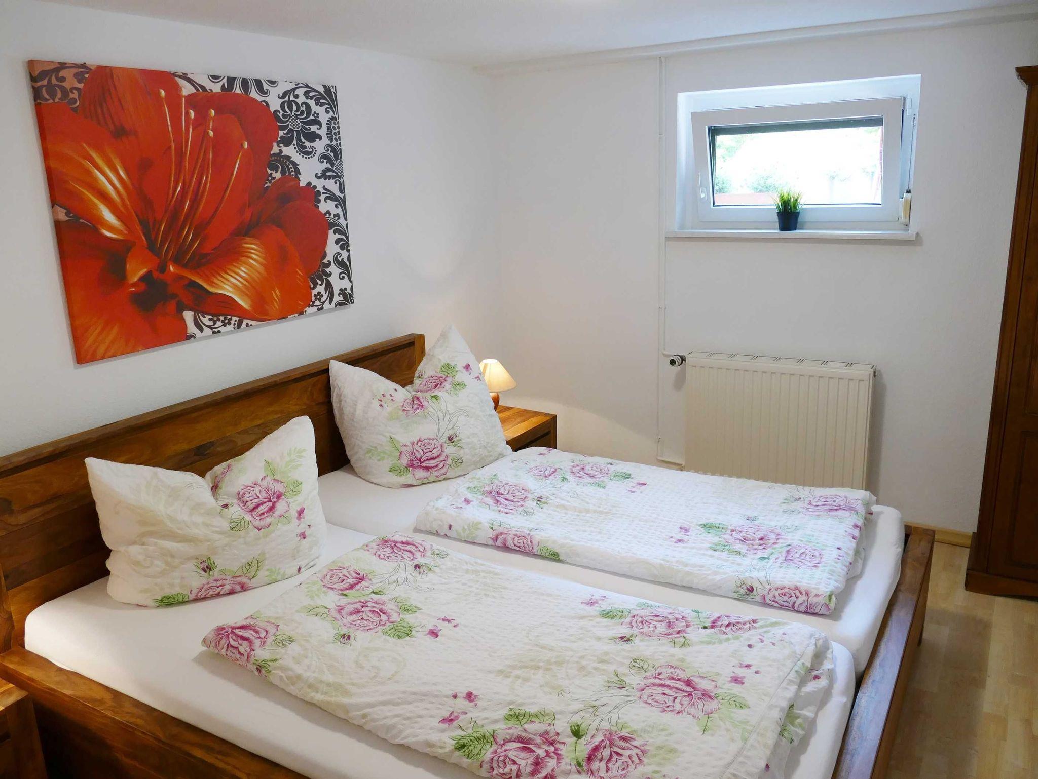 Die 75 qm große Ferienwohnung befindet sich im Souterrain eines Wohnhauses und ist modern und freundlich eingerichtet. Sie verfügt über zwei Schlafzimmer ( ein Schlafzimmer mit Doppelbett und ein Schlafzimmer mit zwei Einzelbetten), ein geräumiges Wohnzimmer mit großer Couchecke und Essplatz, eine separate Küche, ausgestattet mit 2-Platten-Herd, Kühlschrank, Kaffeemaschine, Toaster, Wasserkocher sowie ein modernes Bad mit Dusche und WC.