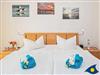 Über eine interne Treppe erreichen Sie das Schlafzimmer und das Bad. Im Schlafzimmer befindet sich ein zweiter Fernseher und im Bad ist für Sie außer einer begehbaren Dusche, WC und Waschbecken auch eine Waschmaschine aufgestellt. Im Wohnzimmer können Sie die Couch zu einem bequemen Doppelbett für die 3. und 4. Person umbauen.