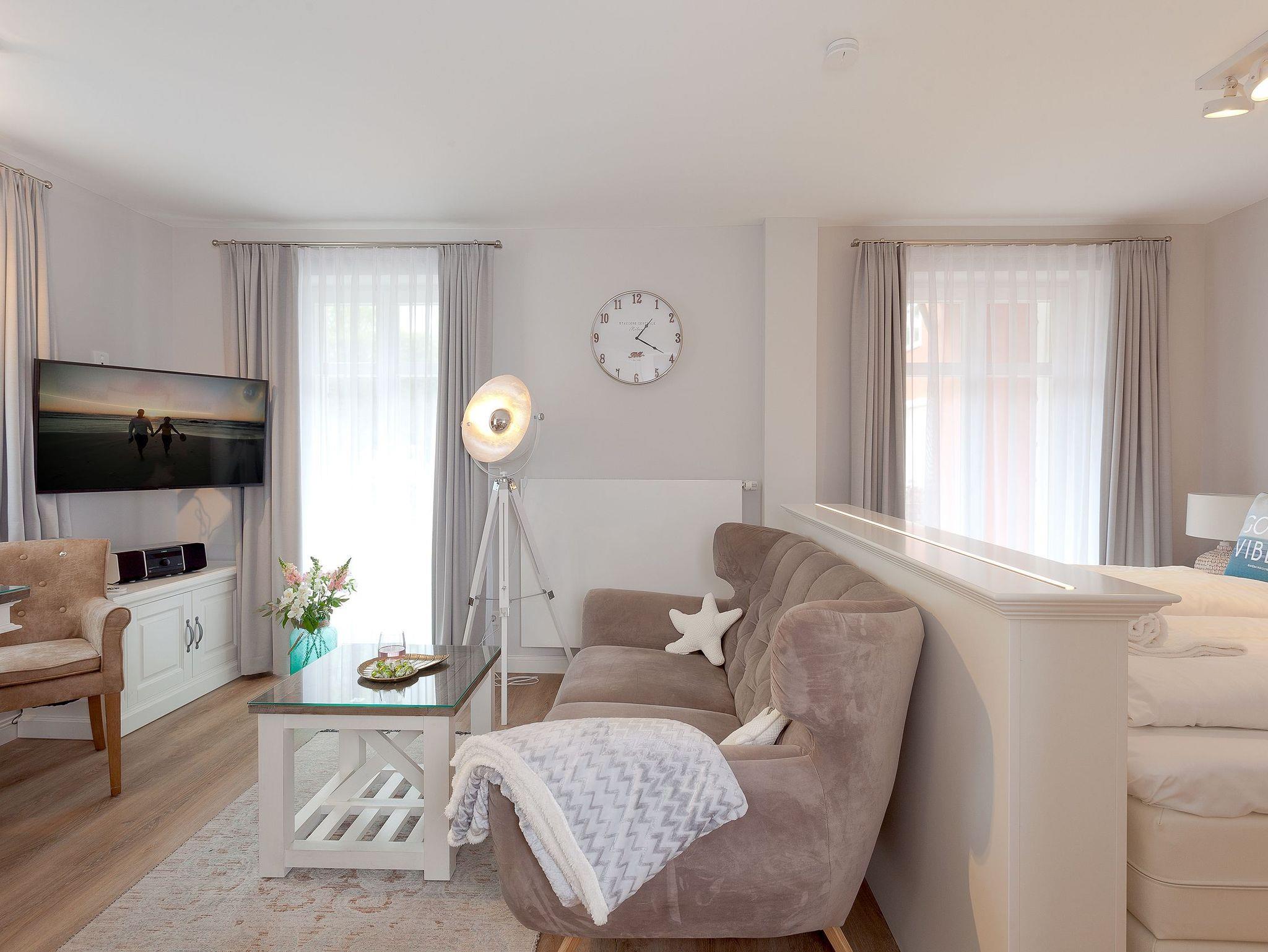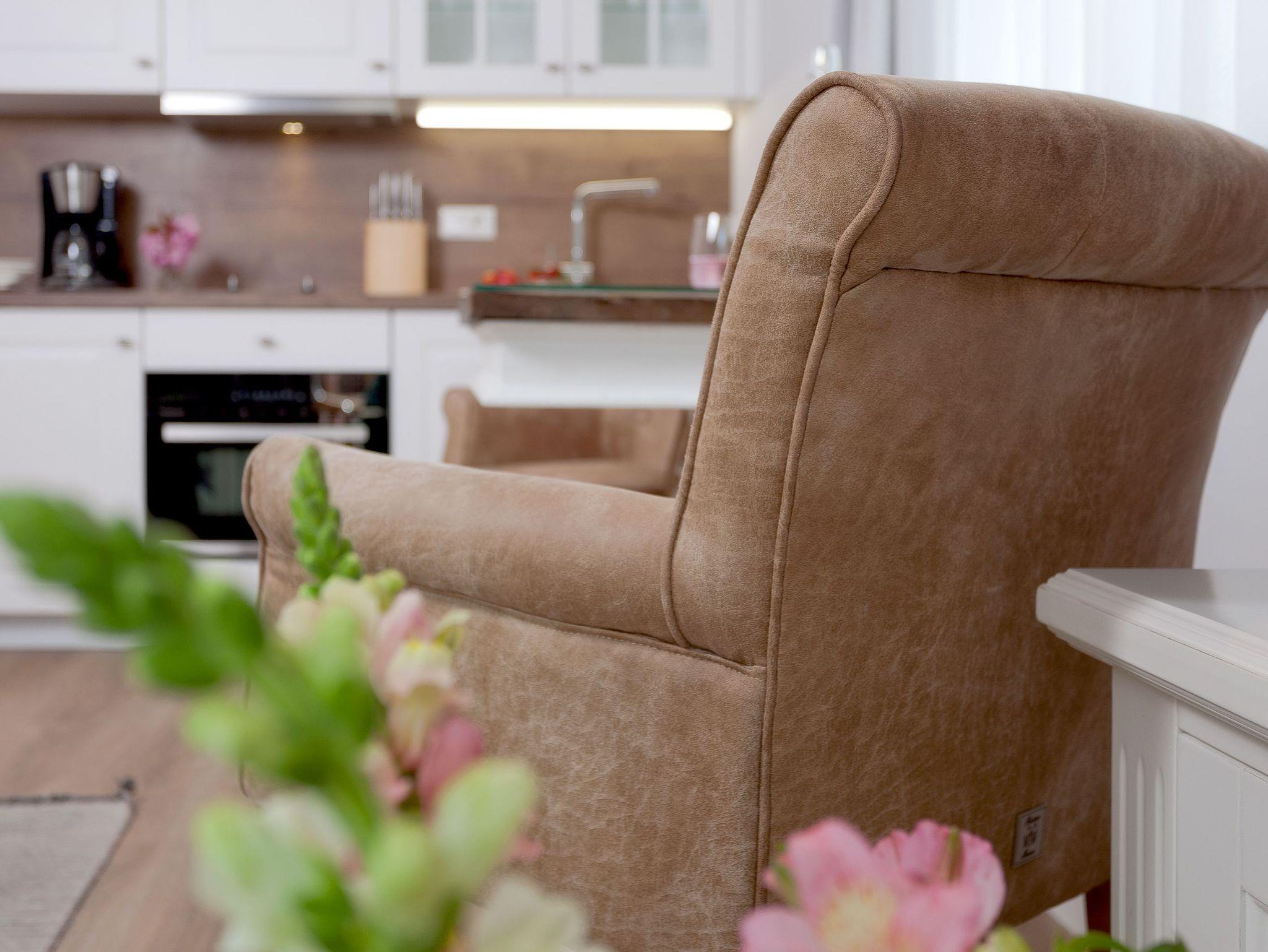 Unser Appartement 3 im Erdgeschoss ist mit ca. 37 qm perfekt für 2 Personen geeignet. Es verfügt über eine integrierte, vollausgestattete Küchenzeile mit einem 2 Platten Cerankochfeld, Kühlschrank mit Gefrierfach, Backofen mit integrierter Mikrowelle, Geschirrspülmaschine, Kaffeemaschine, Wasserkocher und Toaster. Lassen Sie Ihren erlebnisreichen Tag entspannt auf dem gemütlichen Sofa Revue passieren oder genießen