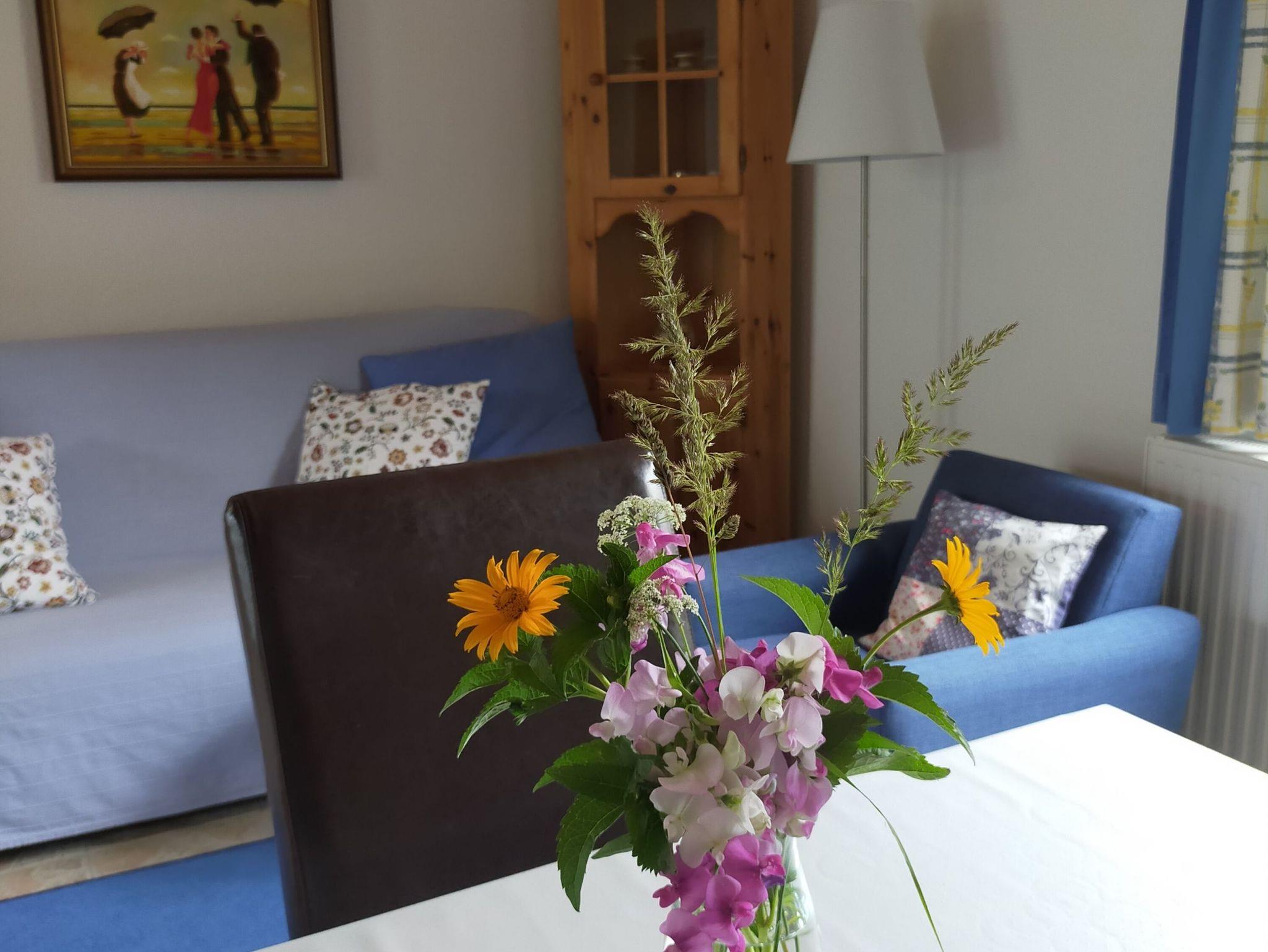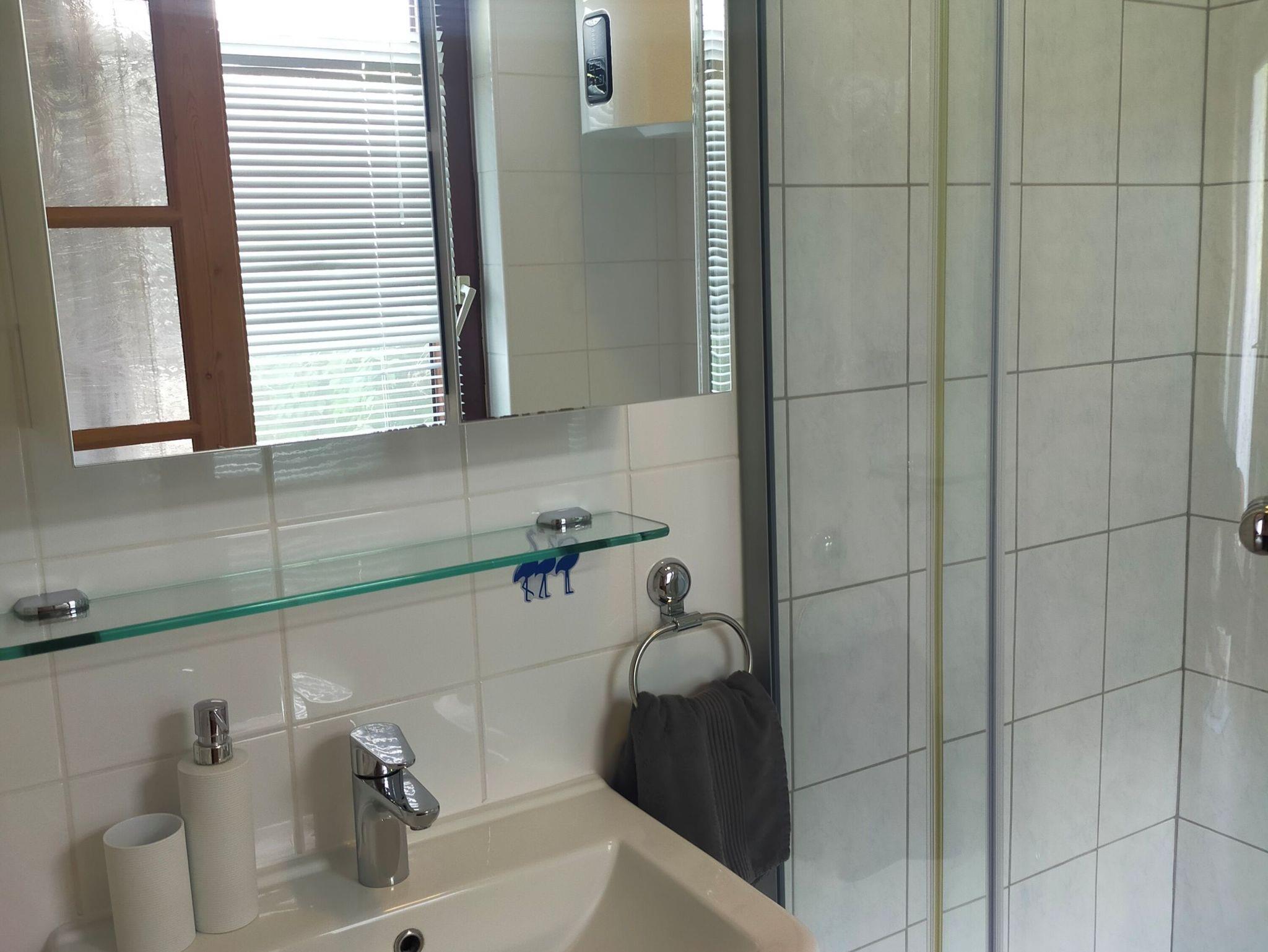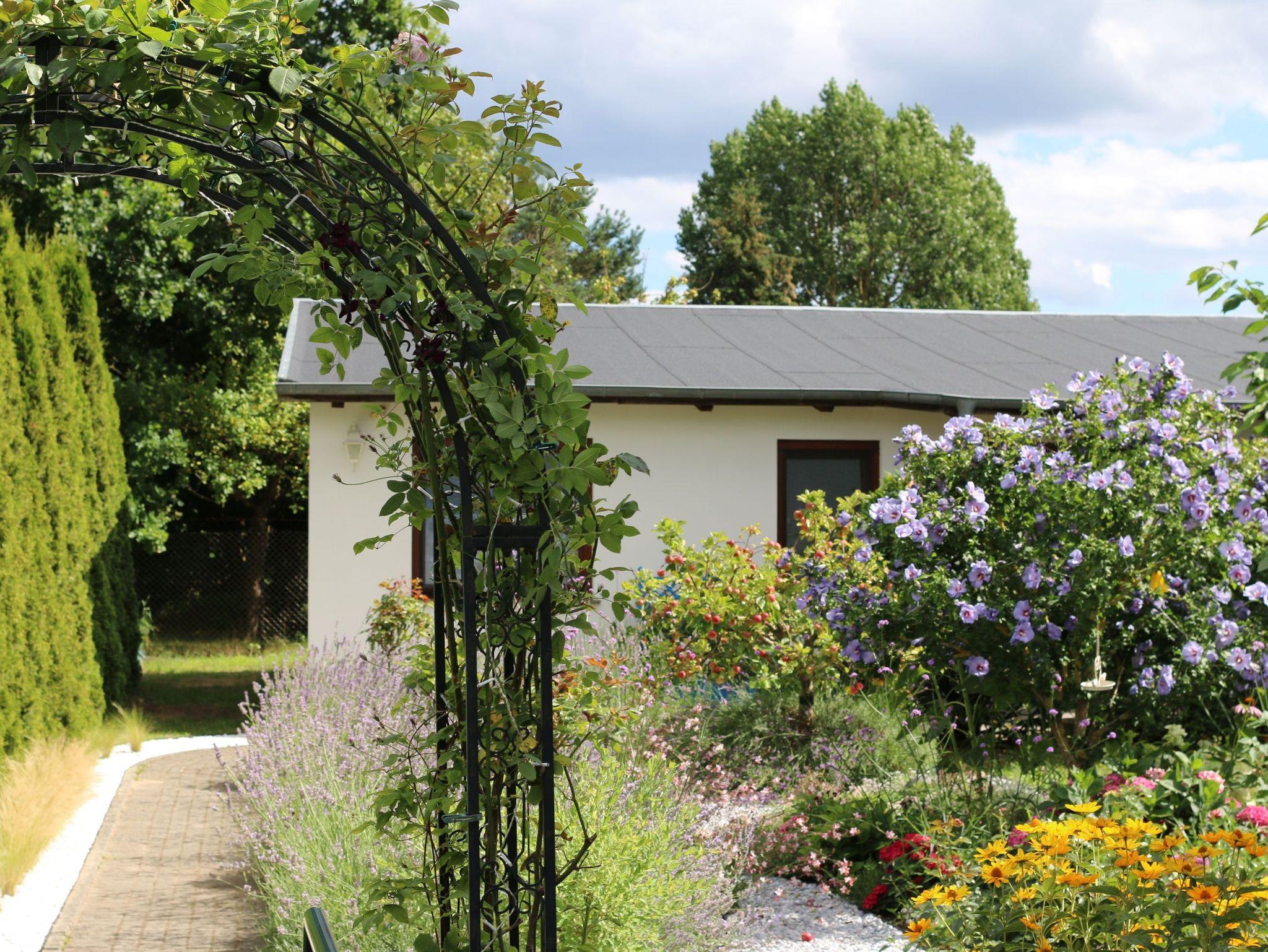 Dieser liebevoll eingerichtete Bungalow mit separatem Eingang bietet mit seinen 60 qm einen idealen Rückzugsort für bis zu 4 Erwachsenen und 1 Kleinkind bis 3 Jahre. Im hellen Wohnbereich gibt es eine gemütliche Couch, Sessel, Esstisch mit 5 Stühlen sowie einen Flachbild-TV. Eine komplette Küchenzeile mit Cerankochfeld, Backofen, Geschirrspüler, Mikrowelle, Toaster, Kaffeemaschine und Wasserkocher bietet beste Voraussetzungen für das gemütliche Frühstück oder das Abendessen zu fünft. Das größere Schlafzimmer beinhaltet ein Doppelbett (1,80 m x 2,00 m) mit einer Decke (2,00 m x 2,20 m), das kleinere Schlafzimmer hat zwei Einzelbetten. Das Badezimmer mit Fenster ist funktional gestaltet: mit Dusche, WC und Ablageflächen. Eine Terrasse mit Blick in den Garten lädt schon morgens dazu ein Ihren Kaffee zu genießen oder den Abend bei einem Glas Wein ausklingen zu lassen.