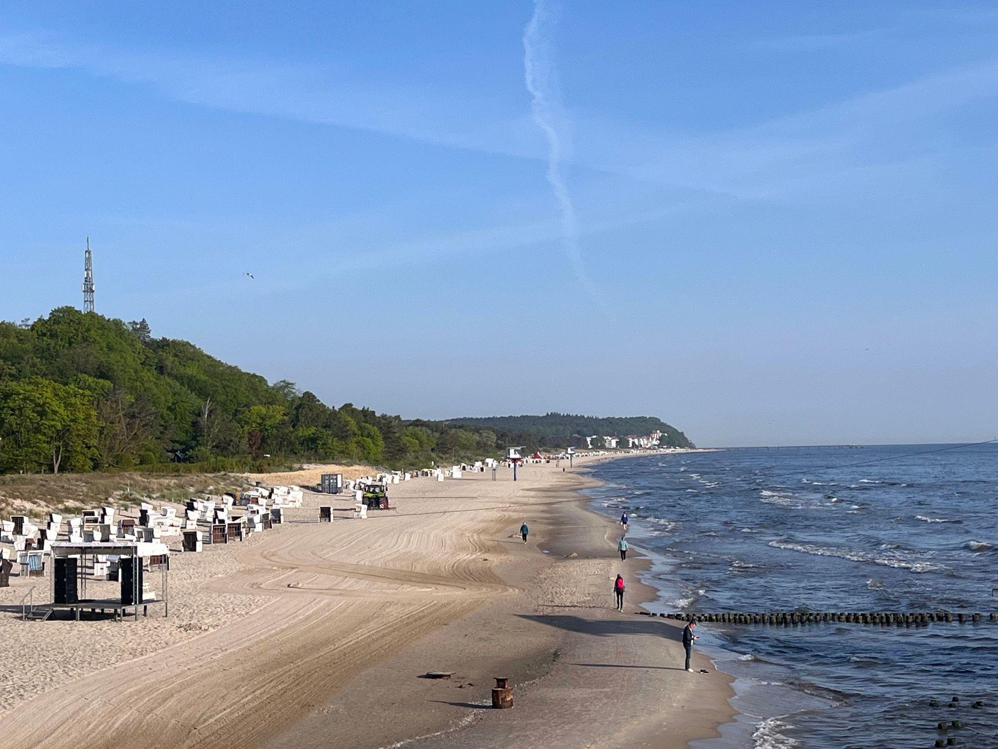 Auf dem Grundstück führt eine Treppe hinunter in den Kurpark und an den breiten, weißen Sandstrand. Hier bieten wir Ihnen von Mai bis September die Möglichkeit - noch vor Reiseantritt - einen unserer 4 Strandkörbe zu reservieren (70 €/Woche). Unser Strandabschnitt liegt etwas ruhiger, abseits vom quirligen Strandleben rund um die Seebrücke. Restaurants sowie Möglichkeiten zum Bummeln und Shoppen gibt es in der Kulmstraße und im wenige Schritte entfernten Ortszentrum.