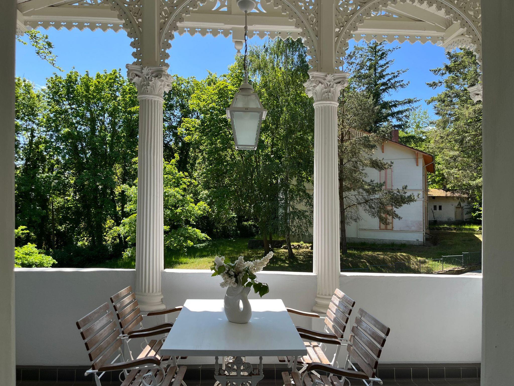 Die bezaubernde 5-Sterne-Villa (erbaut im Jahre 1845) ist eine der ältesten erhaltenen Villen Heringsdorfs. Erhaben liegt sie - mit phantastischem Blick - auf der Anhöhe des Kulms, auf einem großzügigen, gepflegten Grundstück mit altem Baumbestand. Meerseitig wurde das Haus erweitert und öffnet sich zur Ostsee ? mit Meerblick aus allen Wohnungen. Viele Stammgäste kehren immer wieder an diesen erholsamen Ort zurück und schätzen das inhabergeführte Haus.